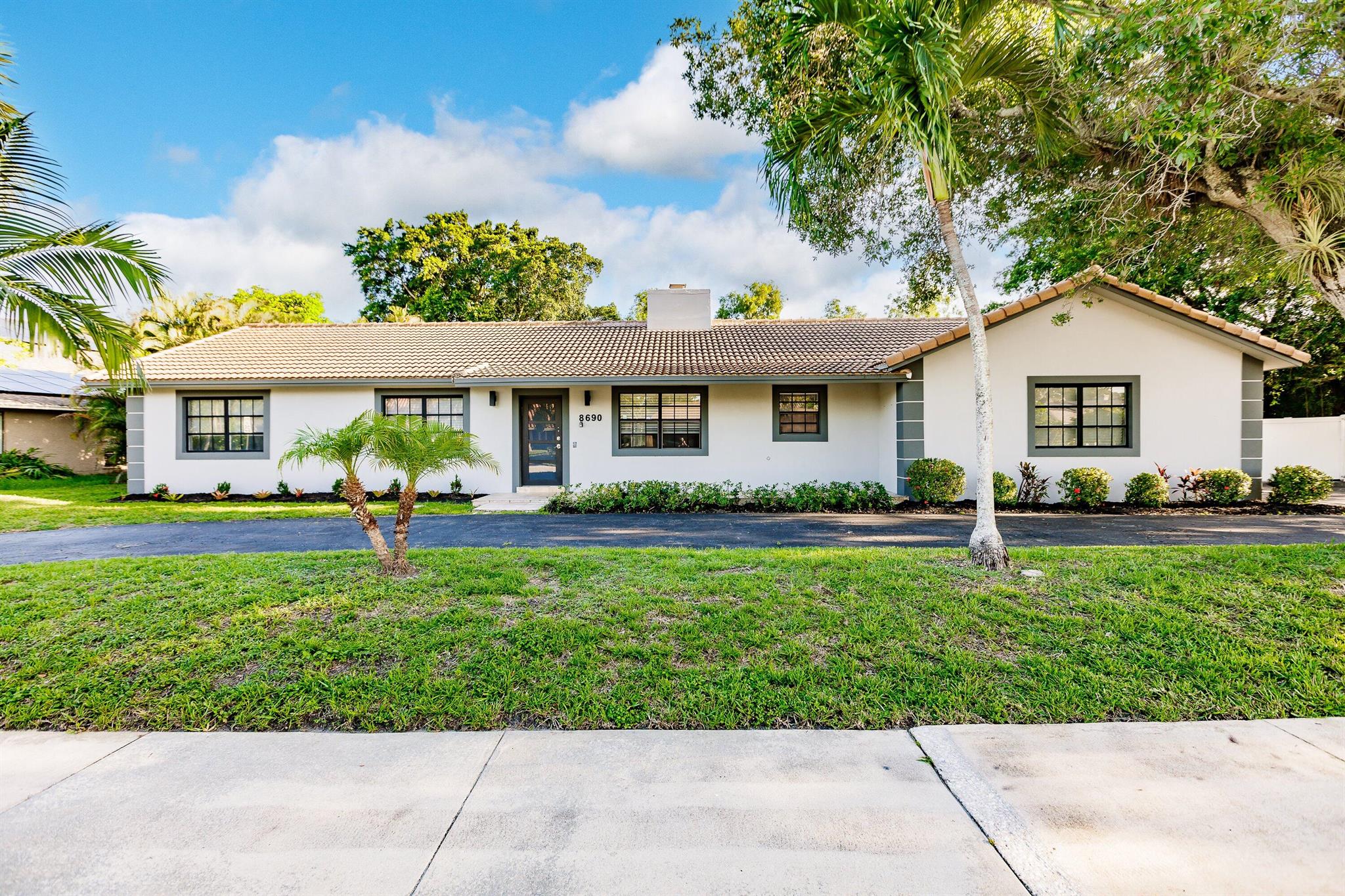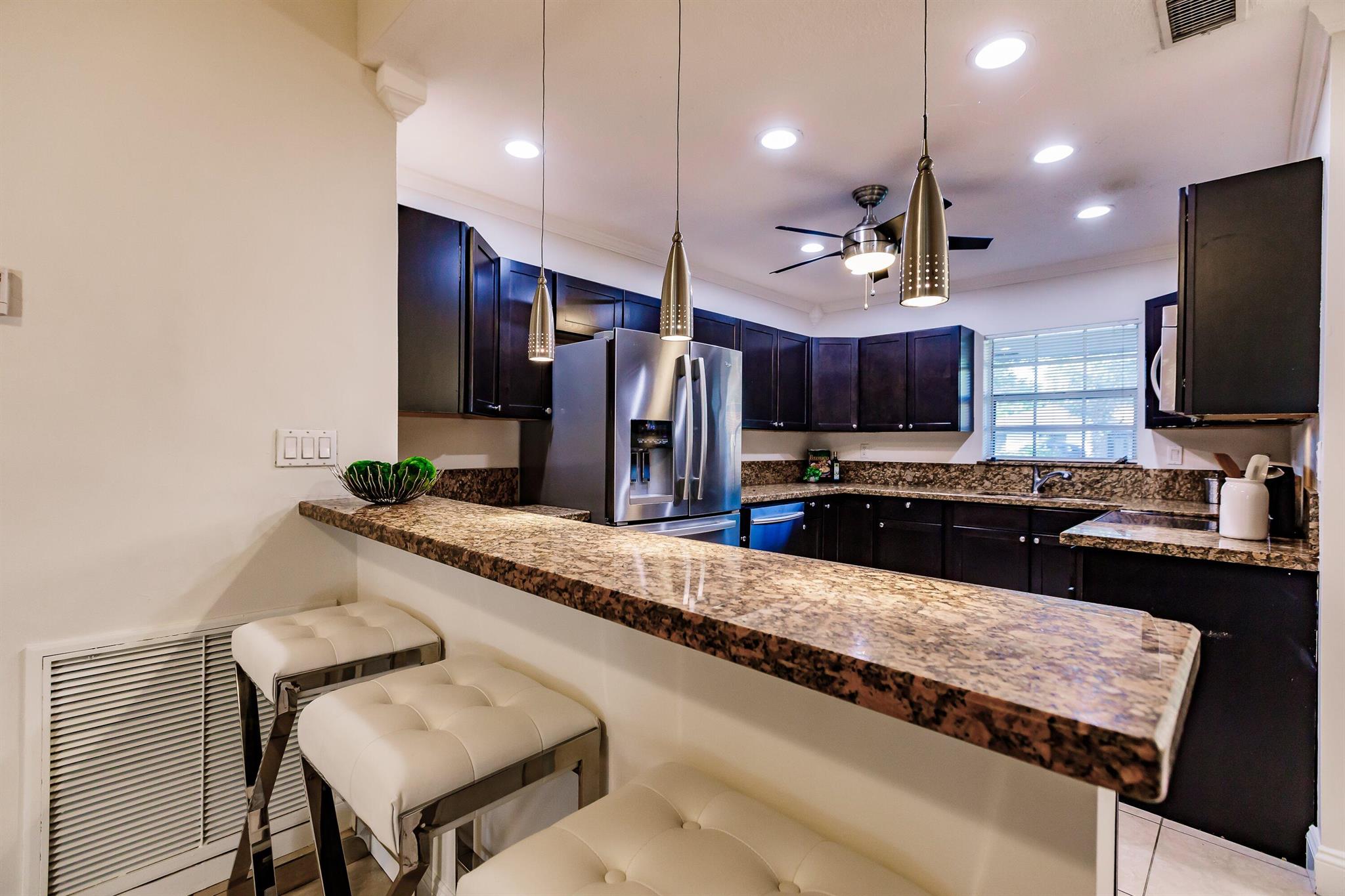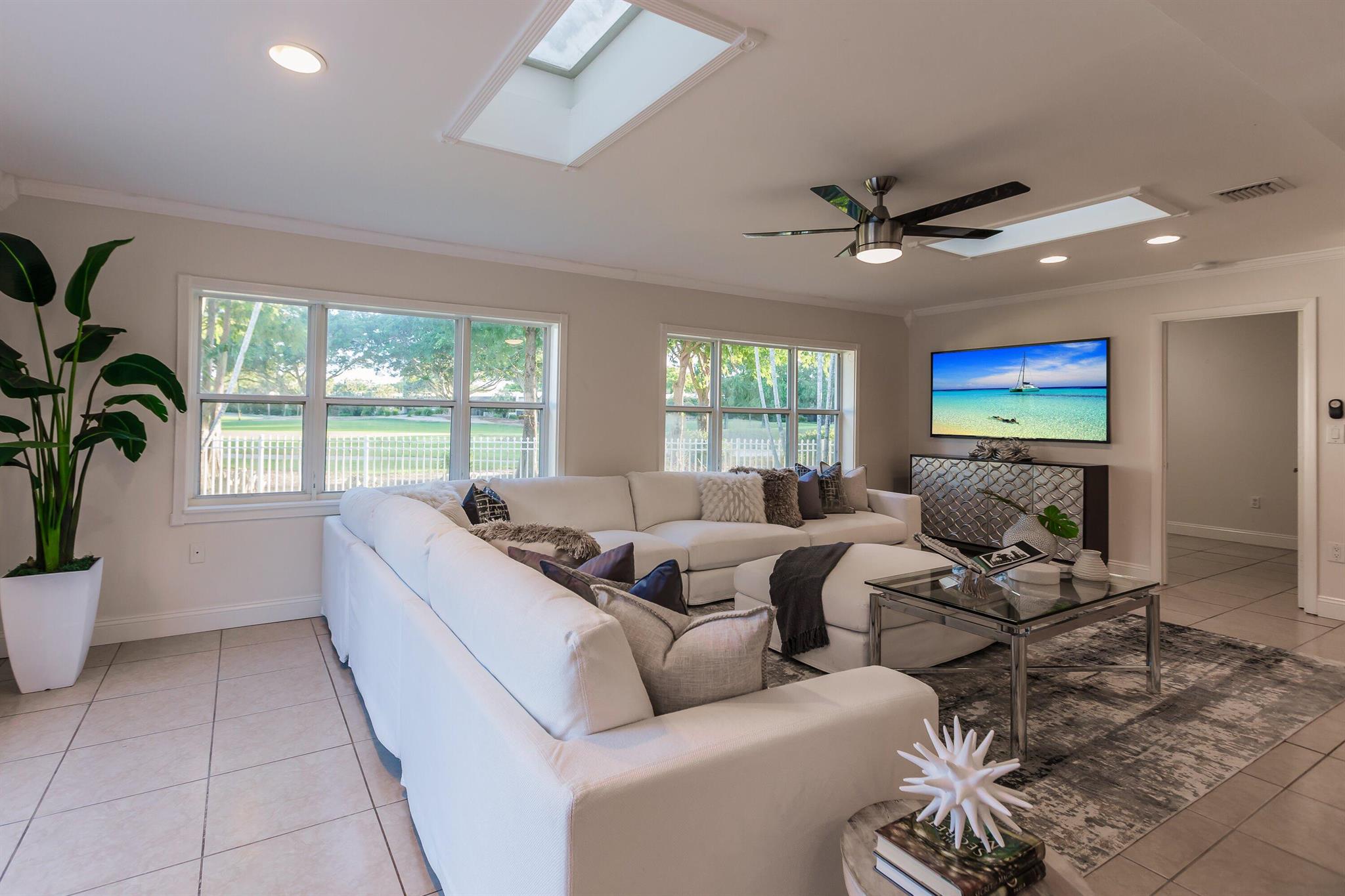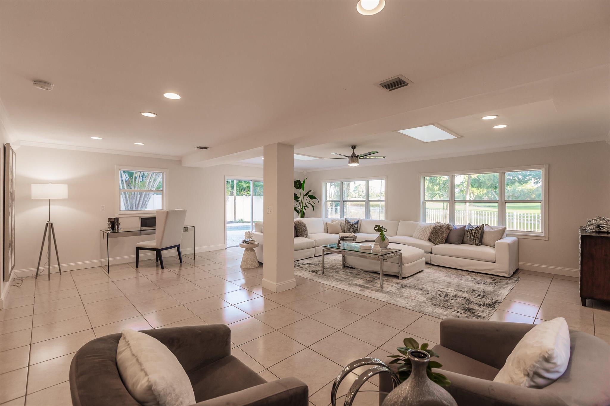 This spacious private 3- bed, 2.5 bath home, overlooking the Jacaranda Golf Club, has been newly painted inside and out. It features a cozy fireplace, vaulted ceilings, and a massive yard with a private pool. The kitchen boasts newer appliances, granite countertops, and a tile backsplash. The versatile fourth bedroom can serve as an office or den. Additionally, the home includes a large multi-purpose room perfect for laundry, storage, and more. With ample space, there's plenty of room for all your toys. Enjoy luxury and comfort in this beautifully updated home!