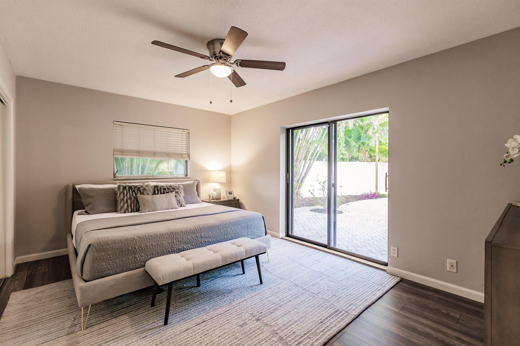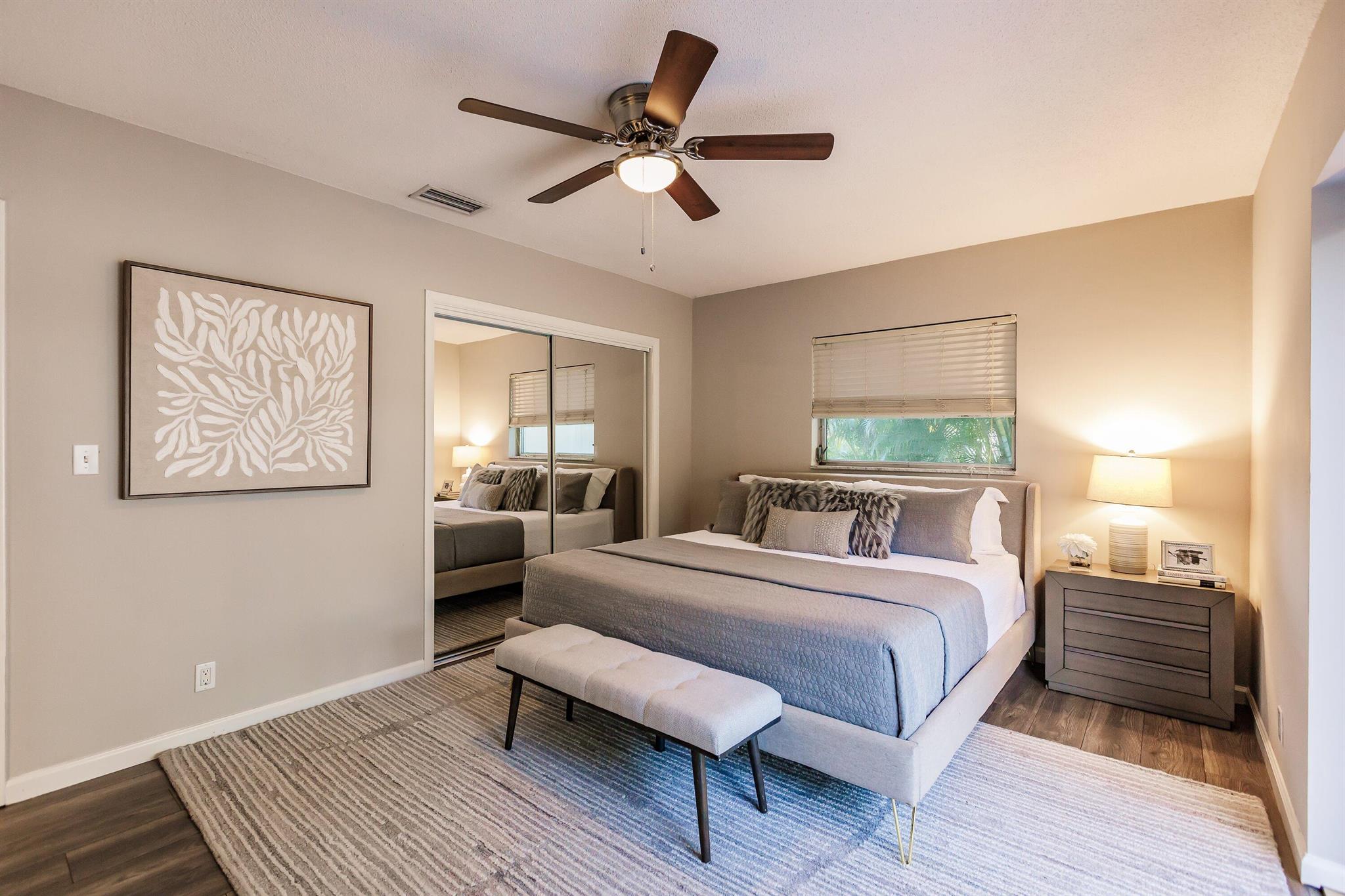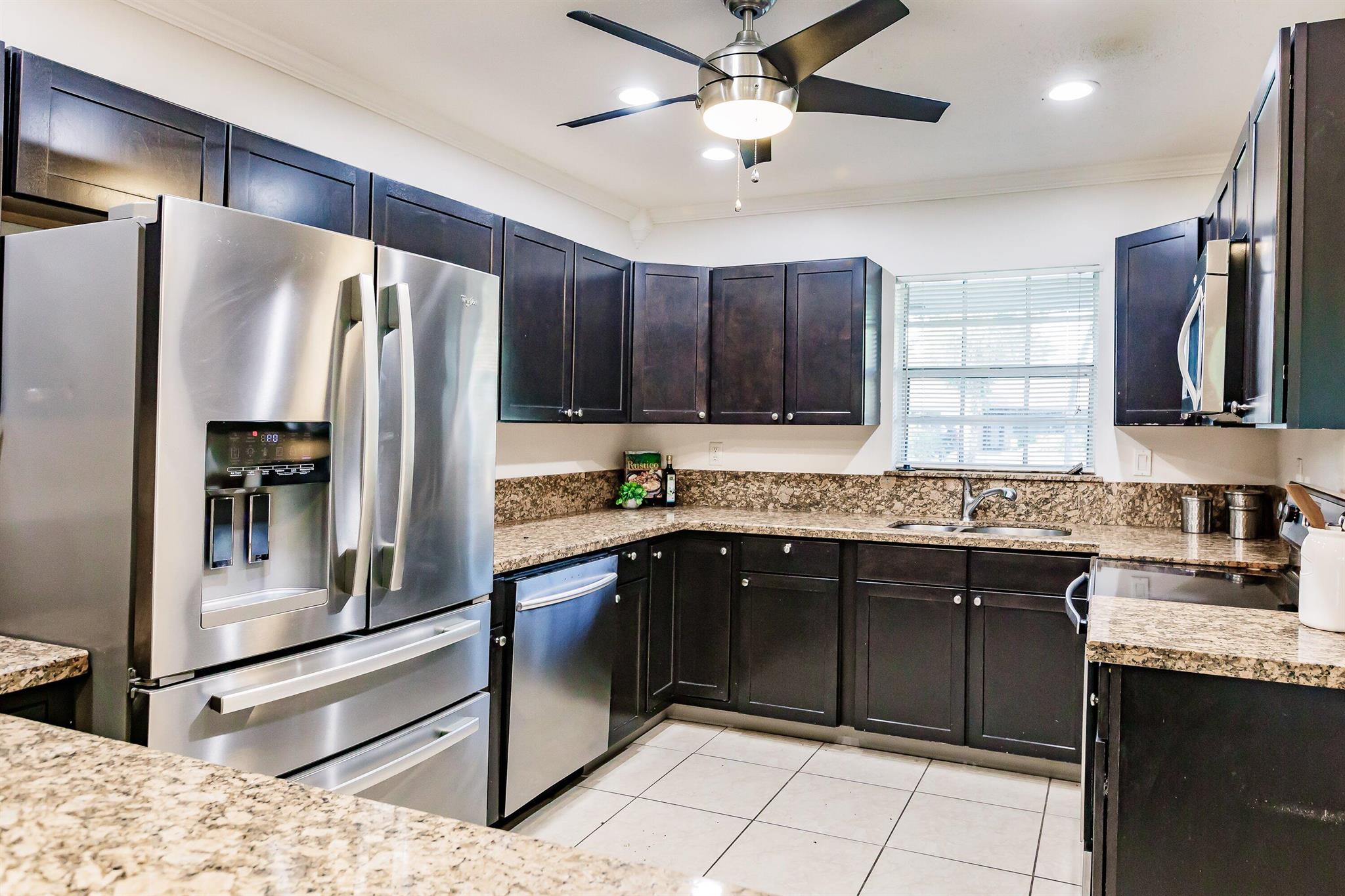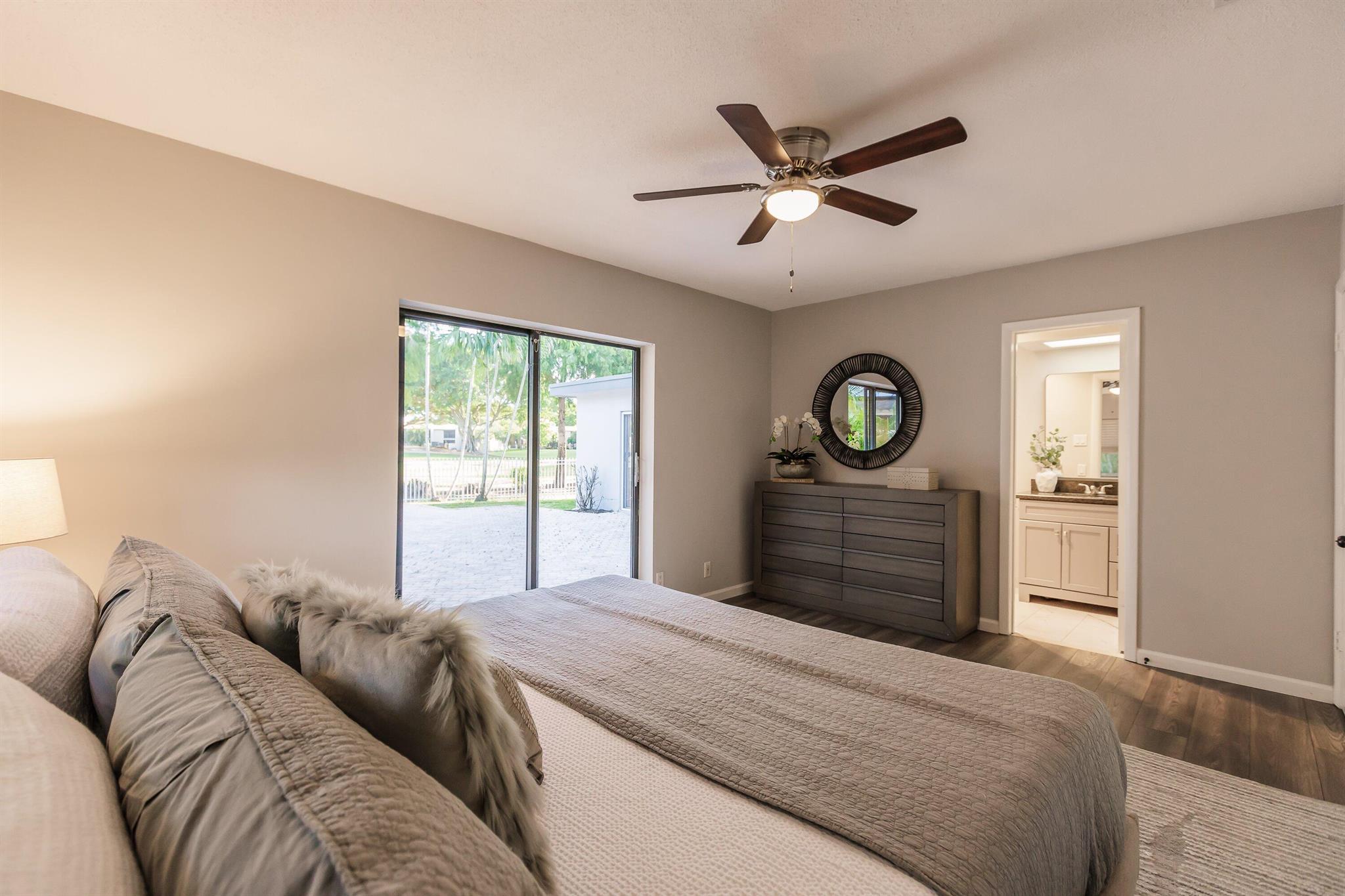 This spacious private 3- bed, 2.5 bath home, overlooking the Jacaranda Golf Club, has been newly painted inside and out. It features a cozy fireplace, vaulted ceilings, and a massive yard with a private pool. The kitchen boasts newer appliances, granite countertops, and a tile backsplash. The versatile fourth bedroom can serve as an office or den. Additionally, the home includes a large multi-purpose room perfect for laundry, storage, and more. With ample space, there's plenty of room for all your toys. Enjoy luxury and comfort in this beautifully updated home!