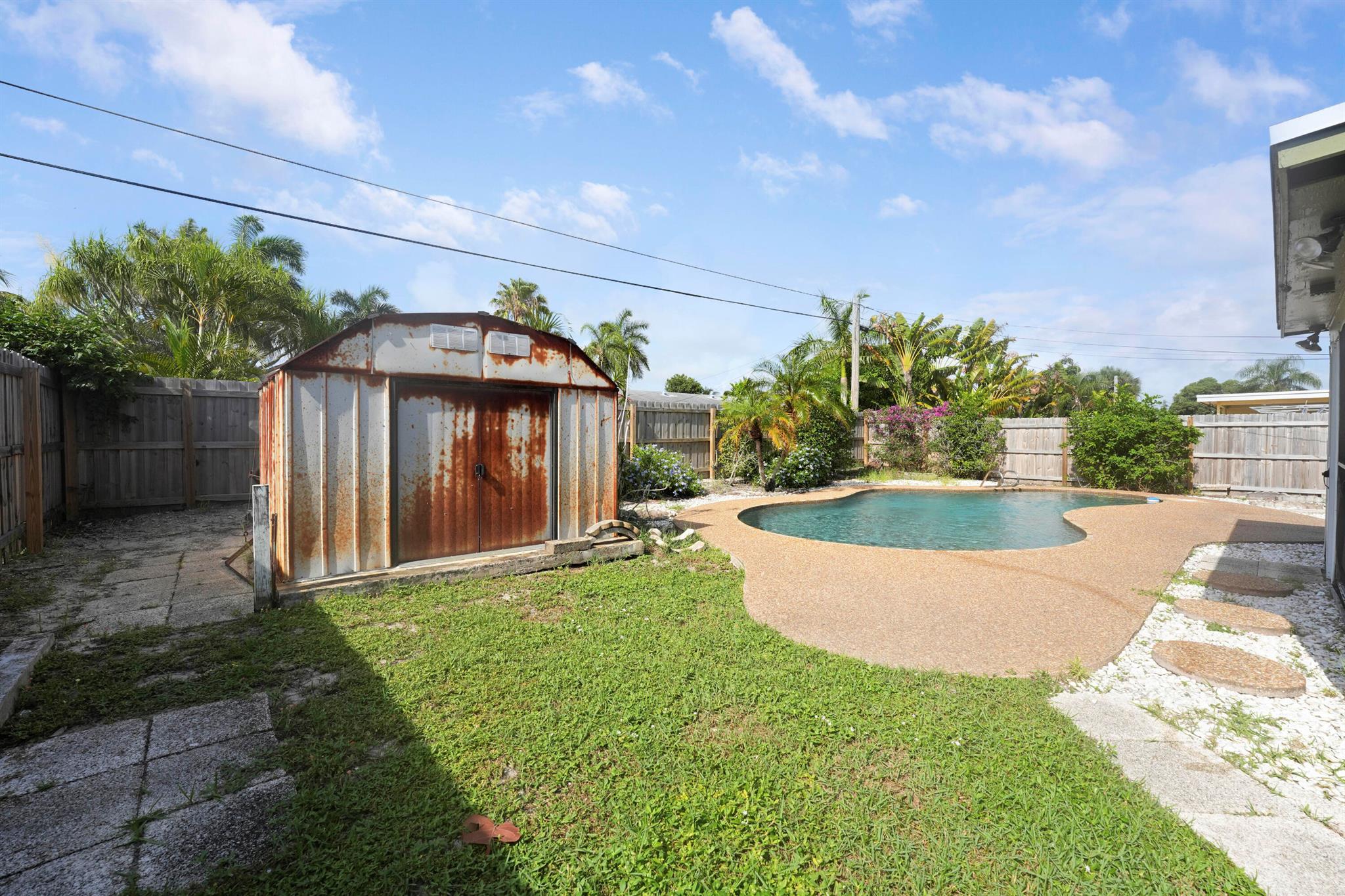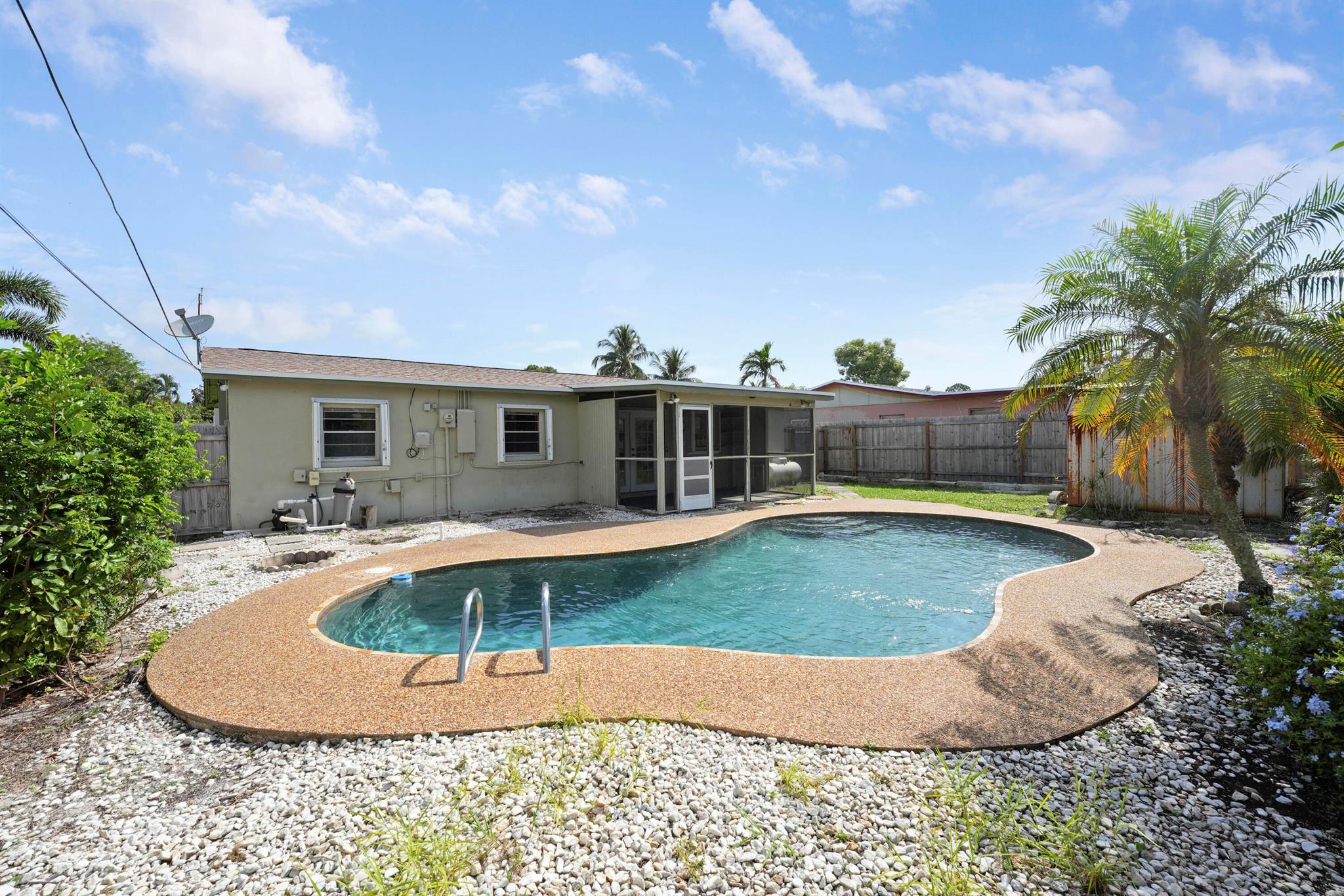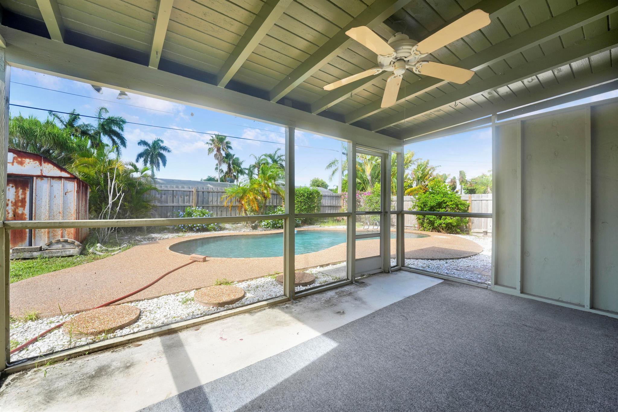 Welcome home to 3630 Island Road in the heart of Palm Beach Gardens. This 3-bedroom, 1-bath pool home, nestled in Cabana Colony, is ready for your personal touch and has so much potential. It features a brand new roof (2024), full hurricane protection, updated electrical panel, newer AC/duct work (2021), and a gorgeous pool in a fully fenced-in yard. This home features an open floor plan, large pantry and indoor laundry. Ideally located close to the Palm Beach Gardens mall, Downtown at the Gardens, and minutes from the beach, this home is situated in a non-HOA community with a community park. Bring your boat and RV. Perfect for a first-time homebuyer or investor.