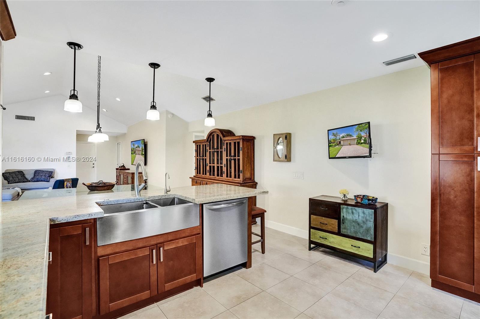 Welcome to this charming 3 bed 2 bath home in the Country Isles community of Weston. Located on a quiet cul-de-sac, this home offers both privacy and tranquility. The remodeled kitchen features wood cabinetry, granite countertops, and stainless steel appliances. The open layout seamlessly connects the living and dining areas, perfect for family gatherings and entertaining. Enjoy peace of mind with full accordion protection and unwind on the large screened patio, which is ideal for relaxing and enjoying the Florida weather. The 2-car garage features a finished floor, built-in storage cabinets on both sides and driveway pavers. This home combines a prime location close to Weston Town Center, schools, and parks. Make this wonderful property your own! Buyer’s Agent Welcomed!