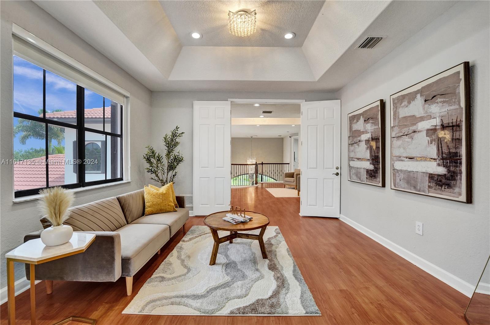 Welcome Home! where luxury meets tranquility in this exquisite property now available for sale. Step through the stunning grand entrance adorned with marble flooring that extends throughout the first floor, setting the tone for elegance and sophistication. The gourmet chef's kitchen awaits, boasting top-of-the-line stainless steel appliances perfect for culinary enthusiasts and entertaining alike. Downstairs, a guest bedroom with a full cabana bath offers convenience for visitors enjoying the custom-built pool and captivating lake views just beyond. Upstairs, discover four spacious bedrooms and three full bathrooms, each meticulously designed for comfort and privacy. The master suite impresses with its own private living room upon entry, overlooking the serene community lake.