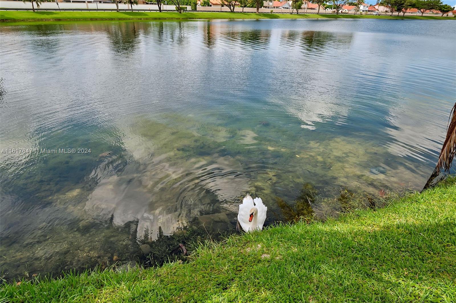 This centrally located 3-bedroom, 2-bathroom residence boasts over 1,350 square feet of thoughtfully designed living space. Situated on a picturesque pond, you'll enjoy serene and calming views right from your backyard. The home features ceramic tile and engineered wood flooring throughout, combining durability with a touch of sophistication. Recently painted with a brand-new air conditioning system, this home is move-in ready and designed for your comfort. Take advantage of two community parks perfect for children to play, explore, and make new friends. Watch your children feed ducks and swans from the backyard, creating cherished memories in a beautiful natural setting. This home offers the perfect blend of comfort, style, and convenience. Don't miss the chance to make it yours!