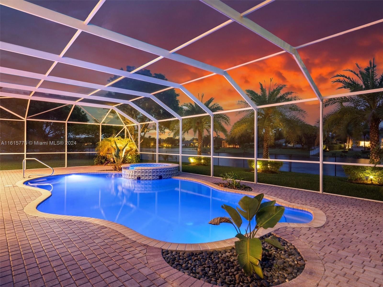 Stunning 1-story waterfront home in desirable gated community of Imagination Farms in Davie. The single-family with 5 beds/4 baths and pool, offers the perfect blend of contemporary urban living and timeless elegance. The moment you open the front door, you'll be captivated by the open floor plan, high ceilings and abundant natural light. Open kitchen with SS appliances, granite countertops & center island. Large family room and custom built-in bar with wine cooler, perfect space to entertain! Built-in closets. Tile flooring throughout living areas and carpet in bedrooms. Oversized lake front lot, screened patio with covered area and heated pool. 3-Car Garage. Impact windows & doors. ROOF & GUTTERS 2023, AC 2023, 24KW Generator. Top rated school district. Close to I75, shopping & dining.