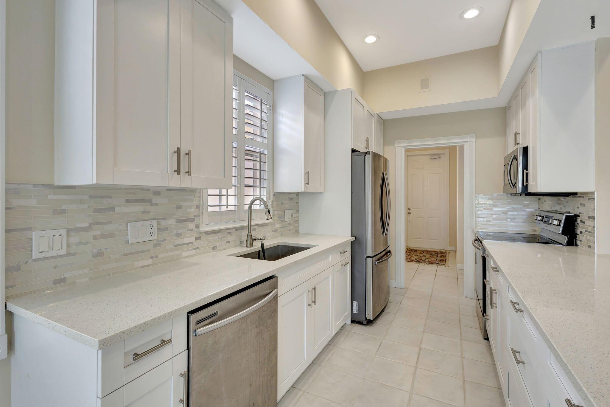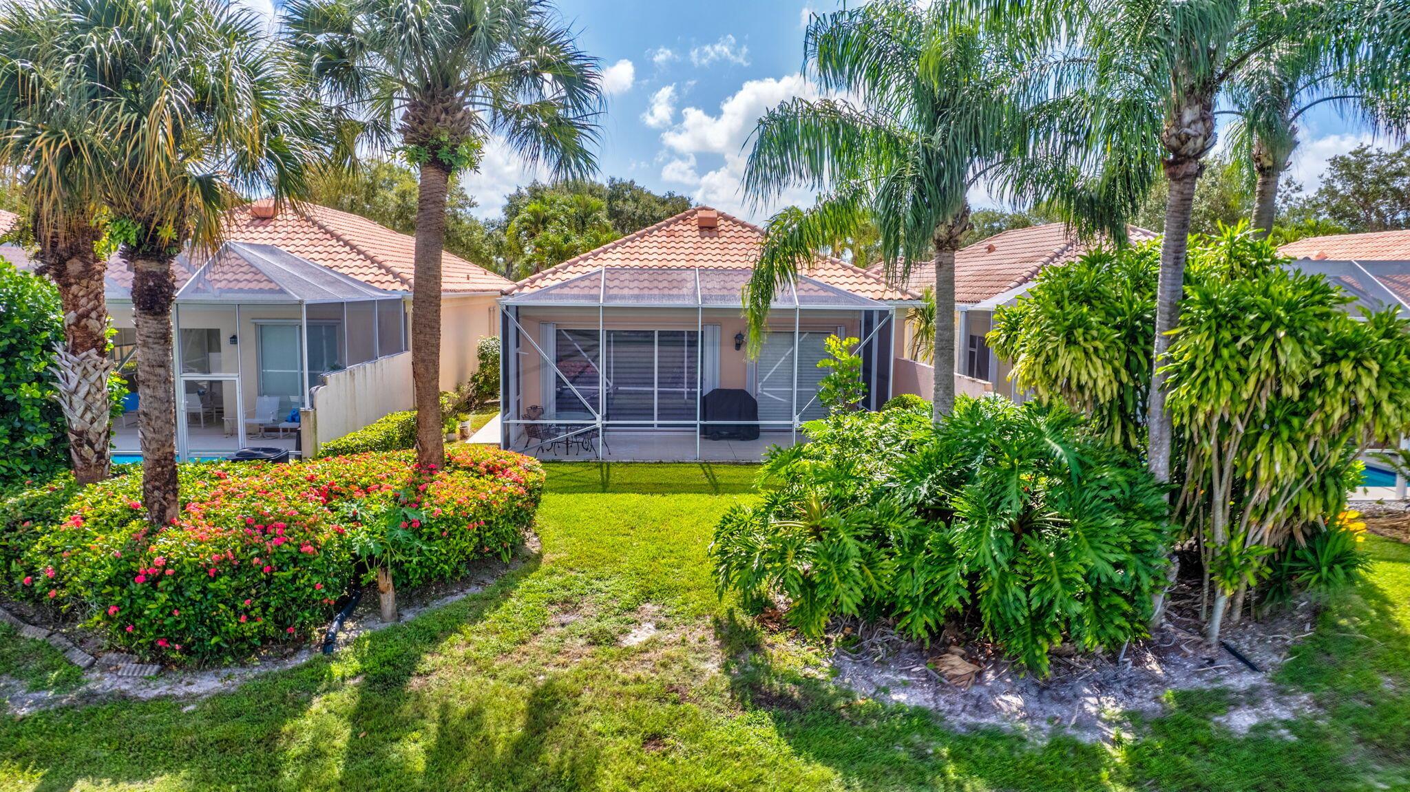 Now available is this Extended Glenwood Model, located in the desirable Riverwalk Community. The home offers an open layout with 3 bedrooms, 2 bathrooms, laundry room and 2 car garage. Renovations in 2020 offer an updated kitchen with shaker cabinets, Quartz tops and stainless appliances. The bathrooms received new vanities and quartz tops as well. The water heater, washer and dryer were replaced in 2020 and the A/C system in 2022. Impact garage door installed 2024. Tile and wood floors, volume ceilings and plantation shutters featured throughout. The home is equipped with accordion shutters for easy storm prep. Riverwalk offers a manned security gate, clubhouse, cafe, 3 pools, fitness center, tennis, pickleball and 12 miles of sidewalks. Family friendly and conveniently located!