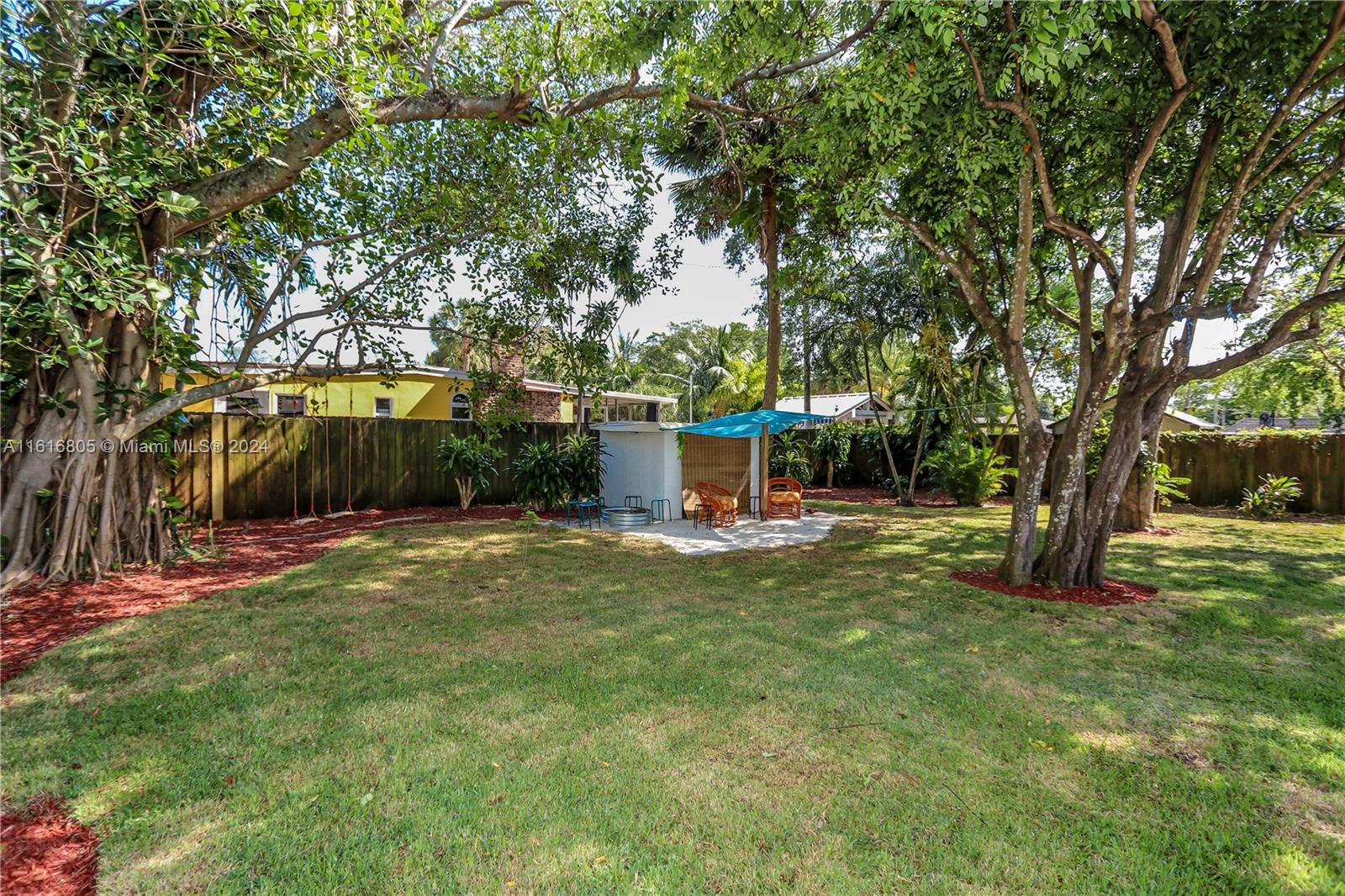 3/2 home in boating community of Chula Vista w/two public boat launches nearby. Located in flood zone X! Furniture included f/possible AirB&B. Open concept living/dining room opens to large patio and huge tropical yard, privacy fenced w/dbl gate f/boat. Perfect f/entertaining w/sandy beach & firepit, 2 swings & hammock. 8'+ ceilings, large windows, tile floors, freshly painted. Updated kitchen w/open shelving, new SS appliances (2024) + separate pantry/laundry room. Great split floor plan, all queen/king BRs. Primary ensuite has separate entrance. 2 updated baths both w/shower/tub combo & vanity. Newer roof w/hurricane straps (2019), Central AC/heat (2019), H20 heater (2016).