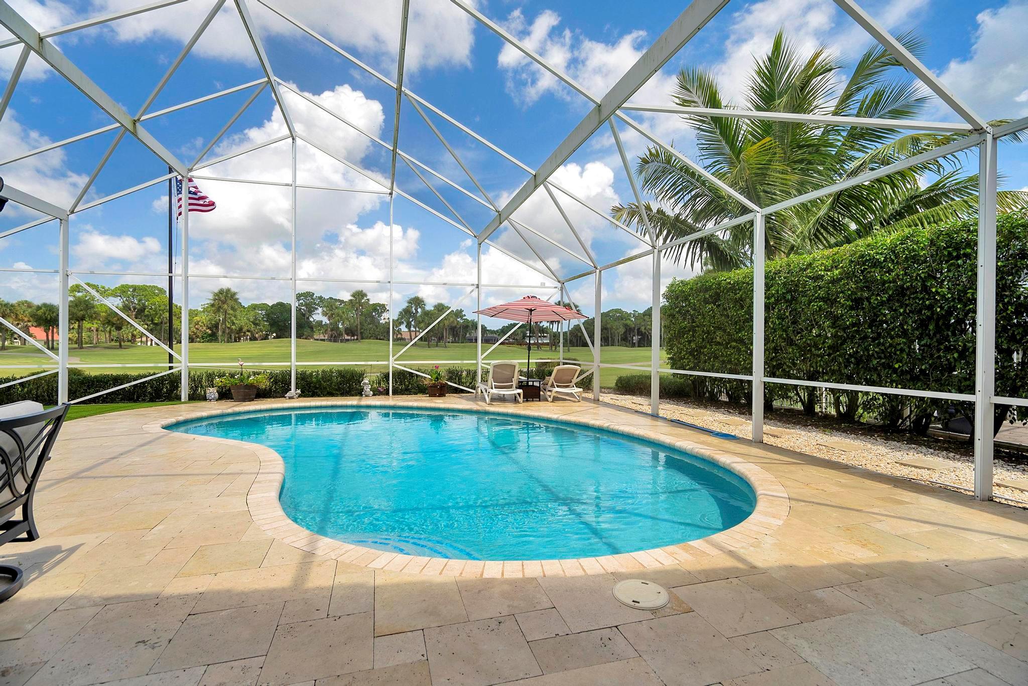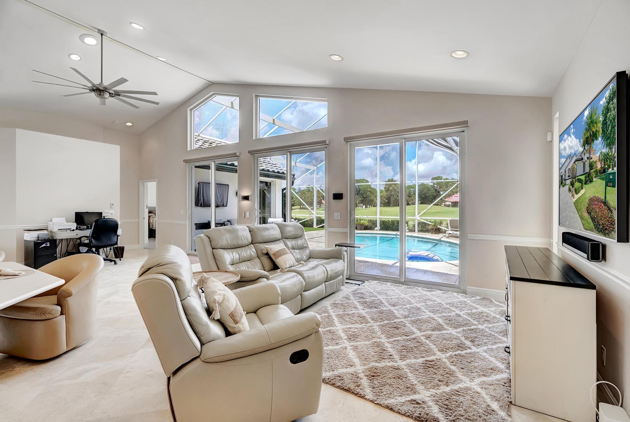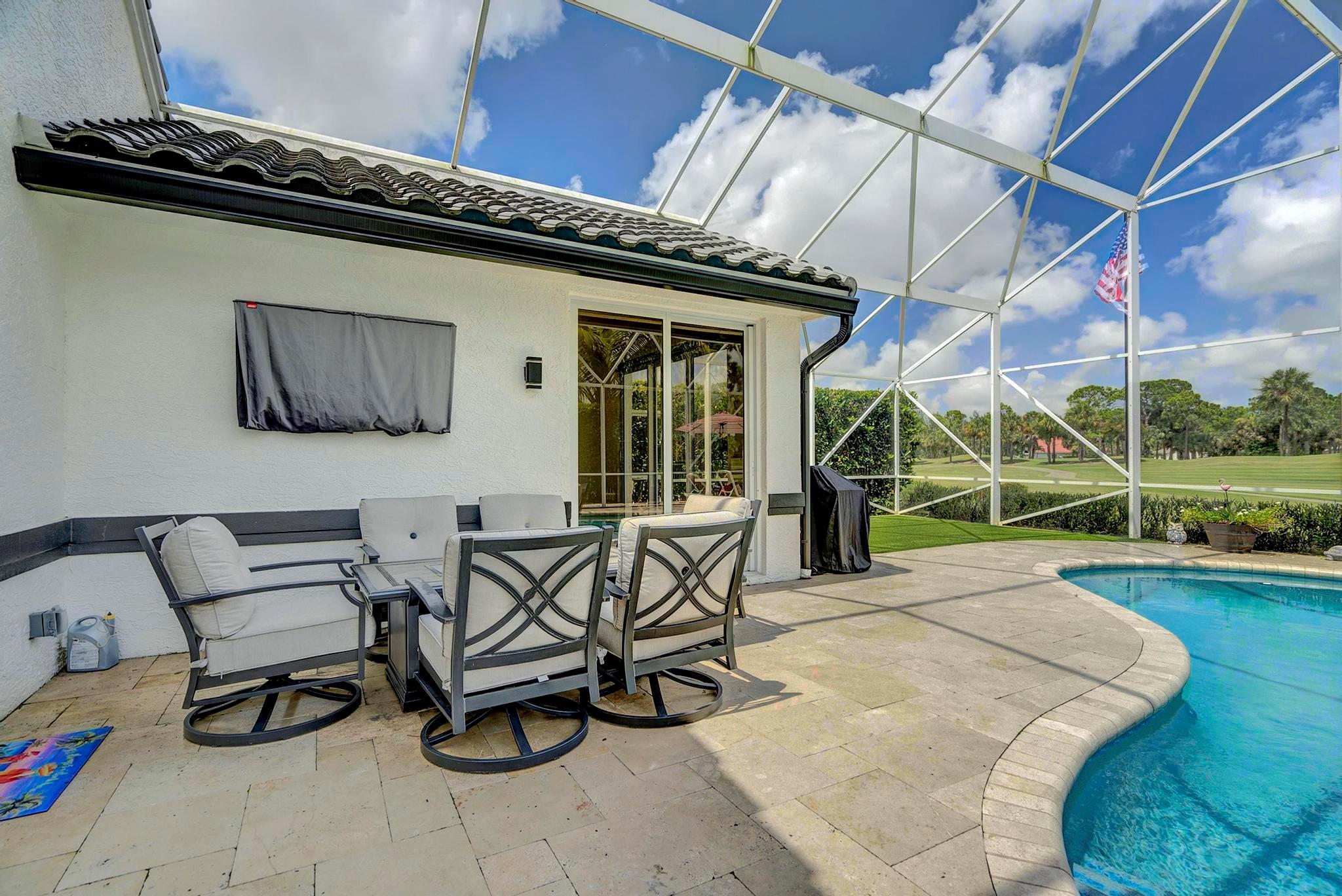 Welcome to this exquisite 3-bedroom, 2-bathroom home in the highly sought-after Preserve at Ironhorse. This stunning residence boasts a new roof, new AC, new impact windows, and fresh exterior paint. Enjoy the convenience of electric roll-down blinds inside and a modern saltwater pool system. The master bedroom, living room, and kitchen offer breathtaking views of the golf course, creating a serene and picturesque setting. The fully air-conditioned 2-car garage adds extra comfort and convenience. Nestled in a non-mandatory golf community with a 24-hour manned gate, this home provides the perfect blend of luxury and security.