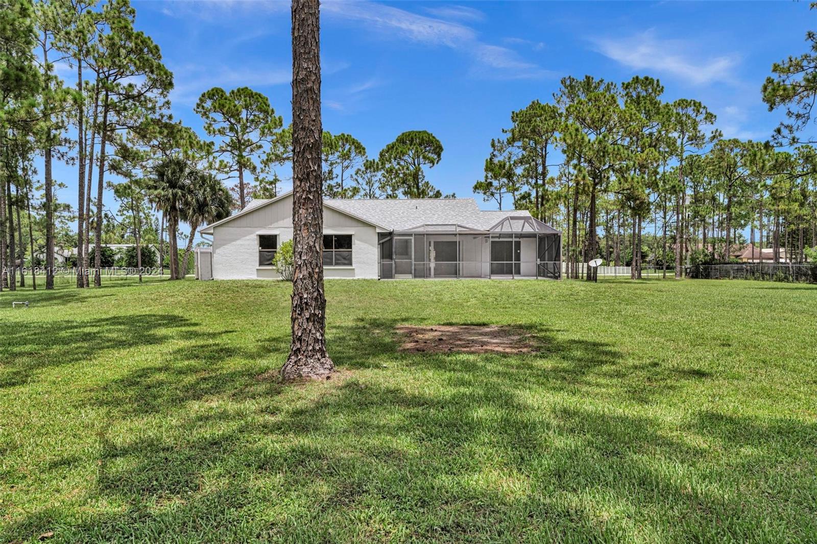 Don’t miss this beautiful freshly painted 3 bed, 2 bath with 2 car garage on a LARGE 1.15 acre lot located in The Acreage. Incredibly well-maintained and spacious home featuring high vaulted ceilings. Screened in patio and plenty of space to create your own outdoor paradise! A/C unit is 1 year old, roof is only 2 years old and water heater is brand new! Both water softener tanks recently re-bed. Long paved driveway. So much space and privacy! No HOA or restrictions, so bring your boat, RV, or any toys you wish. Labeled hurricane shutters. Convenient location with access to shops, restaurants, parks, the beach, and more!