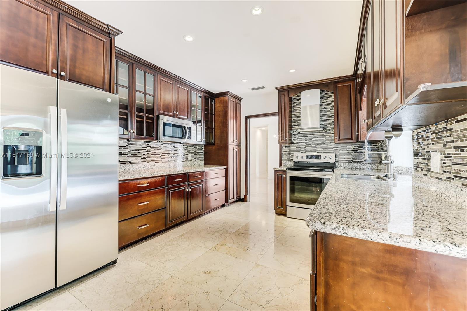 This stunning property is located in the city of Pinecrest. It features luxurious marble tile and elegant wood flooring throughout the house. The kitchen includes beautiful granite countertops, fine wood cabinets, and stainless steel appliances. The home is equipped with impact doors and hurricane shutters on all windows, ensuring safety and security. The lovely patio, with a covered terrace, is perfect for entertaining guests or family gatherings. This 4-bedroom, 2.5-bathroom residence with an office comes with a spacious two-car garage and offers over 3,428 total square feet of living space. The property sits on a significant 15,301-square-foot lot at the end of a cul-de-sac, surrounded by beautiful mature oak trees. The sellers are very motivated and will consider all reasonable offers.