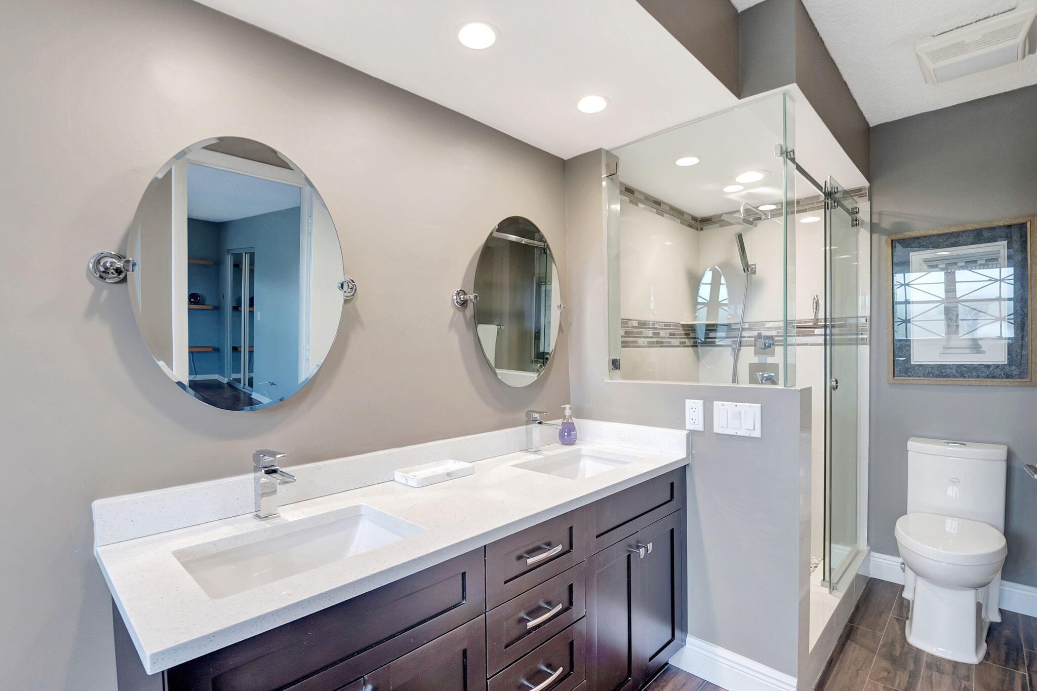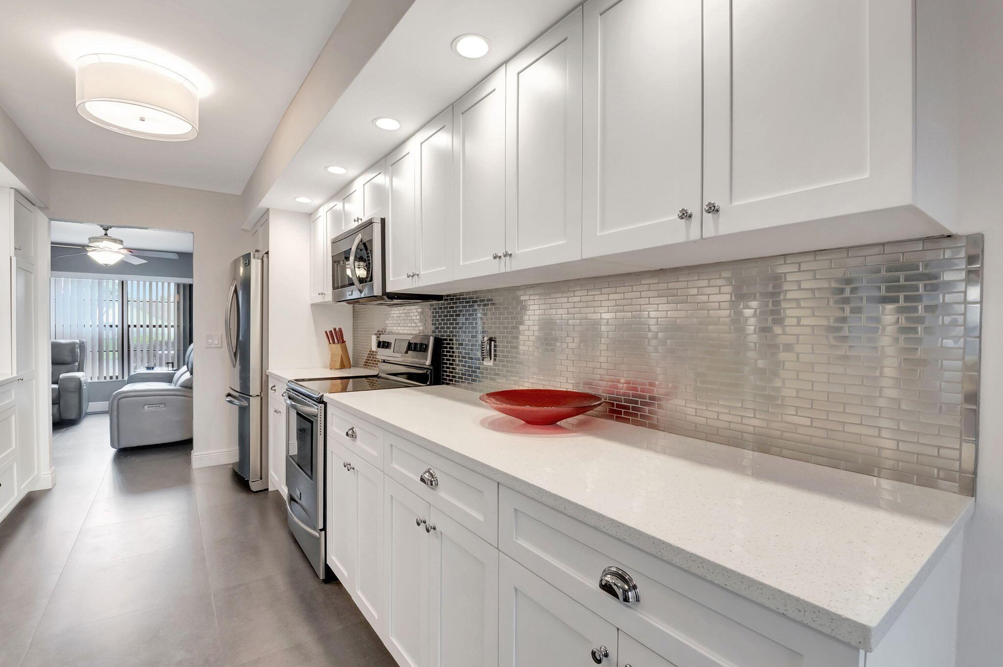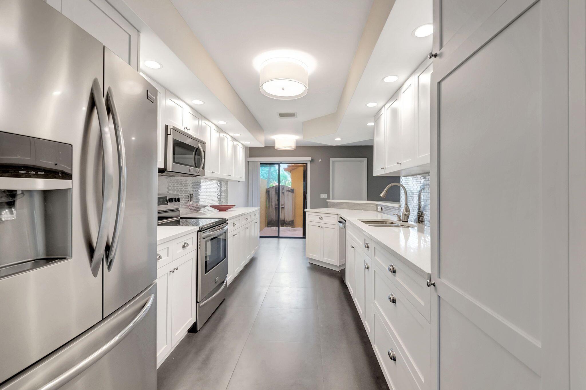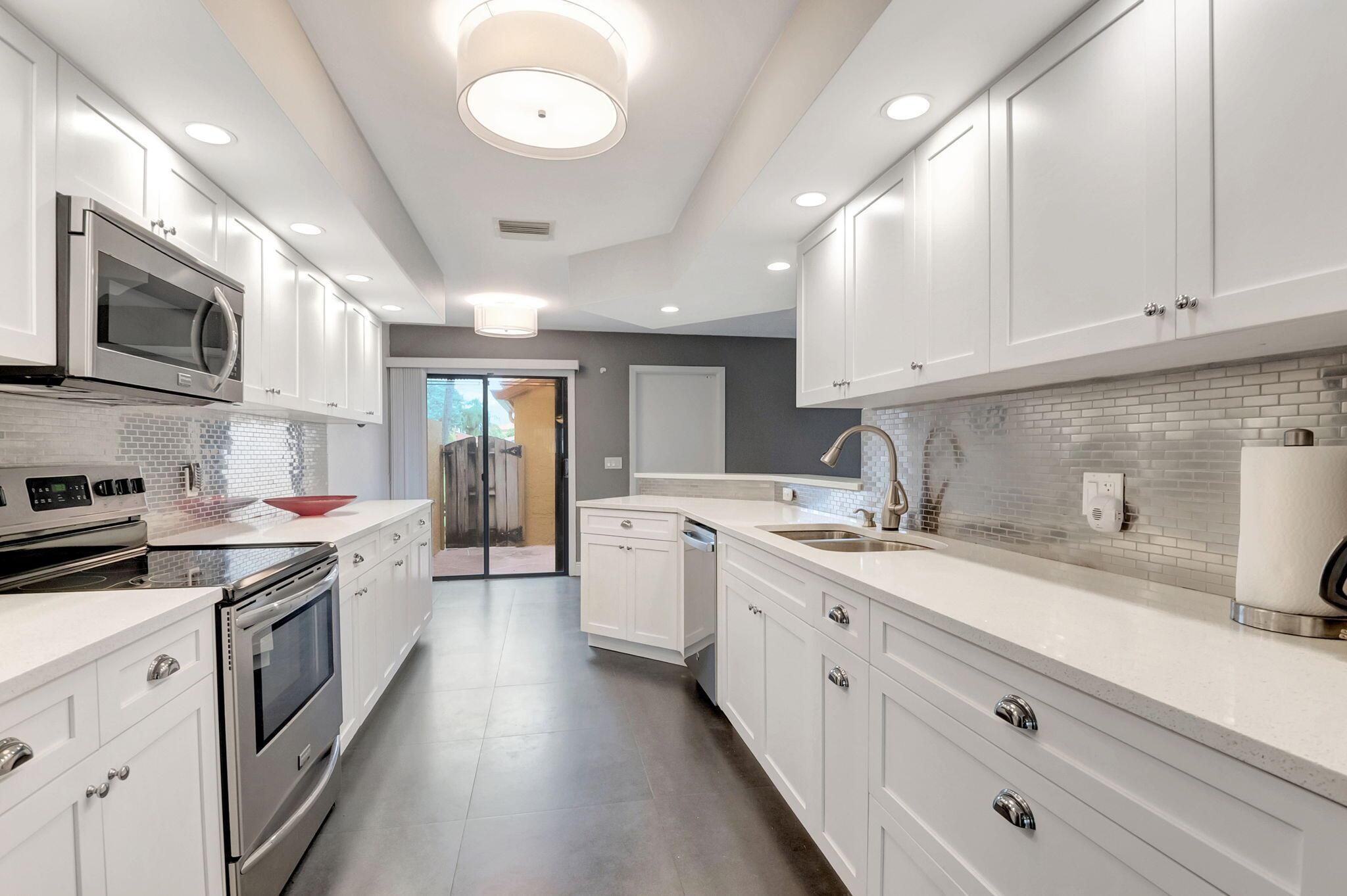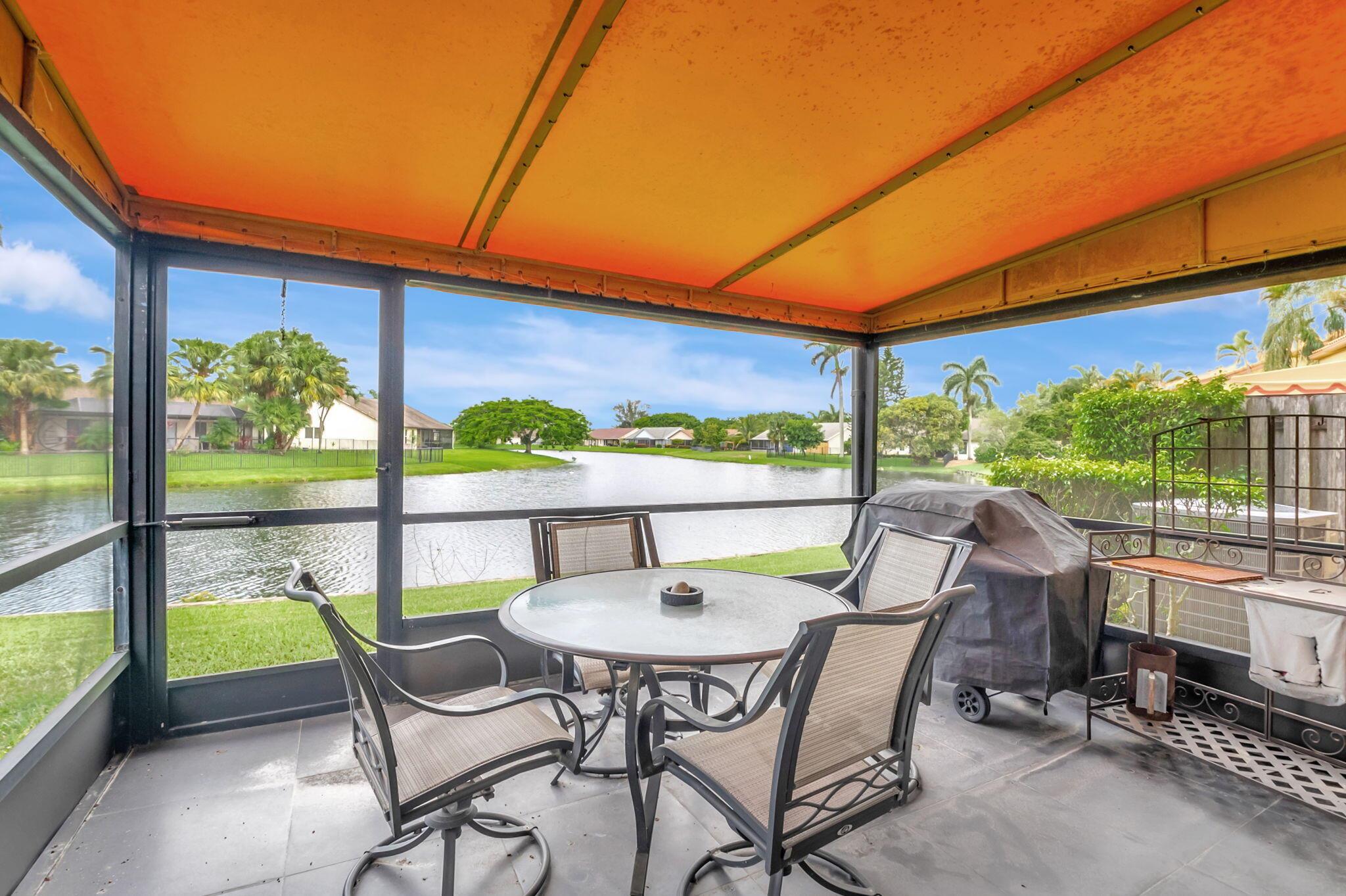 Beautifully renovated townhome with contemporary touches in Boca Fontana. Stunning lake views, 3 bedrooms, 2.5 bathrooms, an oversized dining room and screened porch are just some of the features in this incredible home. Located in the family friendly Casa Sul Lago. The updated kitchen has Quartz countertops, stainless steel appliances and white cabinetry. No carpet! Downstairs has porcelain tile flooring, luxury vinyl flooring on the stairs and second floor. An oversized Primary suite has long lake views plus a large walk-in closet. The Primary bathroom is complete with free standing soaking tub, double vanity sinks and tile accents. Accordion shutters on all windows provides extra peace of mind. Walk to the clubhouse which includes basketball and tennis courts, pool, and a playground.