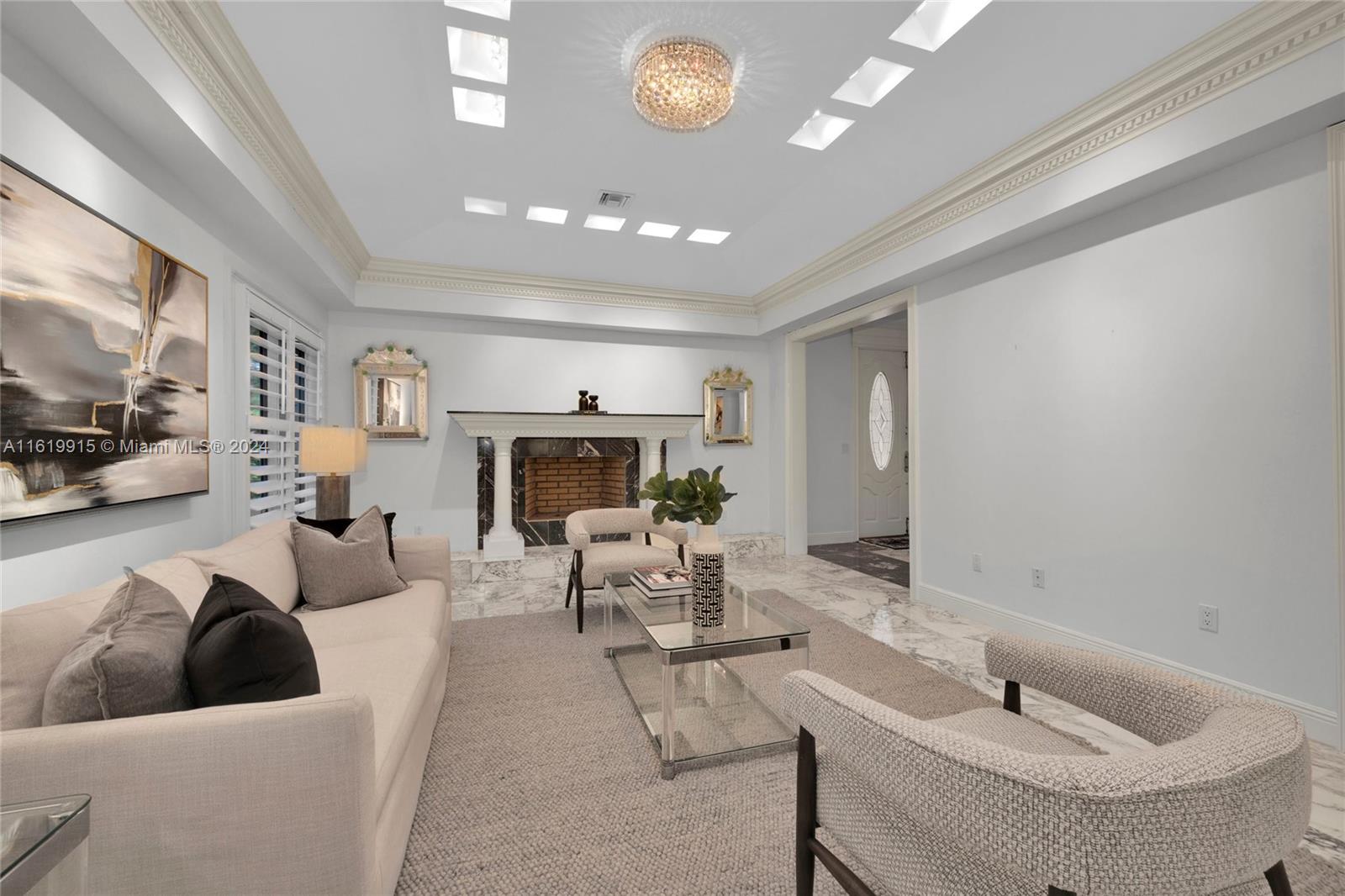 Stately & elegant, this Coral Gables grande dame spans 6,439 square feet on a stunning, lush 30,000 square foot lot. The 5 BR, 5.5 BA residence features a wide gallery that opens into the spacious formal living room w/ fireplace, formal dining room large enough to host a banquet, & family room w/ built-in bar & access to the pool & patio area. The eat-in kitchen has solid wood cabinetry, gas range, & sits adjacent to the oversized laundry rm. Each of the en-suite BRs is very spacious, and the primary suite is extraordinary w/ room for a seating area, massive walk-in closet, & large bathrm. Outside, find a lovely summer kitchen, salt water pool, & full-house generator. There are impact glass windows & doors, beautiful wood & marble flooring, 2 car gar, all in the heart of the Gables.