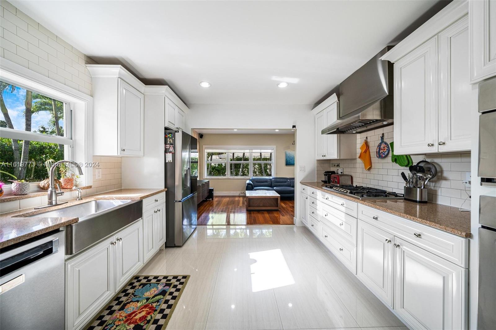 Turn key fully renovated 3/2 + two car garage Coral Gables home with amazing modern wood flooring throughout. The open concept design and flow-through space make it ideal for comfortable entertaining. Updates include impact windows and doors, beautiful picture window at the entrance. It also boasts a welcoming front porch, Spanish tile roof, tray ceilings, charming archways, remodeled bathrooms and kitchen. The kitchen features lovely subway tile, light wood cabinetry on granite countertops, and stainless steel appliances. The living and Florida rooms are spacious with large windows that allow ample natural light and garden views. Additionally, there is an huge 2-car garage and a nice sized backyard with Chicago Bricks, offering space to build a pool if desired.