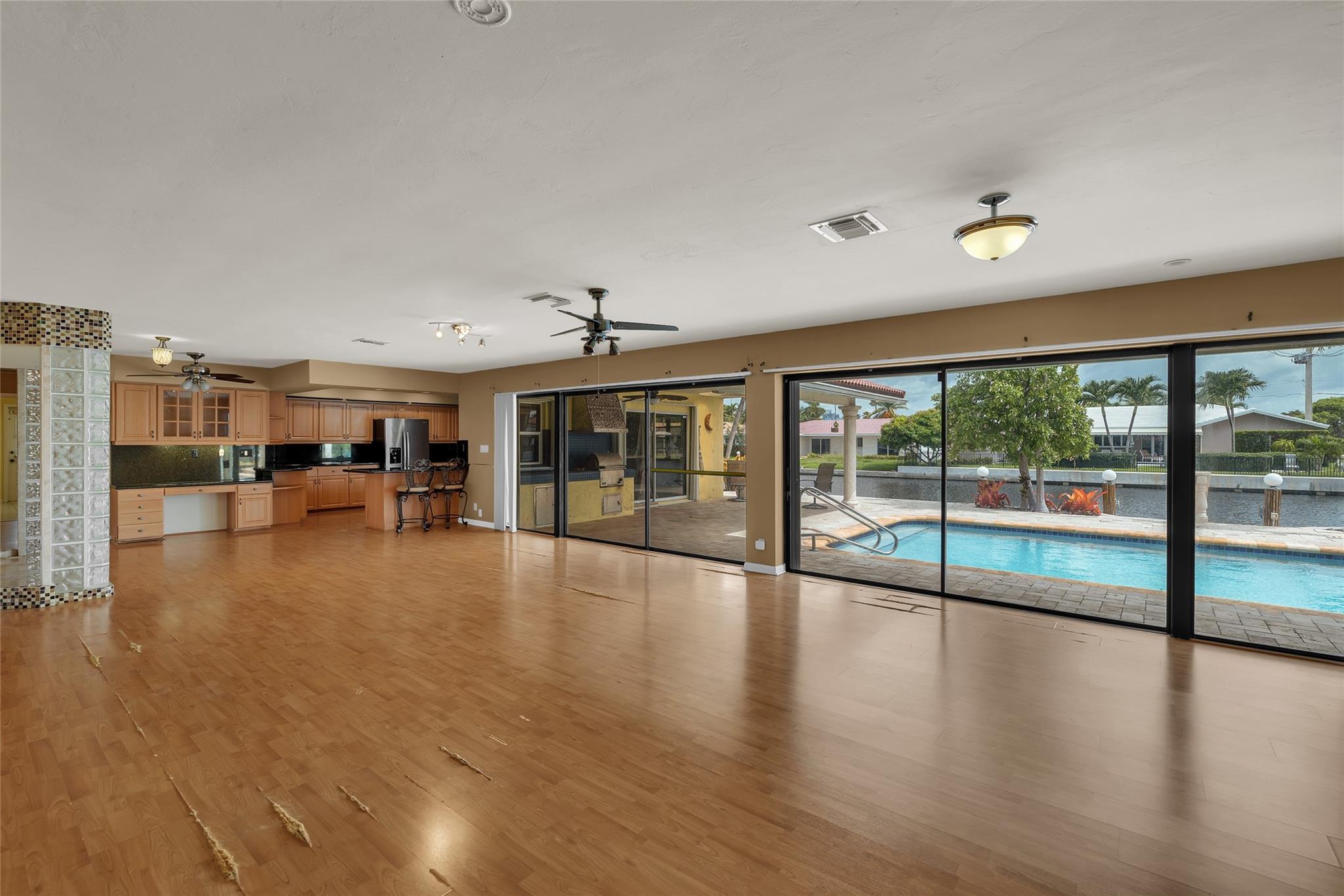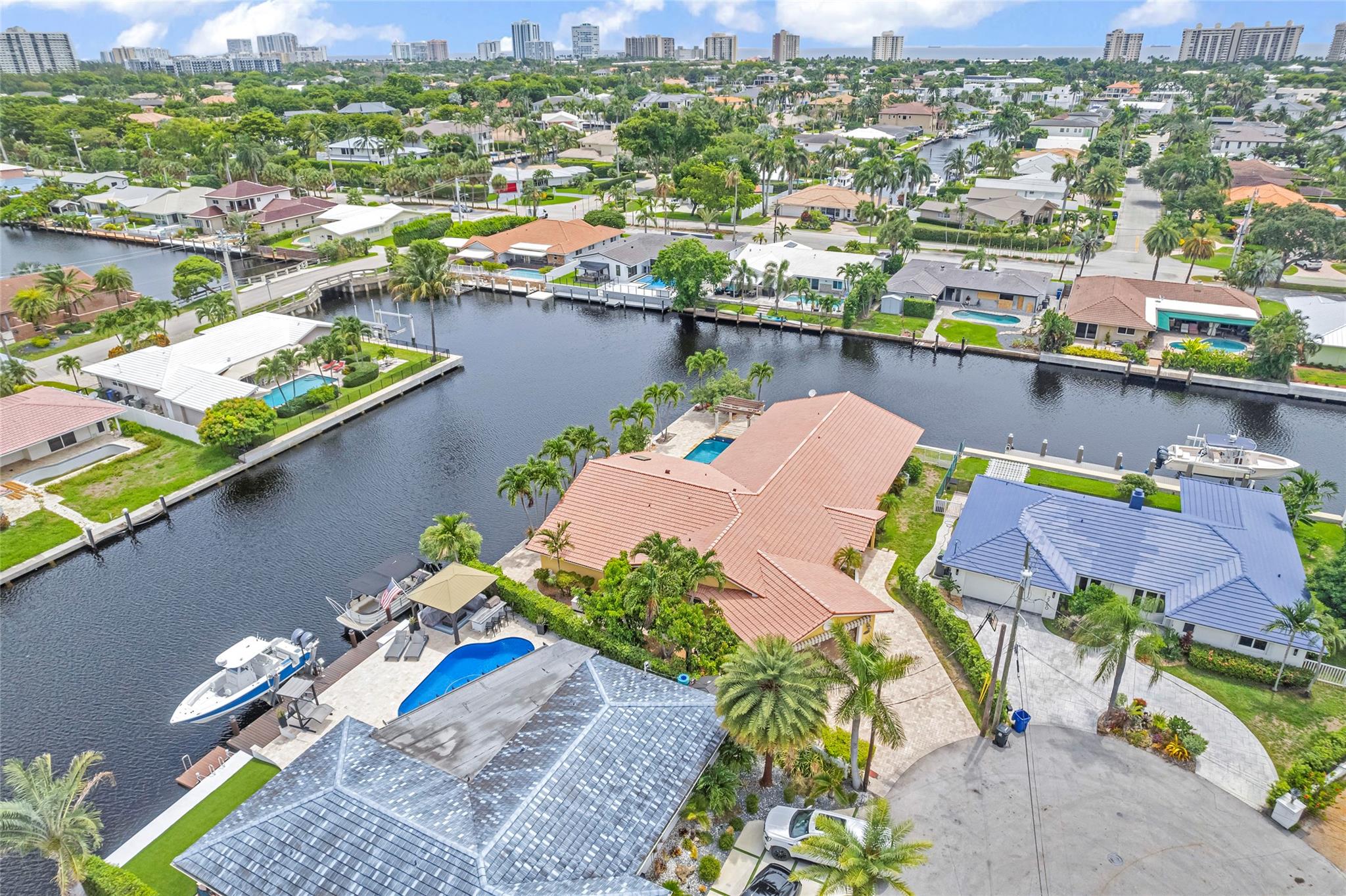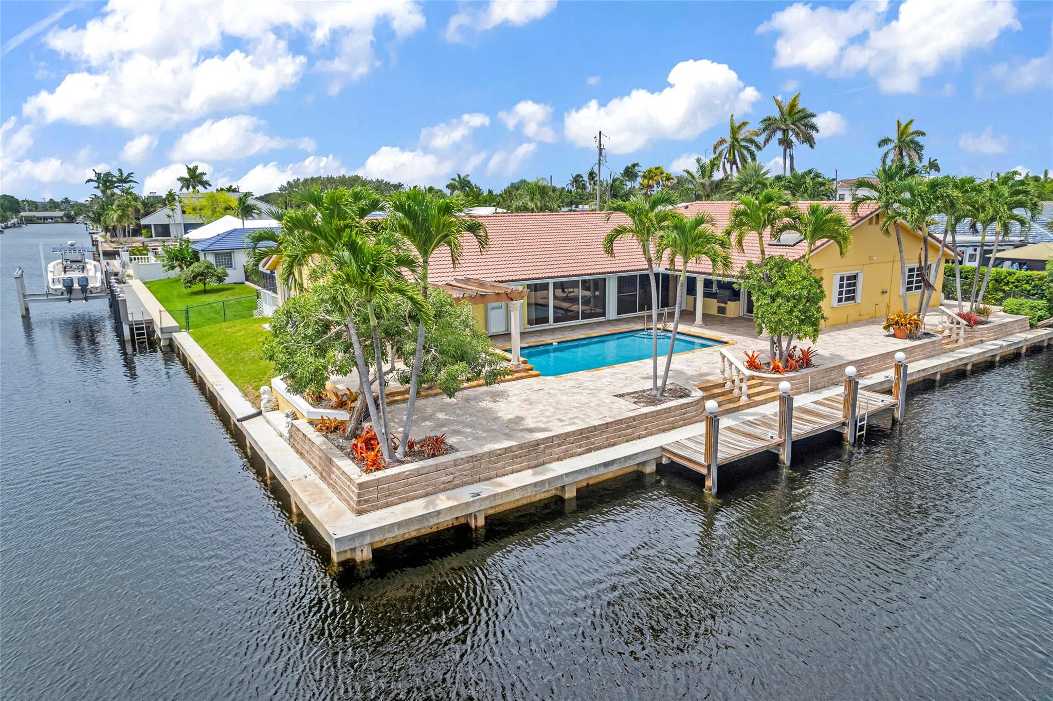 **Ready for Its New Owner!** Discover this stunning residence, perfectly situated on a sprawling point lot with approximately 200 feet of waterfront in the prestigious Lake Estates within the Landings area of Fort Lauderdale. This beautiful home boasts a large pool with a cascading waterfall, a pergola, and a built-in outdoor grill area, perfect for entertaining. Inside, you'll find spacious family rooms, generously sized rooms, tons of closets, heated pool, central vacuum system, 2 year old kitchen appliances and much much more. Located at the end of a quiet cul-de-sac, you're just moments away from the beach, shops, and restaurants. Whether you want to entertain, relax, or enjoy your morning coffee, this home has it all. A must-see inside and out!