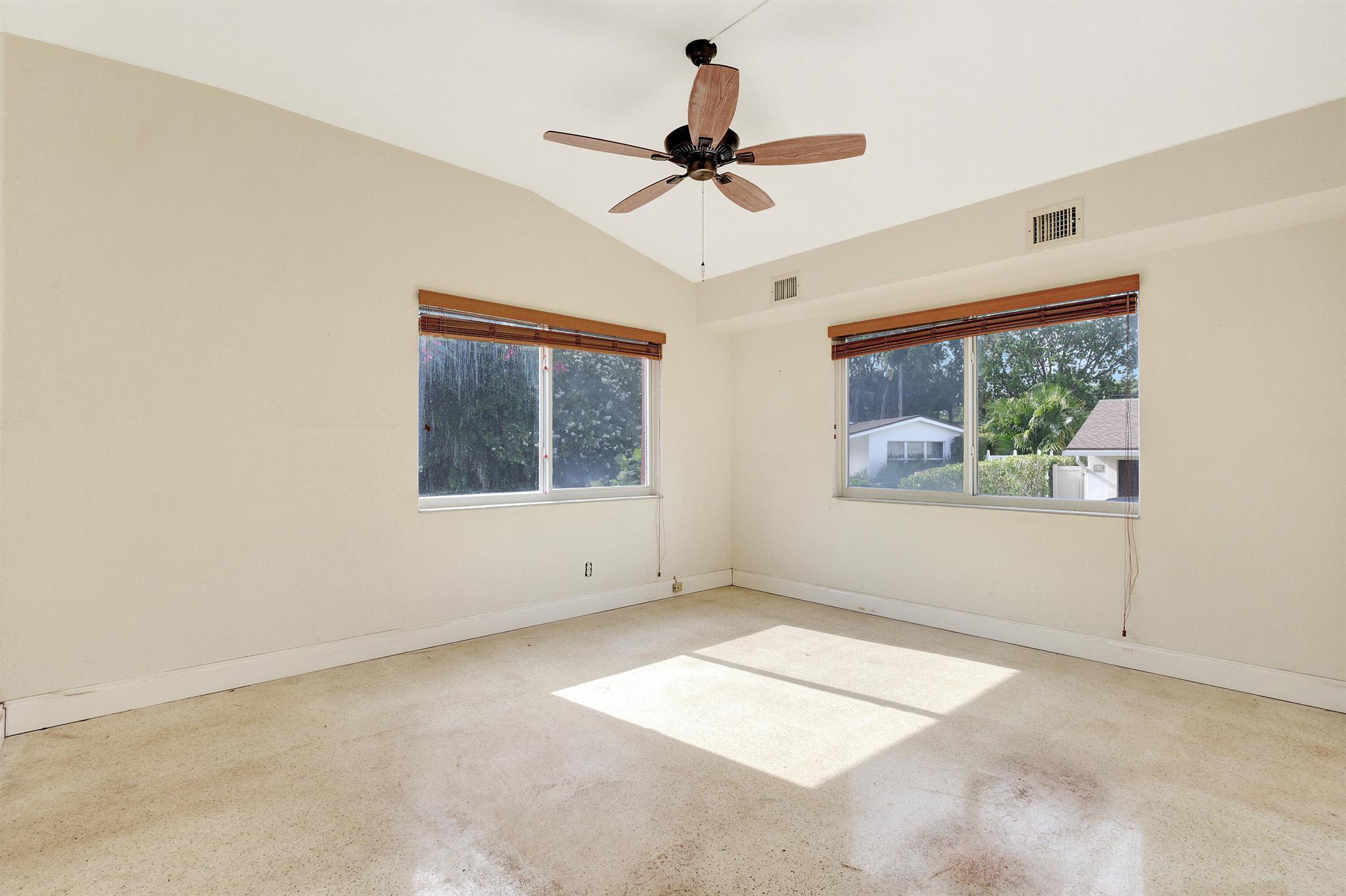 STEPS TO OCEAN: Rare opportunity in one of Boca Raton's top barrier island neighborhoods. This three bedroom, two full-bath home is situated on an approximate 8,750 square foot lot and is located on a private road. The property comes with private access to the beach and also to Lake Wyman/Intracoastal. The home has Dade County pine floors in two upstairs bedrooms with Terrazzo flooring throughout the main level. There is a one-car garage, plus an attached carport. The home is conveniently located close to all restaurants, shopping, groceries, gas stations and drug stores. Several city parks - including Spanish River Park directly to the north and the nine-hole Red Reef golf course to the south - are within easy walking distance. Boca Raton is home to Florida Atlantic University, Lynn