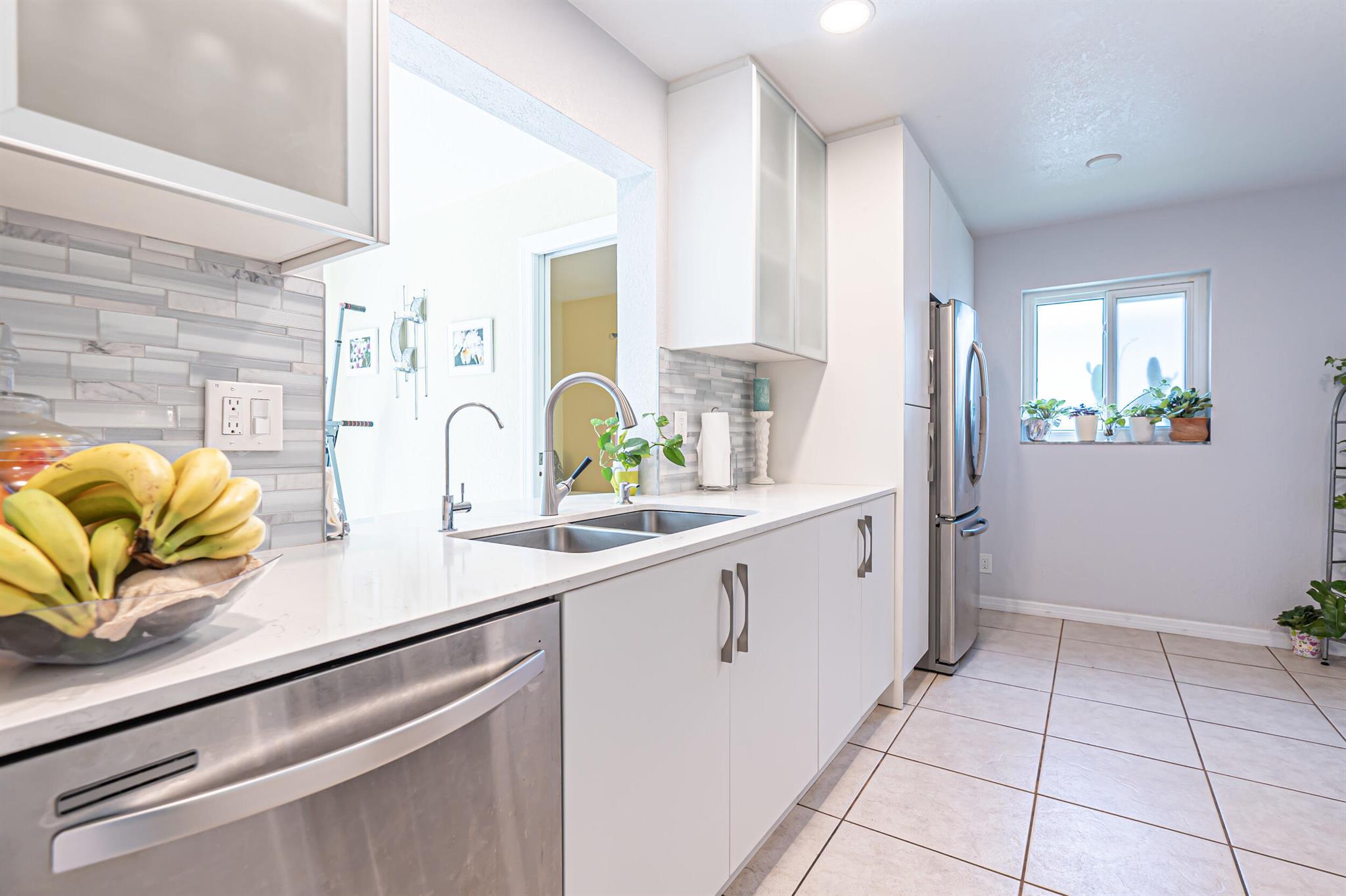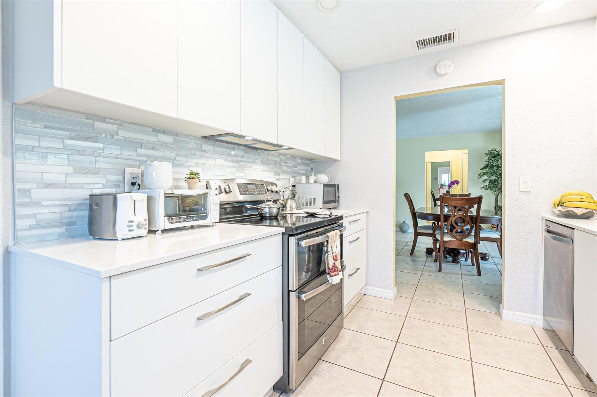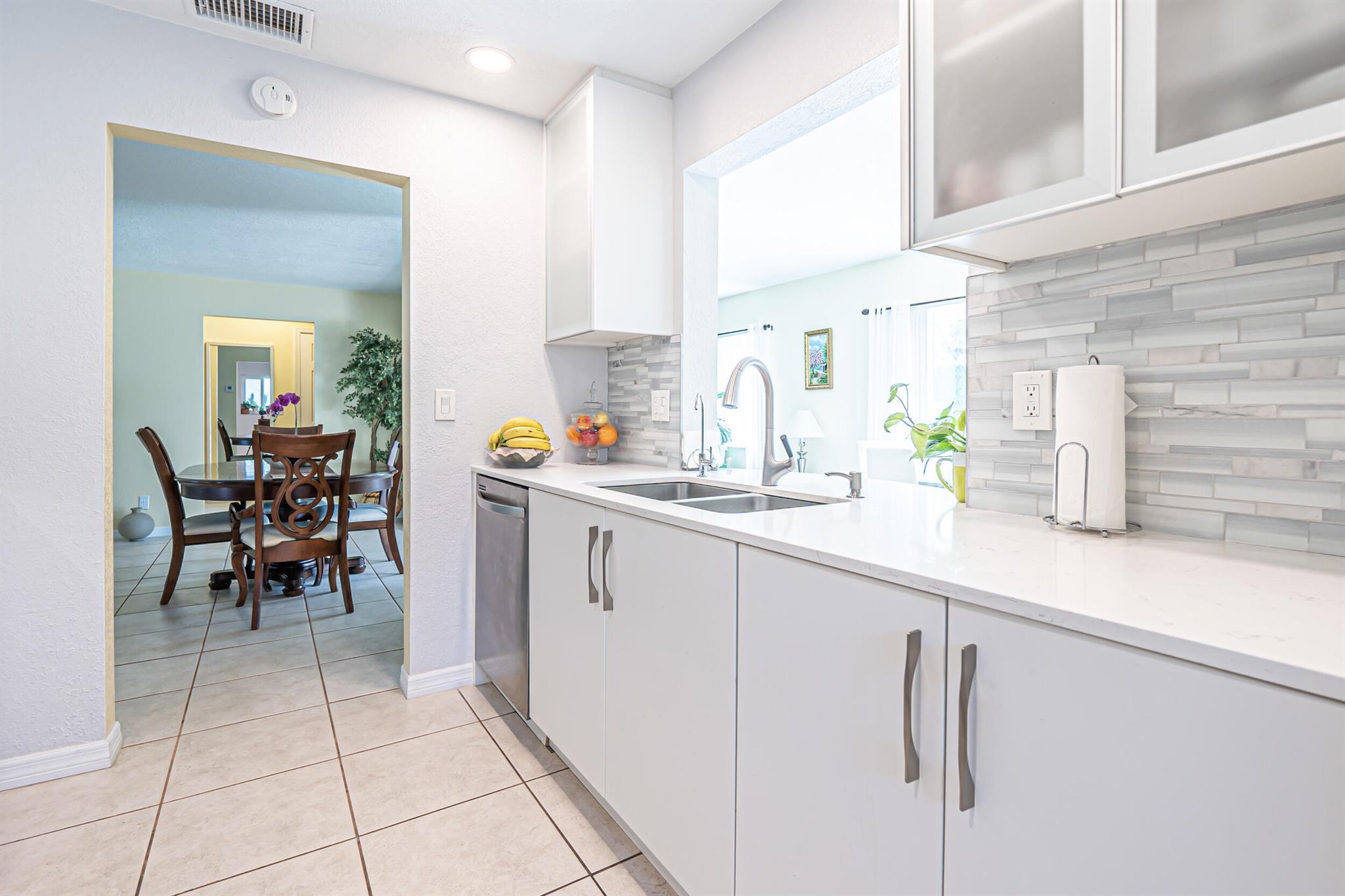 Newly renovated 2-bedroom, 2-bathrooms, 1-car garage home in sought after Lauderdale West community. Modern kitchen with quartz countertops and plenty of storage, tile throughout living areas and wood laminate in bedrooms; expanded, fully enclosed family room, with separate room that could be a third bedroom, energy efficient impact windows, new roof, updated bathrooms, stamped concrete driveway and patio. This property has been lovingly maintained and is immaculate. HOA fees cover roof, lawn care, exterior painting, cable and internet. Active 55-plus community with many amenities, including two clubhouses with pools and inground spas, theather, gym, tennis and even a courtesy shuttle.