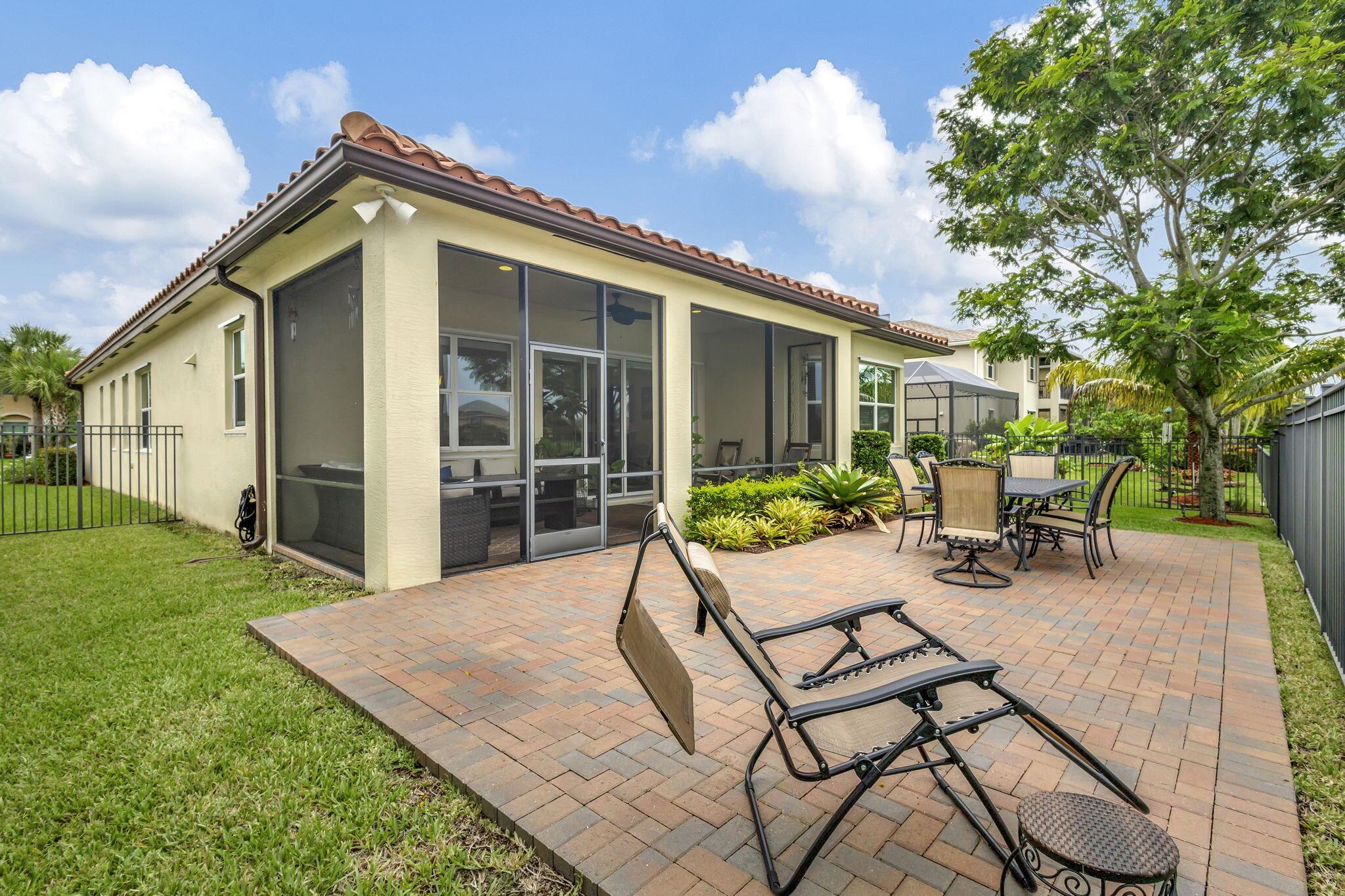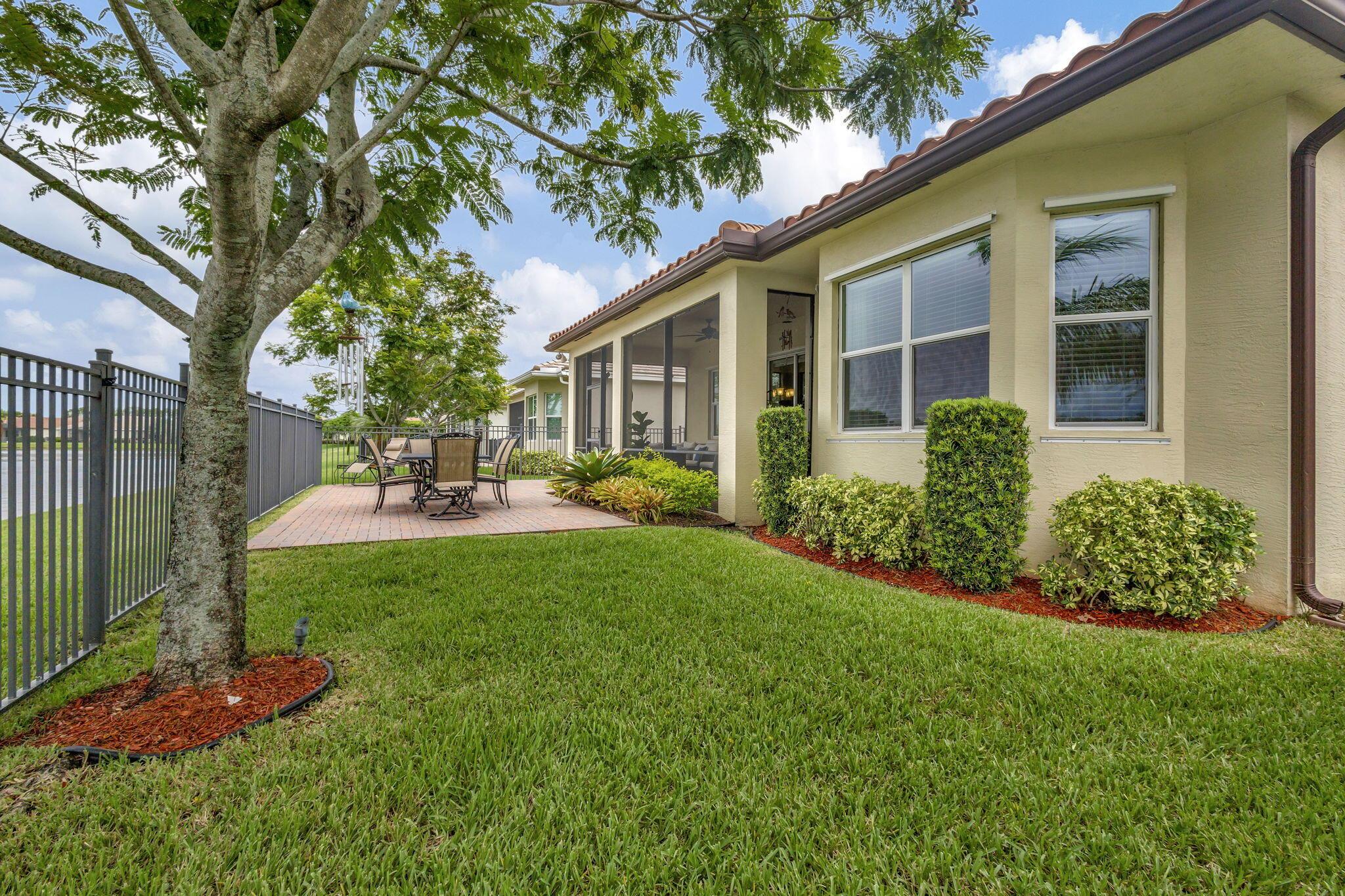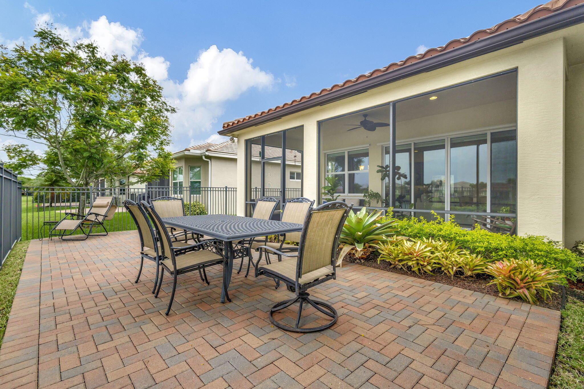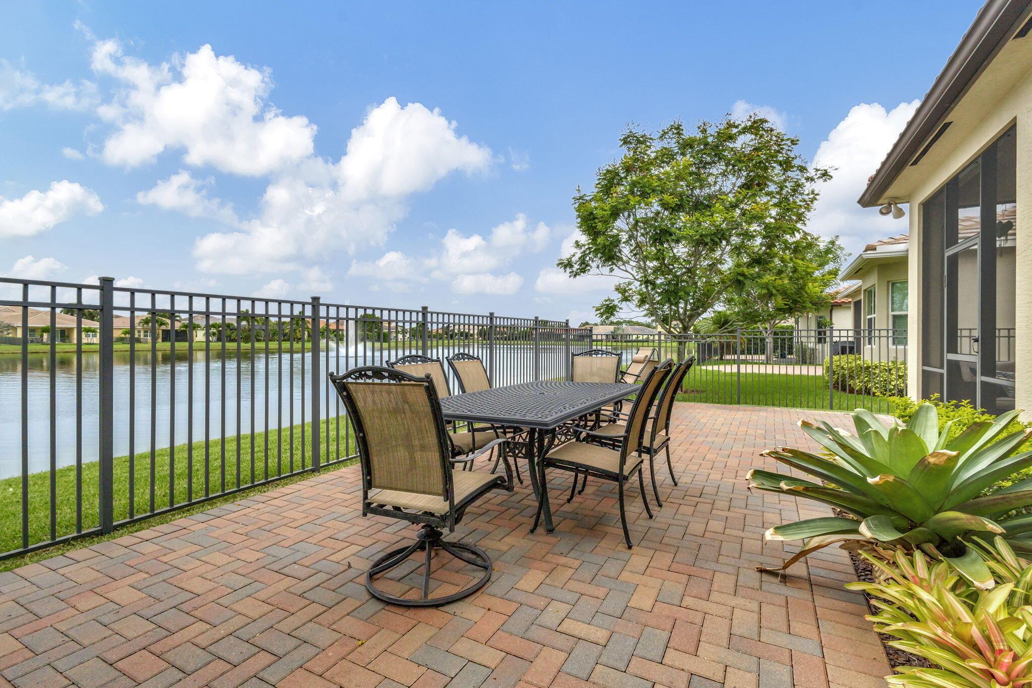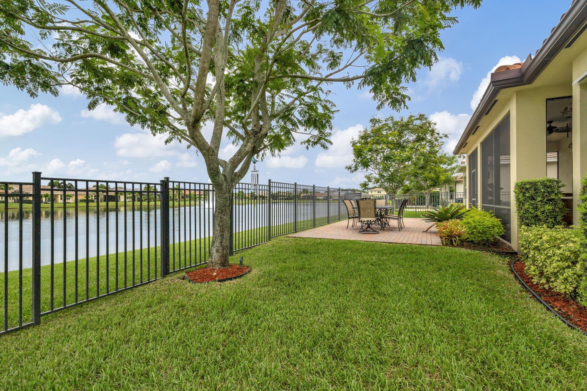 Discover this amazing house! Enjoy peace of mind with a HOME WARRANTY provided by American Home Shield, covering one full year from the day of closing. This desirable home features 3 bedrooms and a versatile flex room, perfect for those who work from home. The triple split floor plan includes a separate dining room and a spacious grand room. The eat-in kitchen boasts ample cabinets and a walk-in pantry. The primary bedroom offers a sitting area, two large closets, and a walk-in shower. Step outside to a pavered, screen-enclosed patio, with an extended patio overlooking a large lake. Your favorite four-legged friend will love the fully fenced backyard, ensuring their safety.