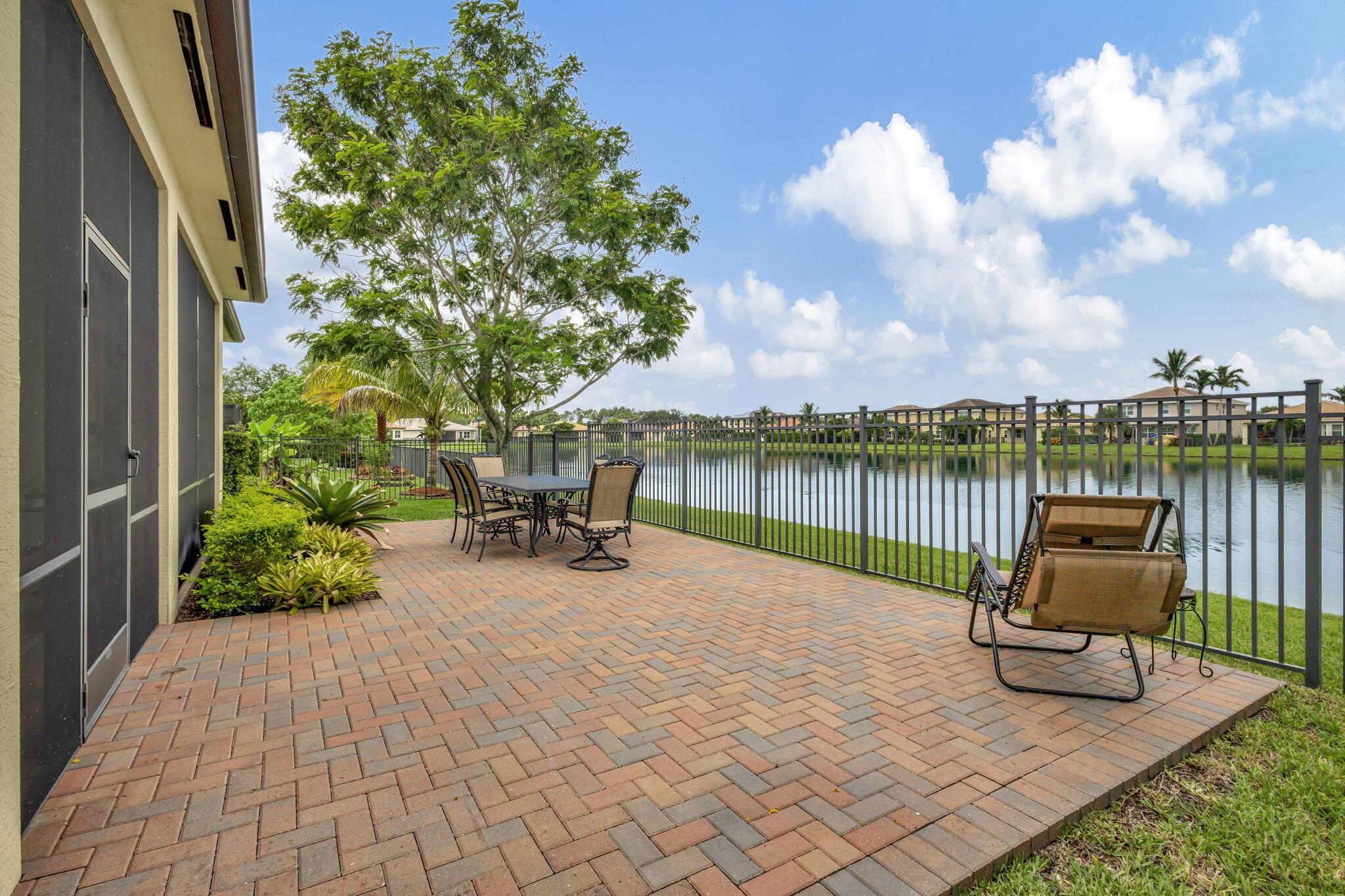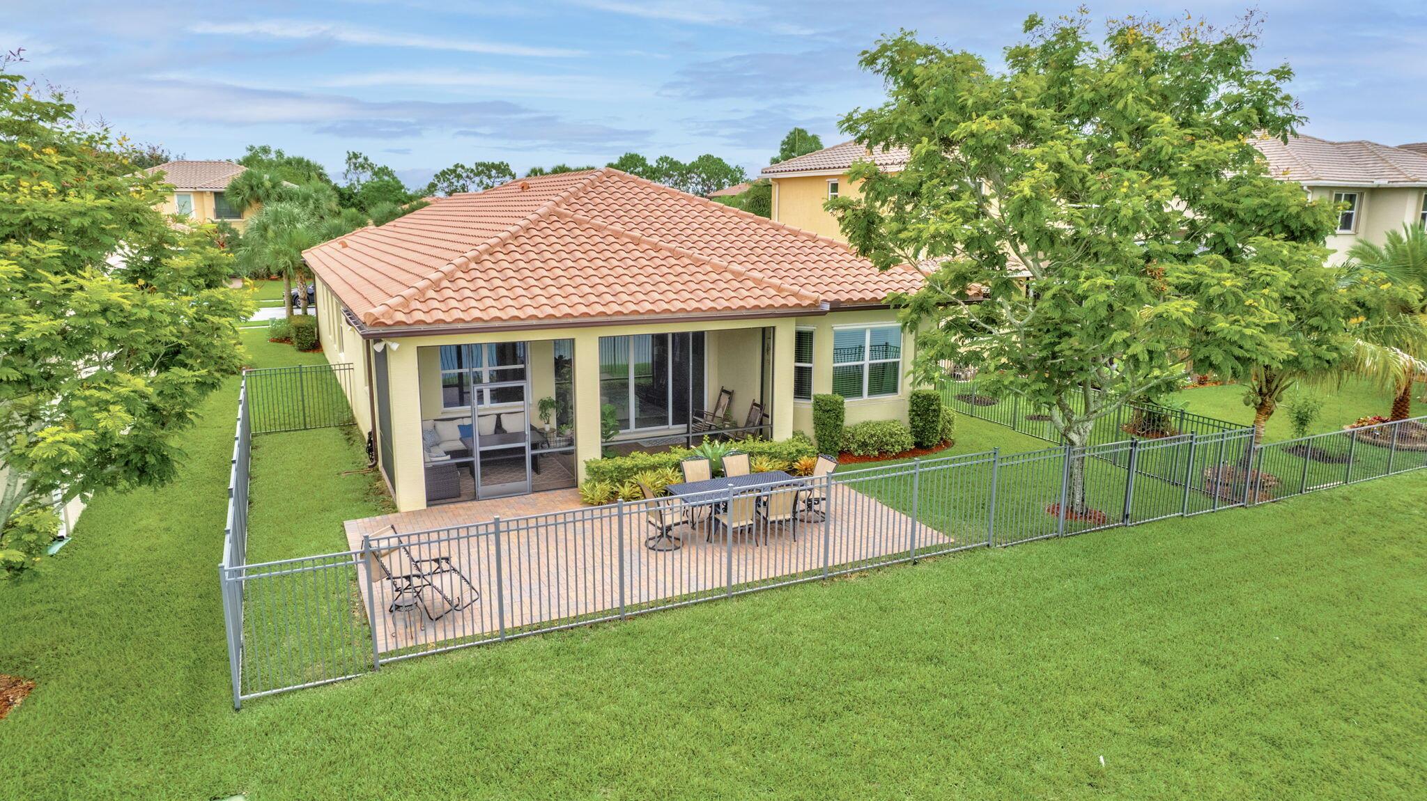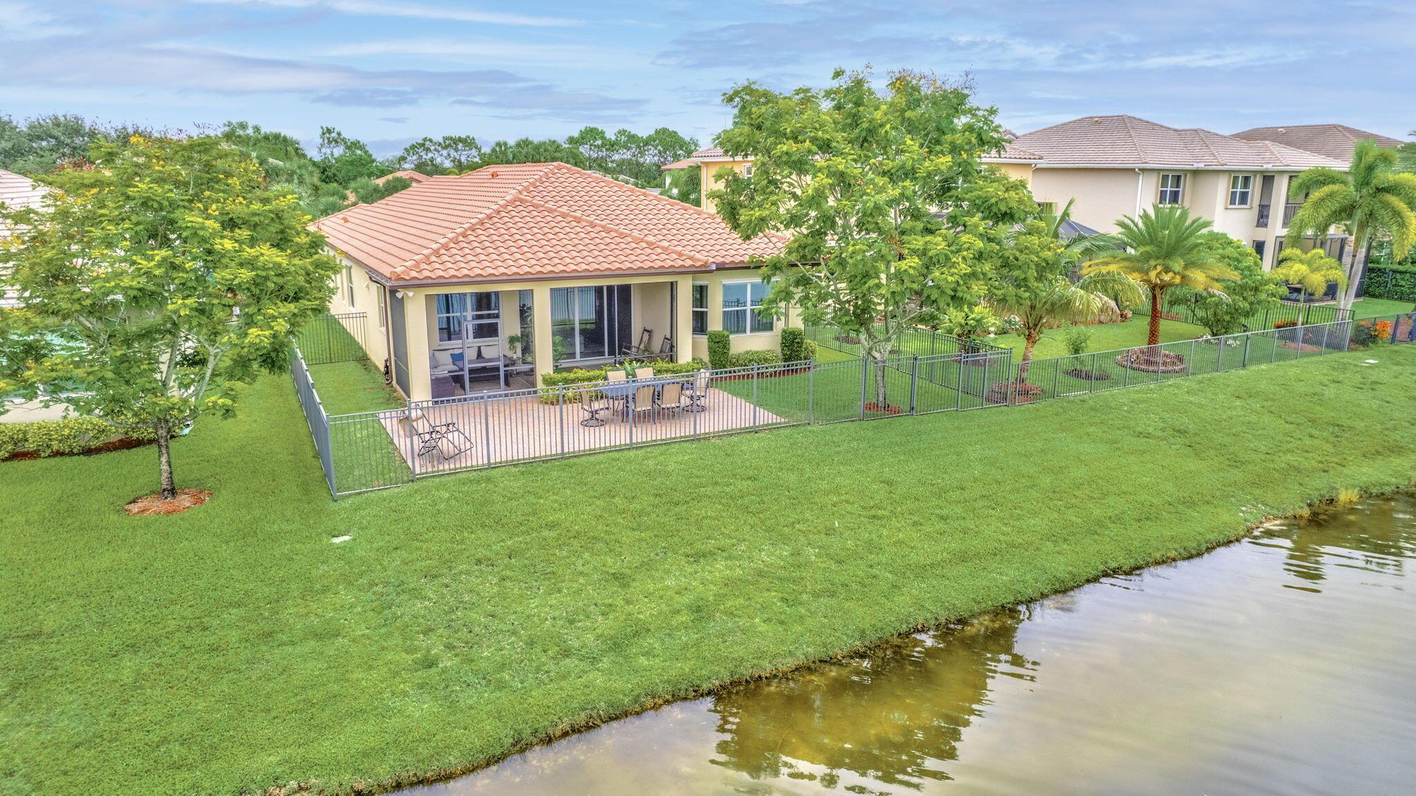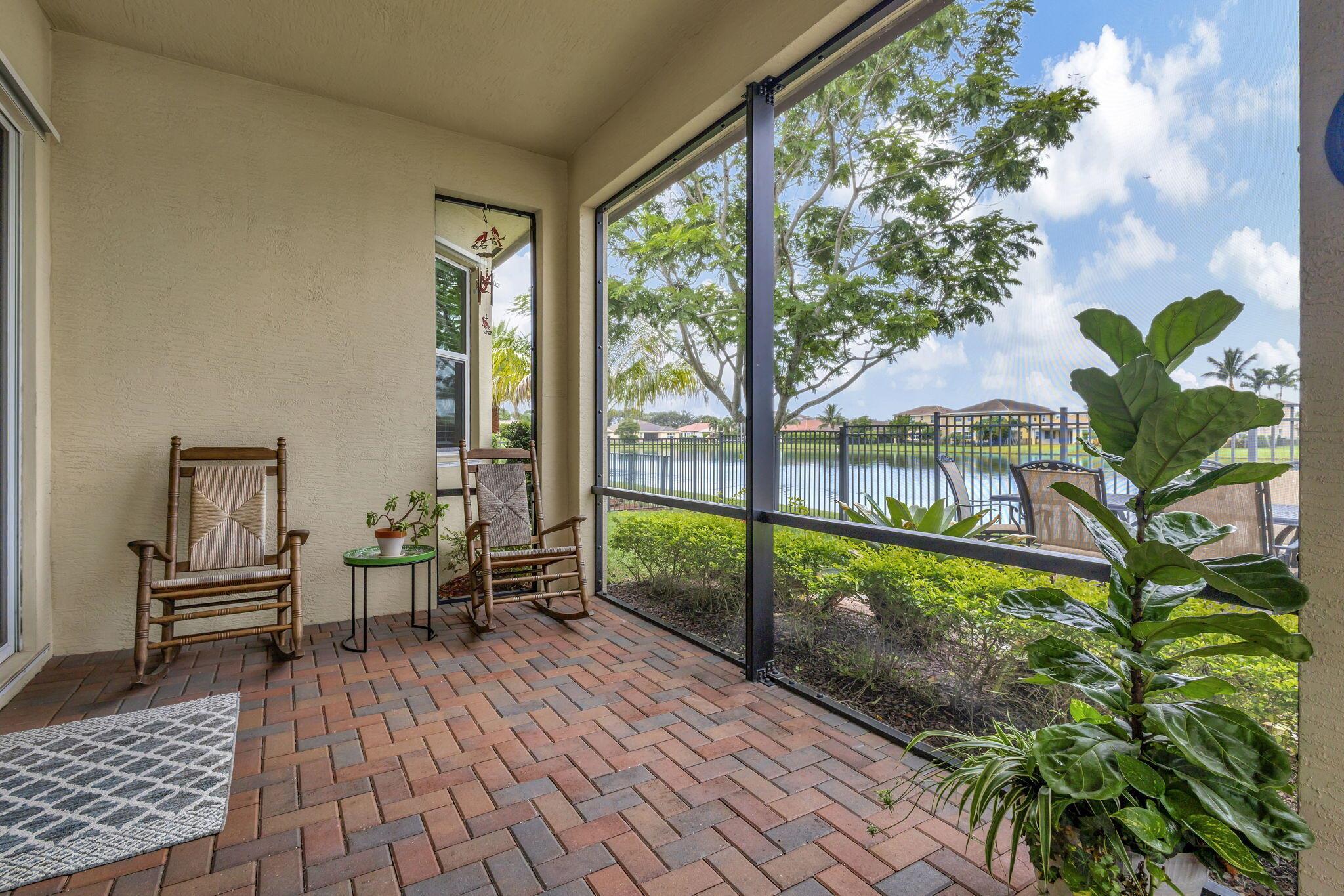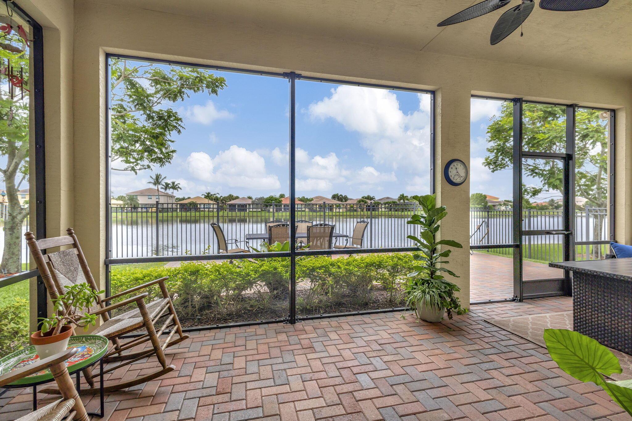 Discover this amazing house! Enjoy peace of mind with a HOME WARRANTY provided by American Home Shield, covering one full year from the day of closing. This desirable home features 3 bedrooms and a versatile flex room, perfect for those who work from home. The triple split floor plan includes a separate dining room and a spacious grand room. The eat-in kitchen boasts ample cabinets and a walk-in pantry. The primary bedroom offers a sitting area, two large closets, and a walk-in shower. Step outside to a pavered, screen-enclosed patio, with an extended patio overlooking a large lake. Your favorite four-legged friend will love the fully fenced backyard, ensuring their safety.