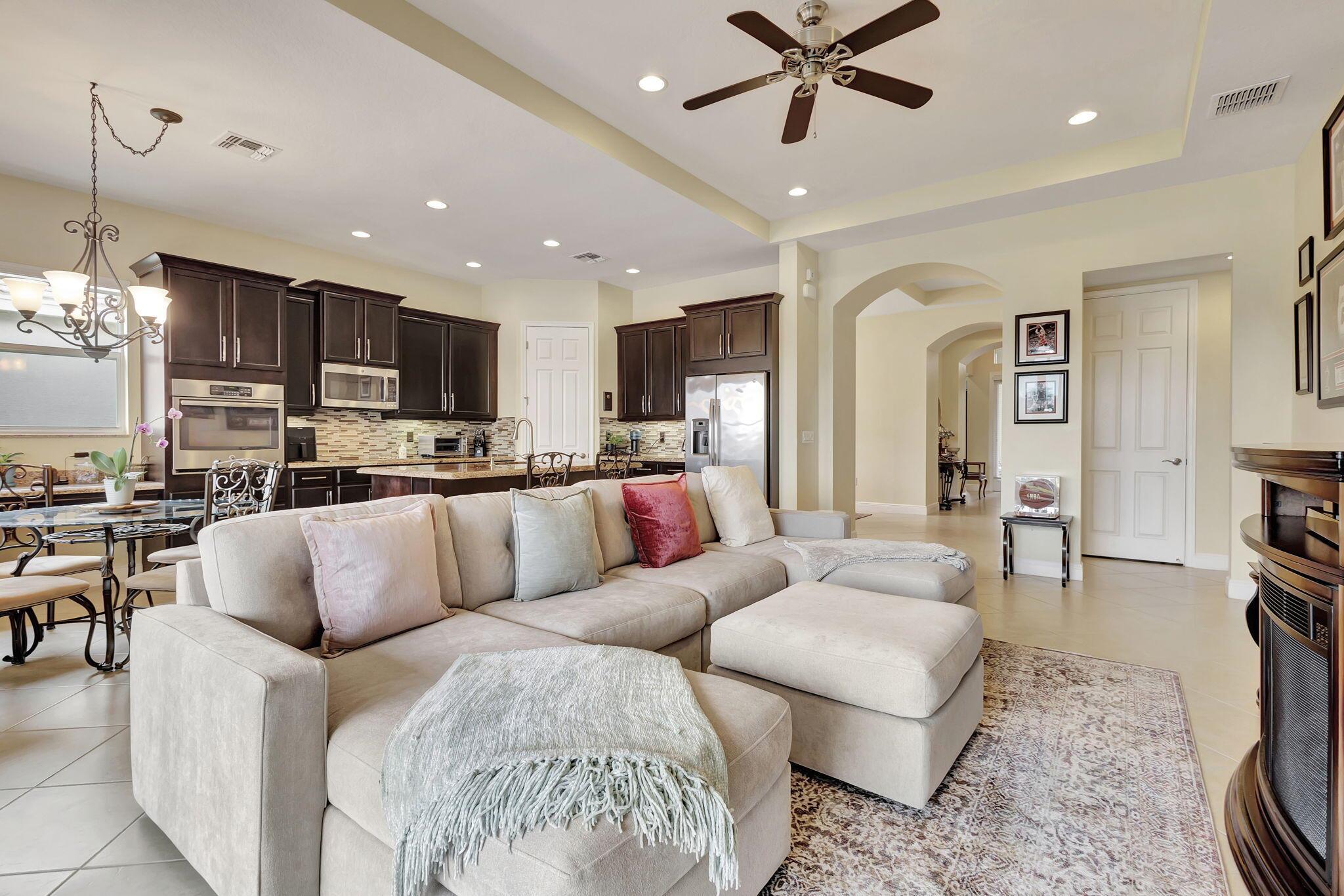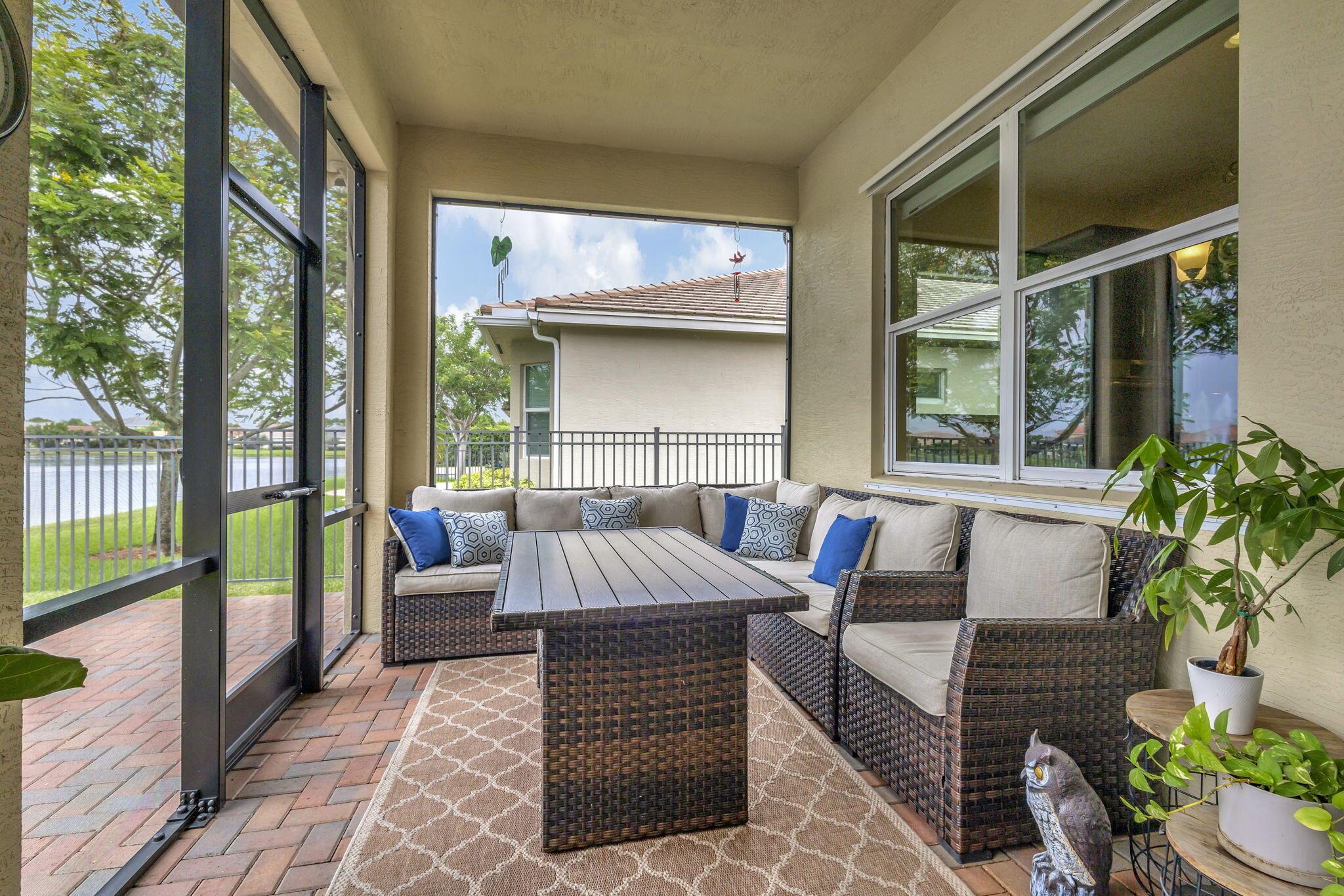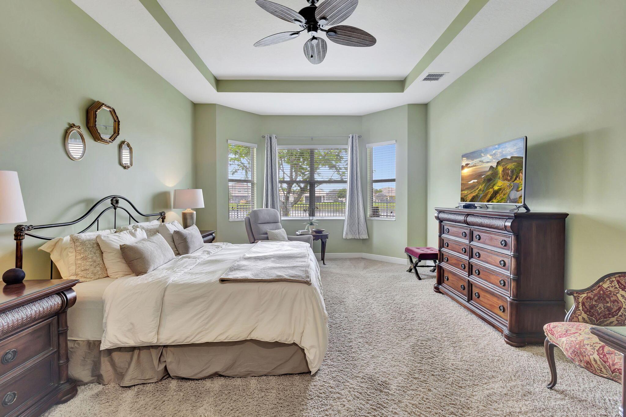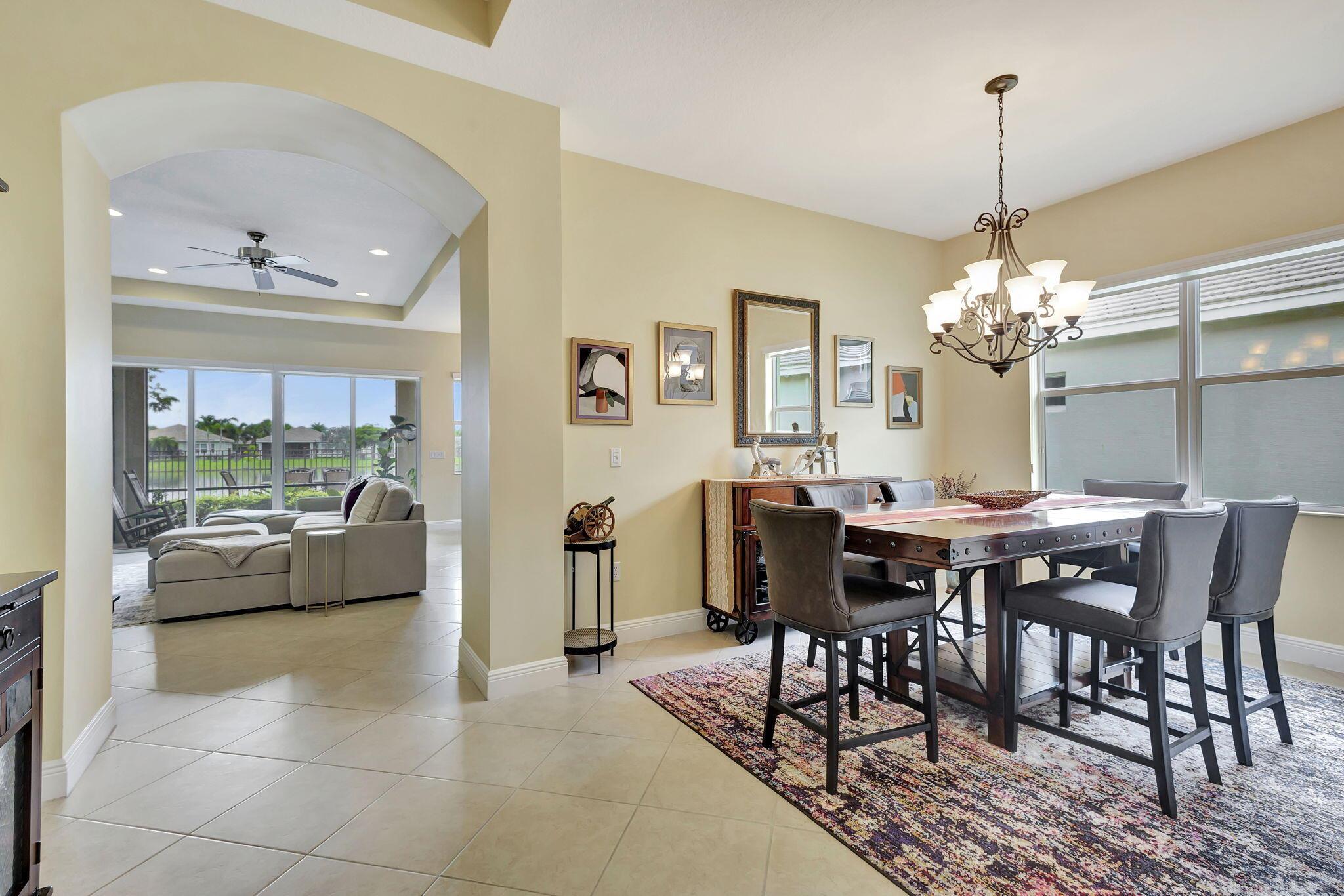 Discover this amazing house! Enjoy peace of mind with a HOME WARRANTY provided by American Home Shield, covering one full year from the day of closing. This desirable home features 3 bedrooms and a versatile flex room, perfect for those who work from home. The triple split floor plan includes a separate dining room and a spacious grand room. The eat-in kitchen boasts ample cabinets and a walk-in pantry. The primary bedroom offers a sitting area, two large closets, and a walk-in shower. Step outside to a pavered, screen-enclosed patio, with an extended patio overlooking a large lake. Your favorite four-legged friend will love the fully fenced backyard, ensuring their safety.