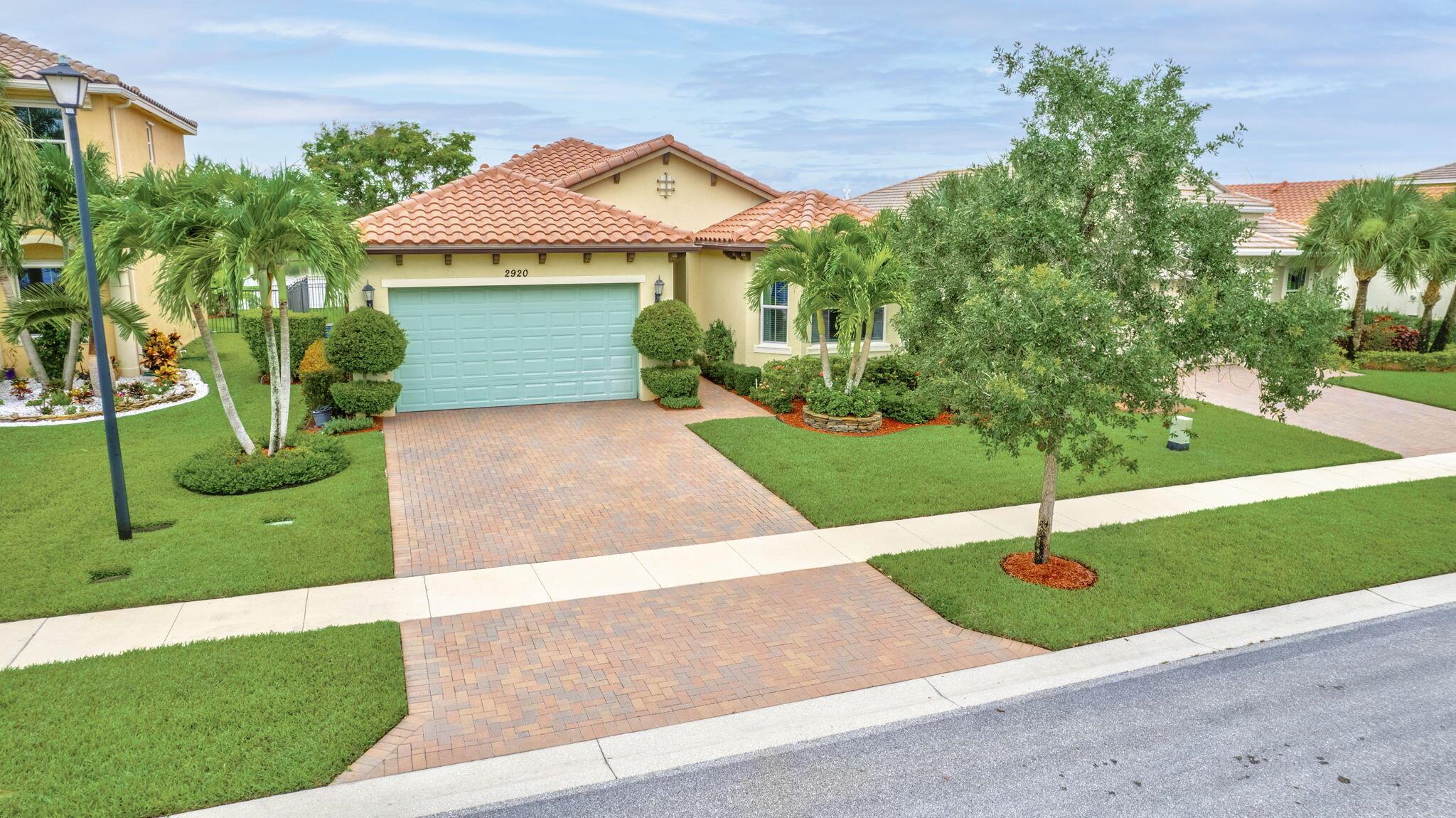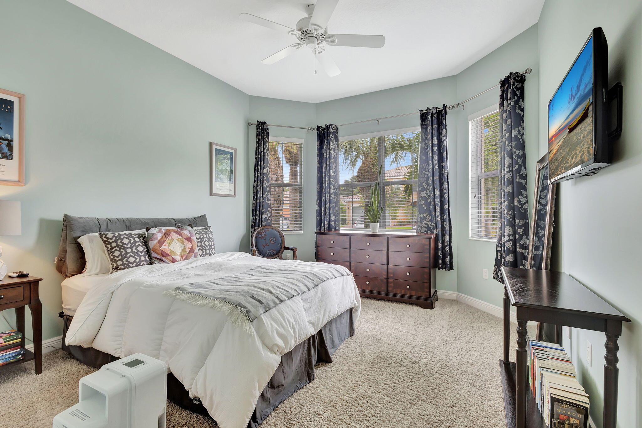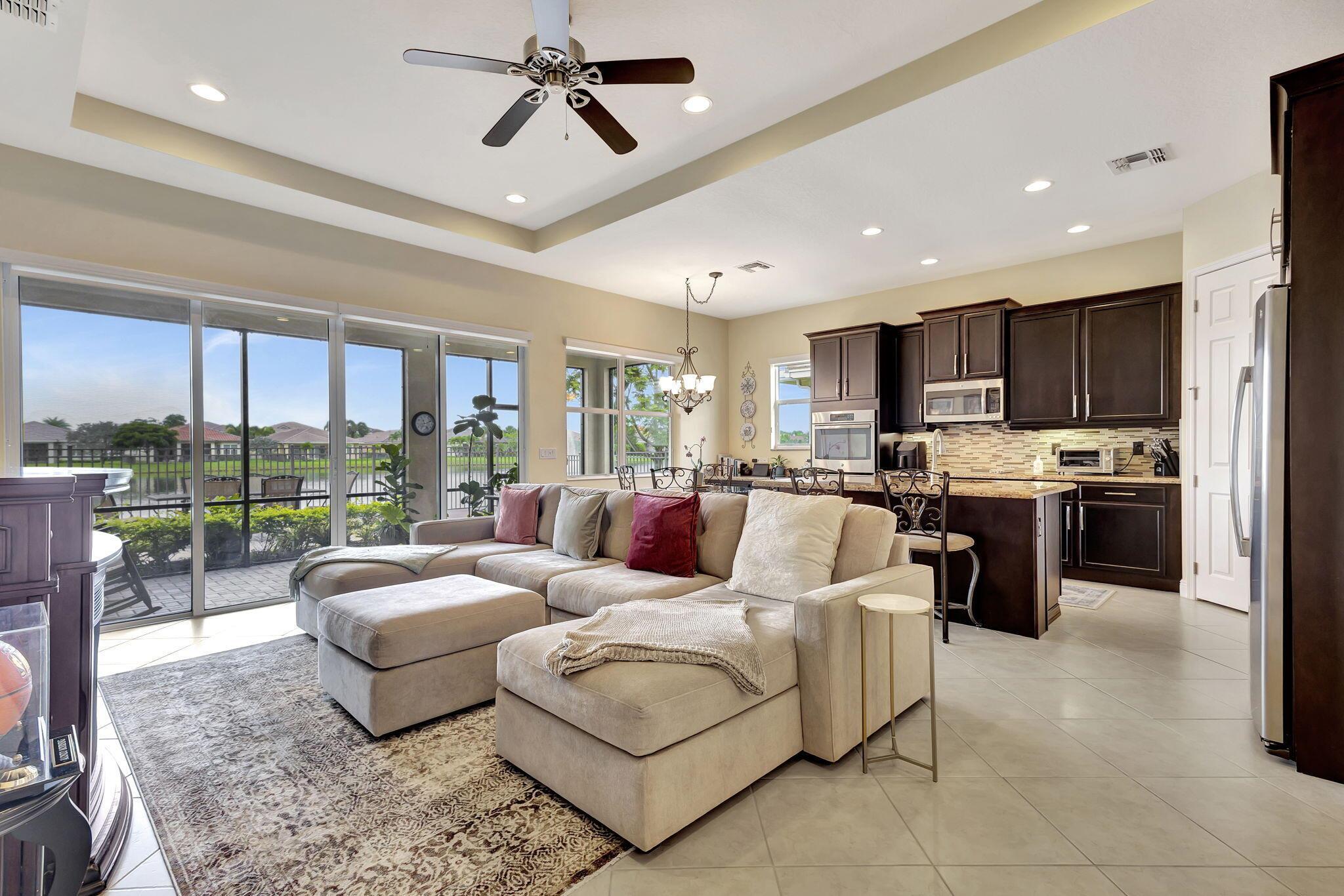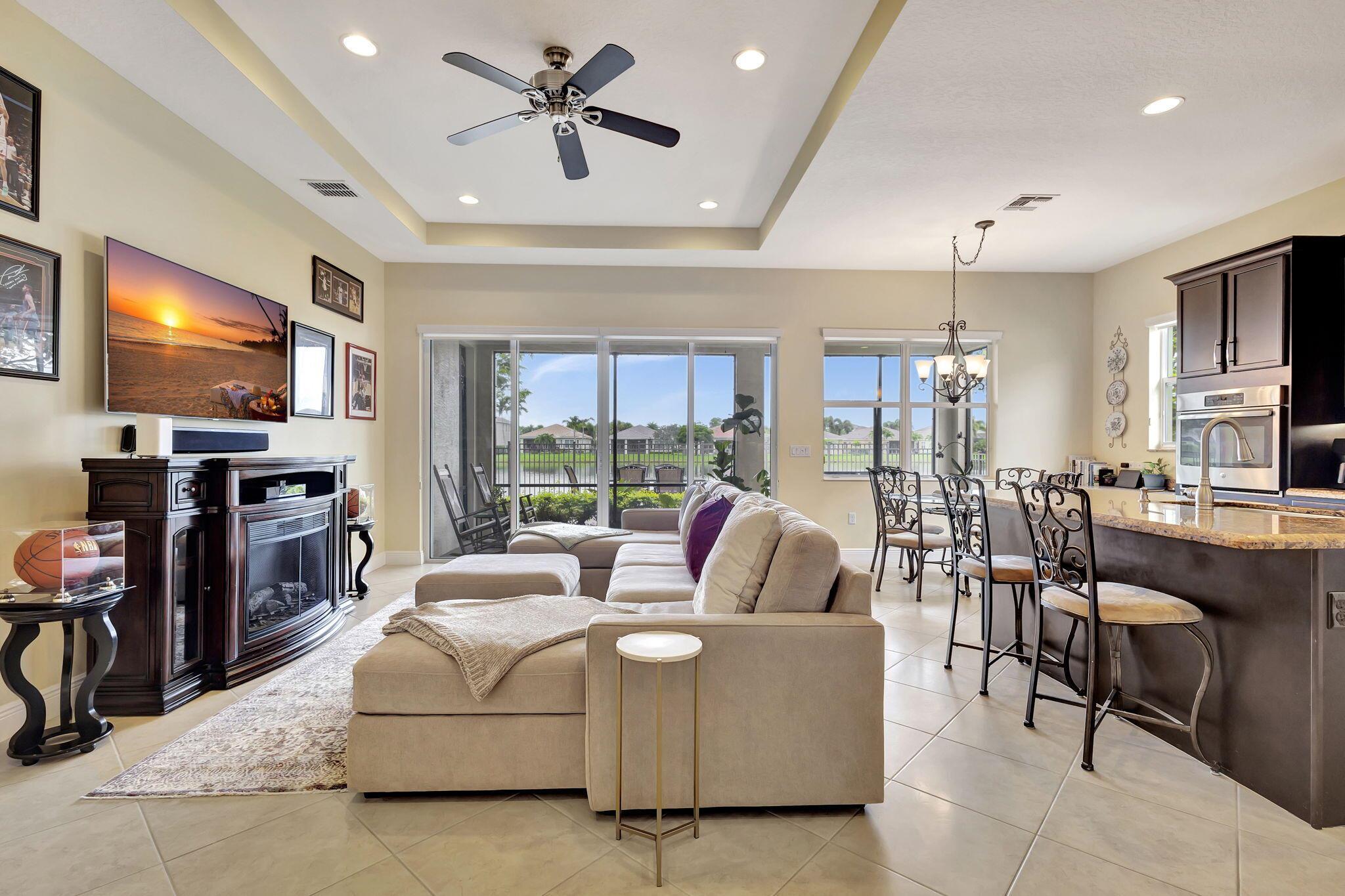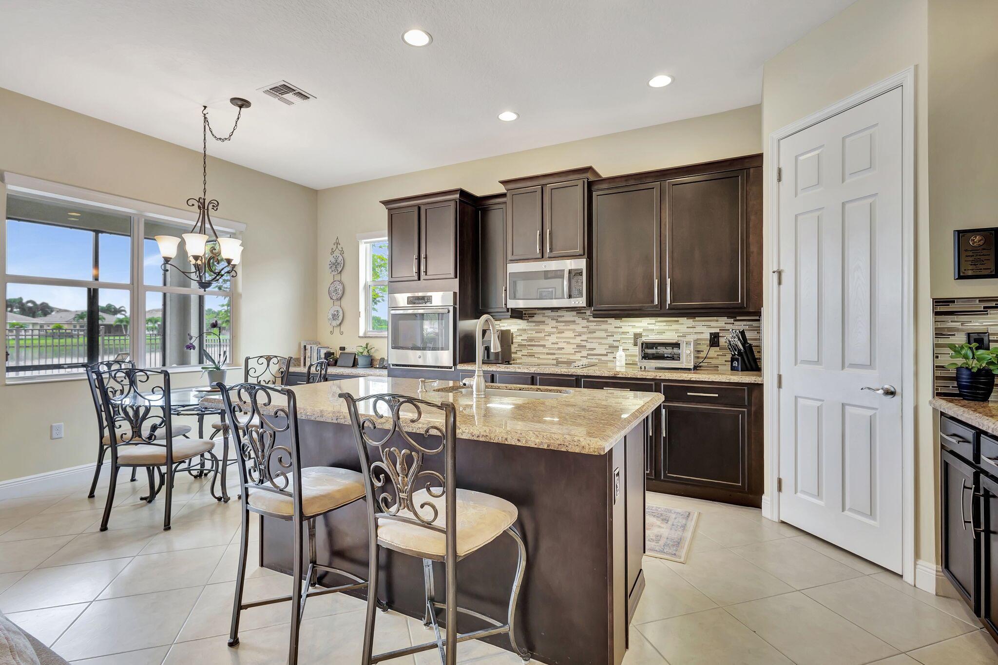 Discover this amazing house! Enjoy peace of mind with a HOME WARRANTY provided by American Home Shield, covering one full year from the day of closing. This desirable home features 3 bedrooms and a versatile flex room, perfect for those who work from home. The triple split floor plan includes a separate dining room and a spacious grand room. The eat-in kitchen boasts ample cabinets and a walk-in pantry. The primary bedroom offers a sitting area, two large closets, and a walk-in shower. Step outside to a pavered, screen-enclosed patio, with an extended patio overlooking a large lake. Your favorite four-legged friend will love the fully fenced backyard, ensuring their safety.