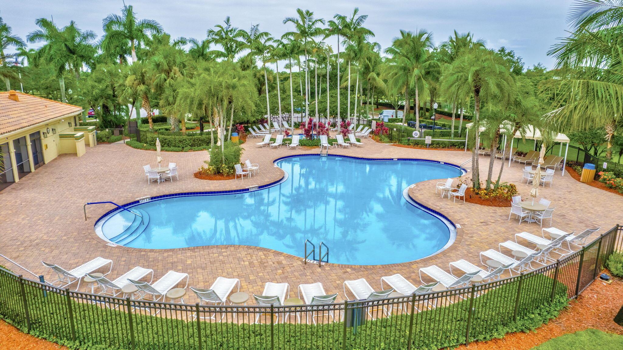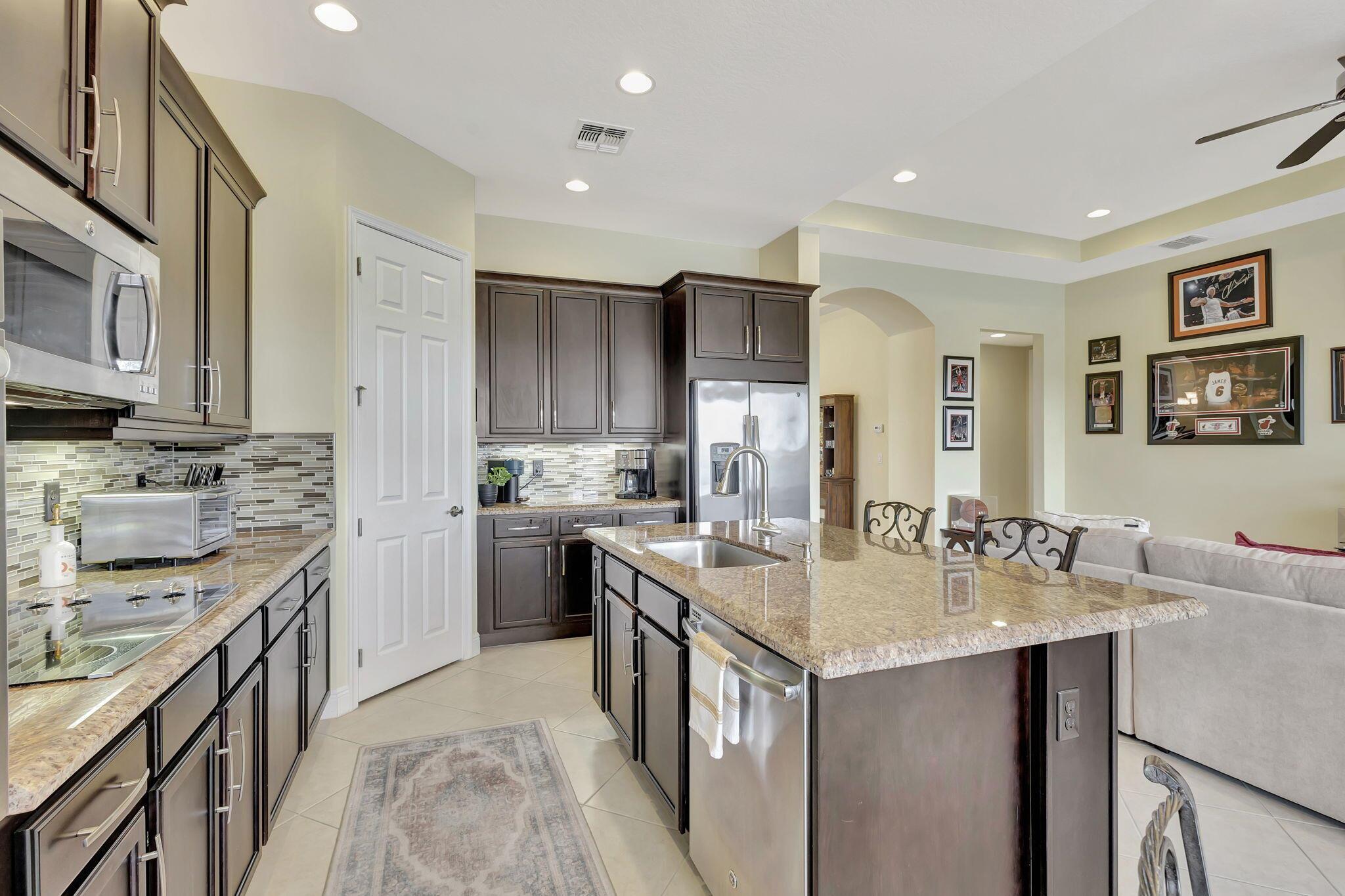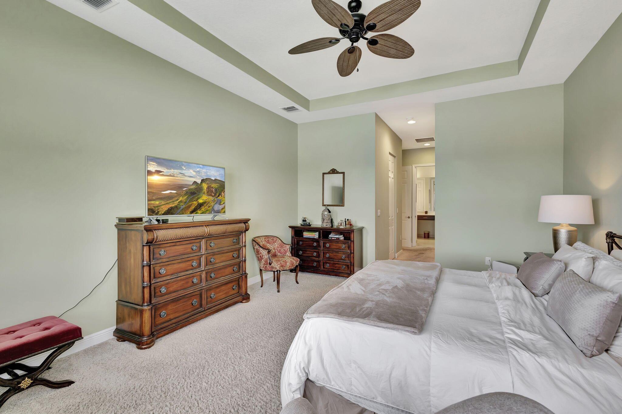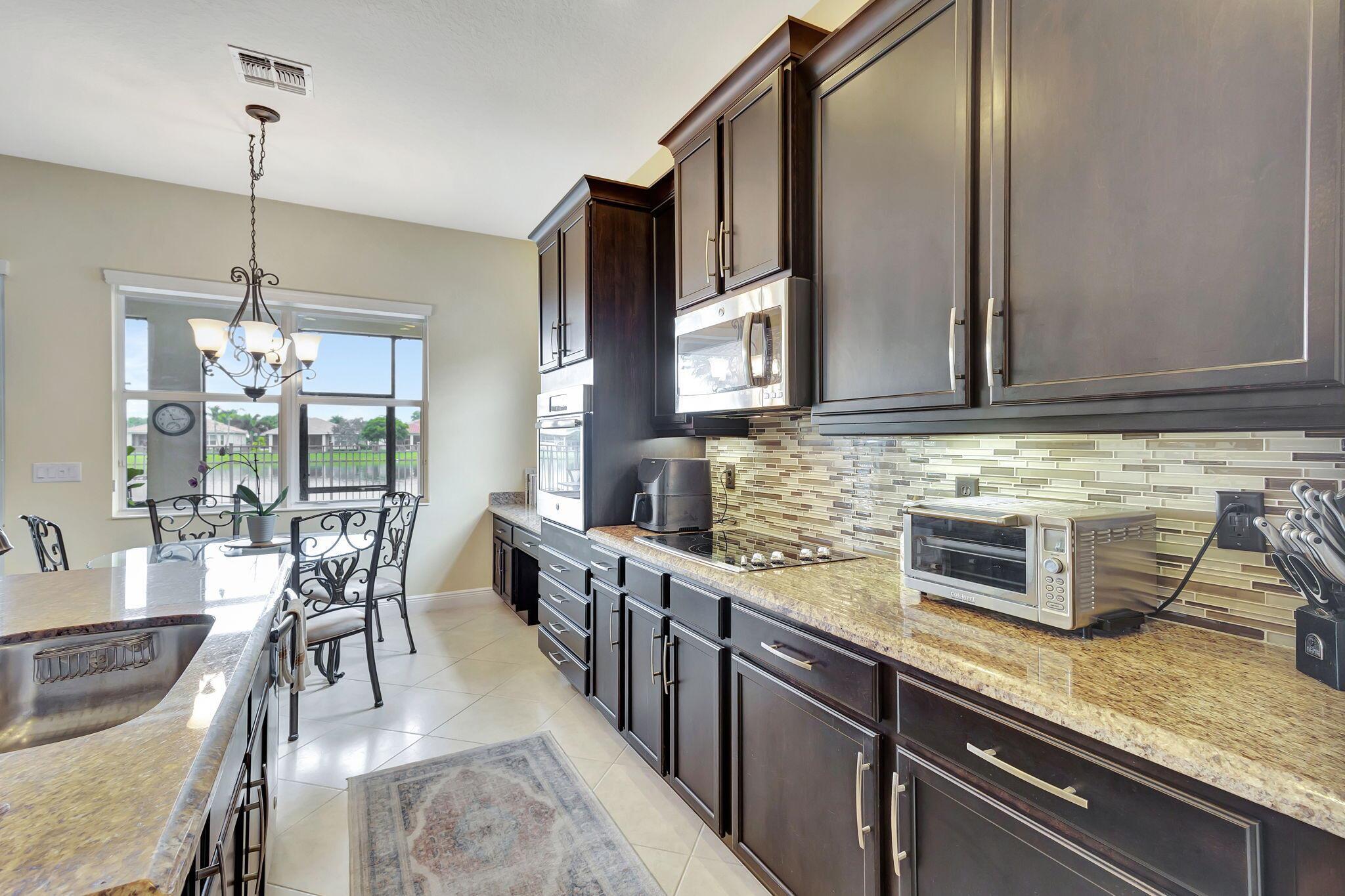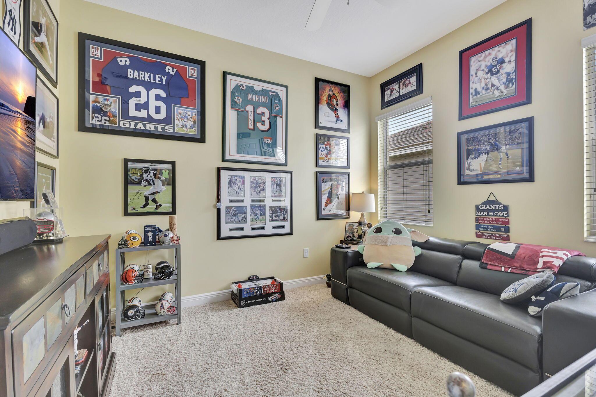 Discover this amazing house! Enjoy peace of mind with a HOME WARRANTY provided by American Home Shield, covering one full year from the day of closing. This desirable home features 3 bedrooms and a versatile flex room, perfect for those who work from home. The triple split floor plan includes a separate dining room and a spacious grand room. The eat-in kitchen boasts ample cabinets and a walk-in pantry. The primary bedroom offers a sitting area, two large closets, and a walk-in shower. Step outside to a pavered, screen-enclosed patio, with an extended patio overlooking a large lake. Your favorite four-legged friend will love the fully fenced backyard, ensuring their safety.