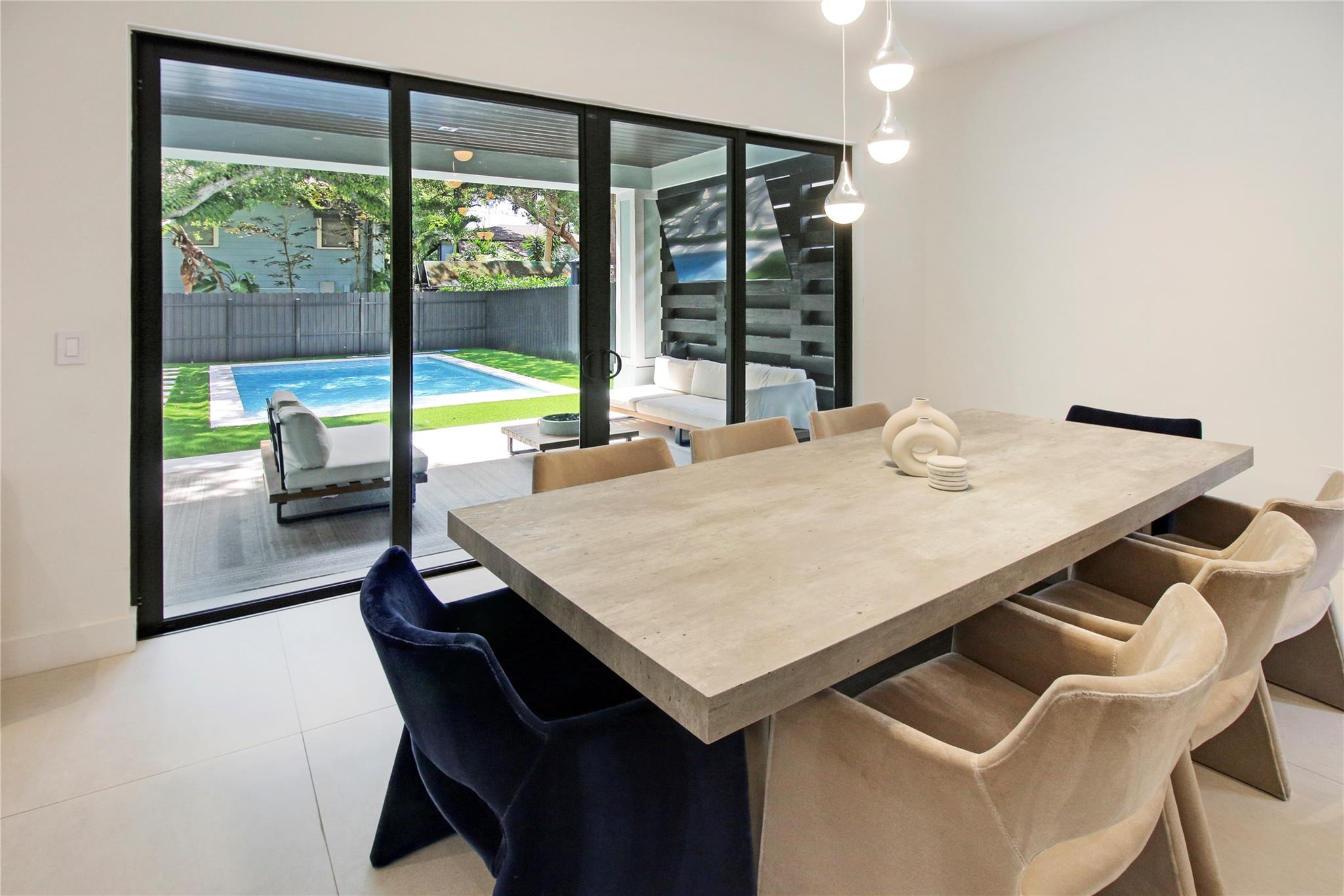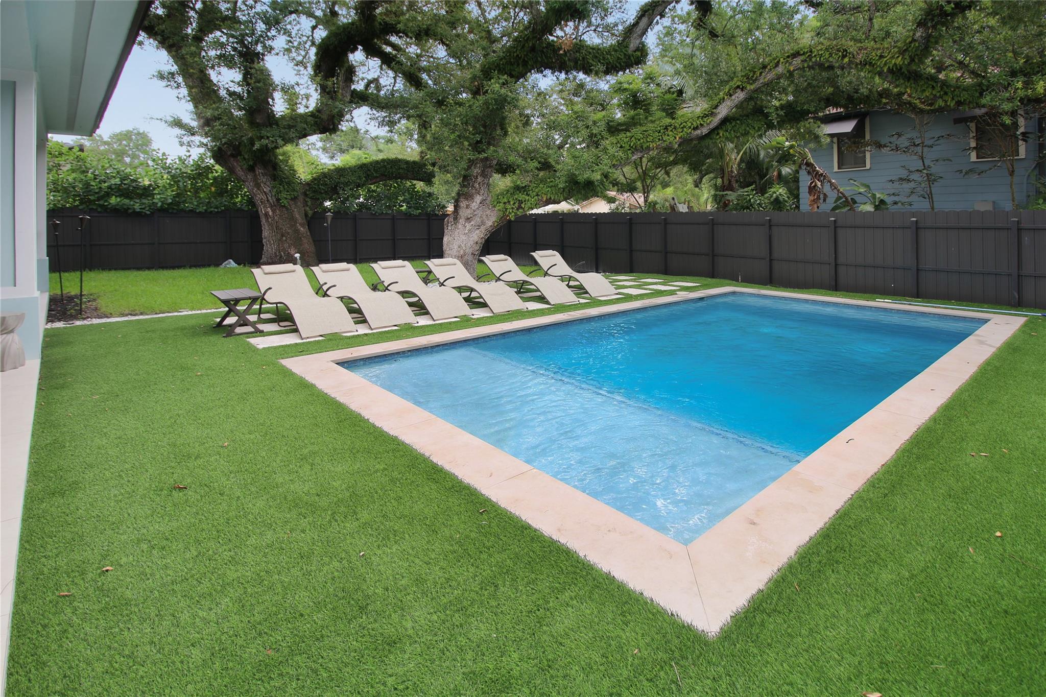ABSOLUTELY STUNNING FULLY FURNISHED modern home boasting 5 bedrooms, 4 bathrooms, MOVIE THEATER w/ recliner chairs + projector + screen included, HEATED POOL surrounded by a luxurious turfed yard, huge patio + IMPACT WINDOWS. Less than 2 miles from downtown Las Olas Blvd, it offers secure parking in a peaceful neighborhood. Professionally designed w/ top-tier finishes, GORMET CHEF'S KITCHEN offers modern custom cabinetry, QUARTZ COUNTER TOPS, a huge island & STAINLESS STEEL APPLIANCES. Laundry room near bedrooms. All TVs included in every room + 2 large TVs outside. Enjoy premium amenities and a meticulous standard of cleanliness. Ideal for families seeking relaxation and excitement in the heart of it all. Next door to infamous the Riverside Market + 1 block from community park. ROOF=2022