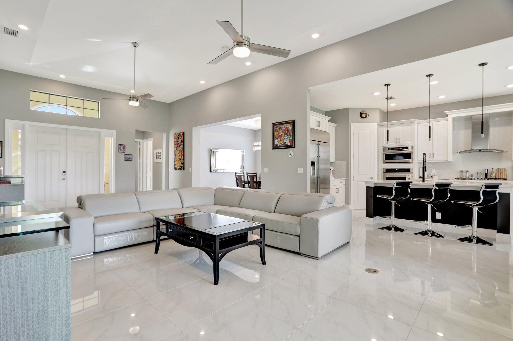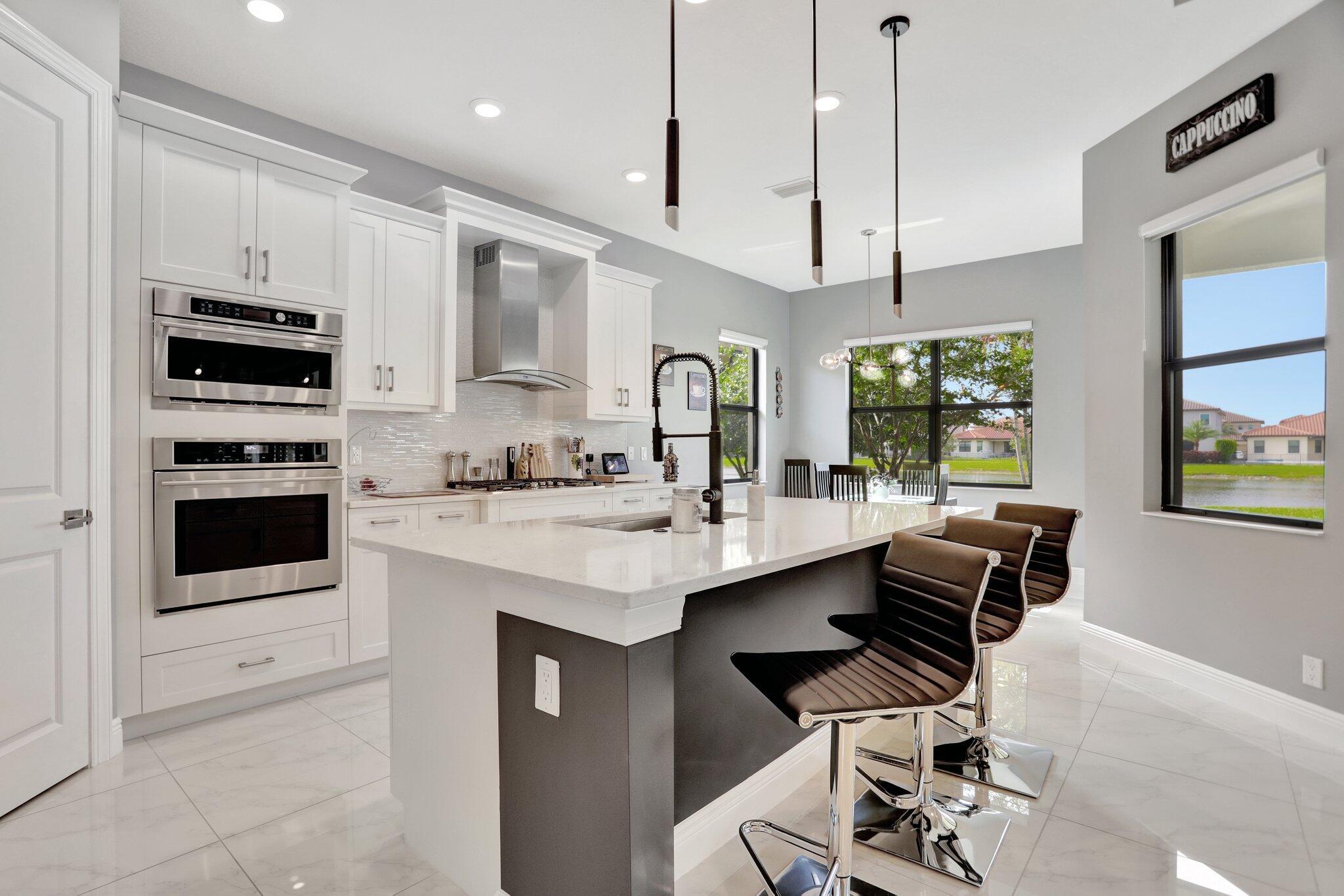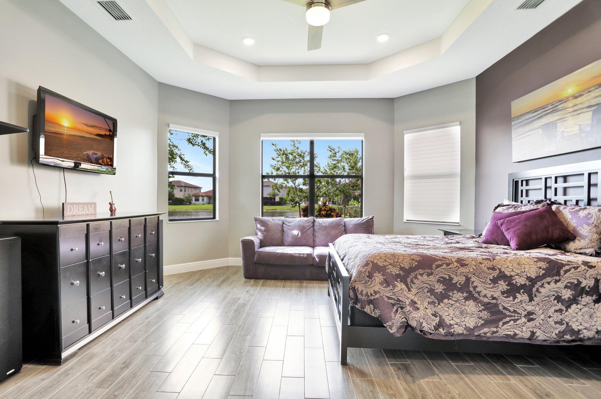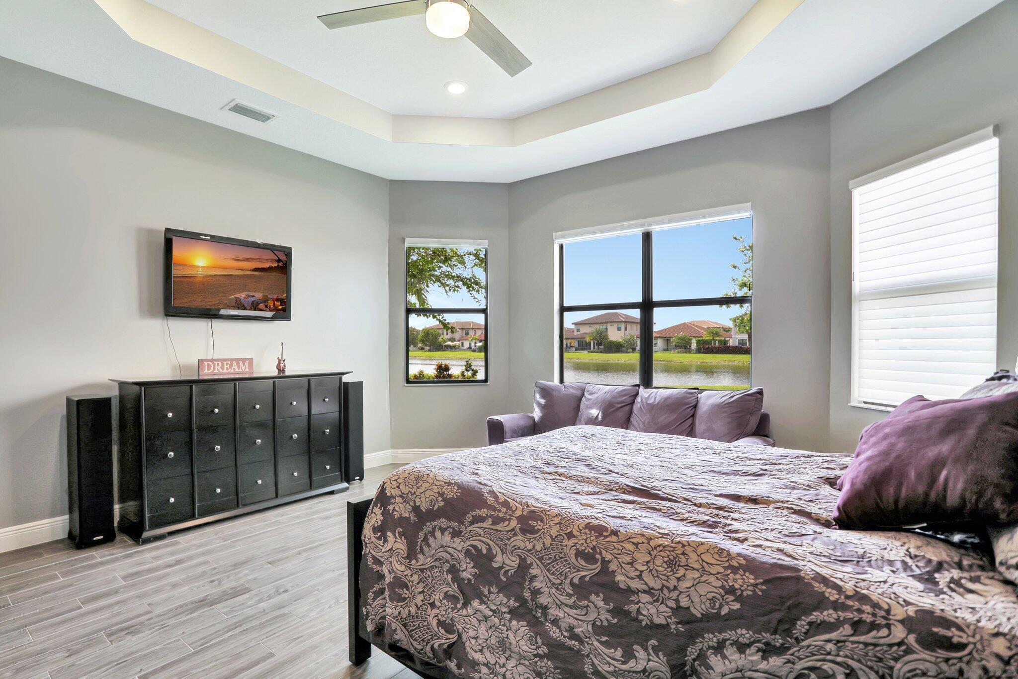 Discover this stunning single-story lakefront home in the gated community of Parkland Bay, nestled on an oversized lot in a peaceful cul-de-sac. This beautifully maintained residence features 3 to 4 bedrooms, 3.5 baths, and a home office/study. The chef-inspired gourmet kitchen boasts upgraded monogram appliances, quartz countertops, and premium cabinetry. The expansive great room (17x32) impresses with vaulted tray ceilings and a decorative wall.Additional highlights include fresh paint throughout, 24''x24'' Palidino tile, a primary bedroom with tray ceiling and custom his-and-her closets, a top-rated Carrier HVAC system, tankless hot water heater, and hurricane impact windows and doors.
