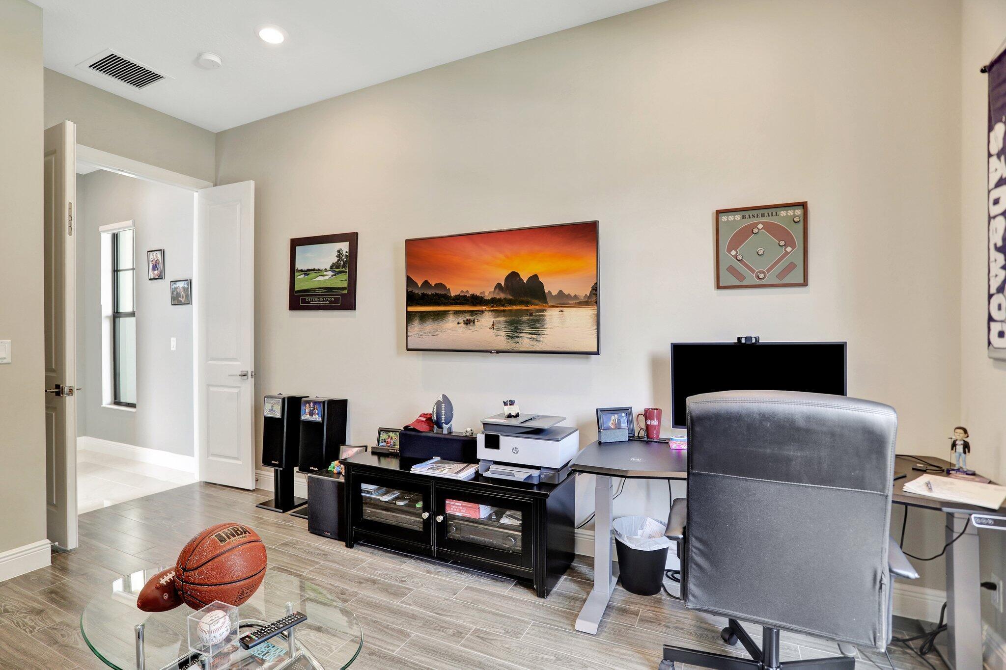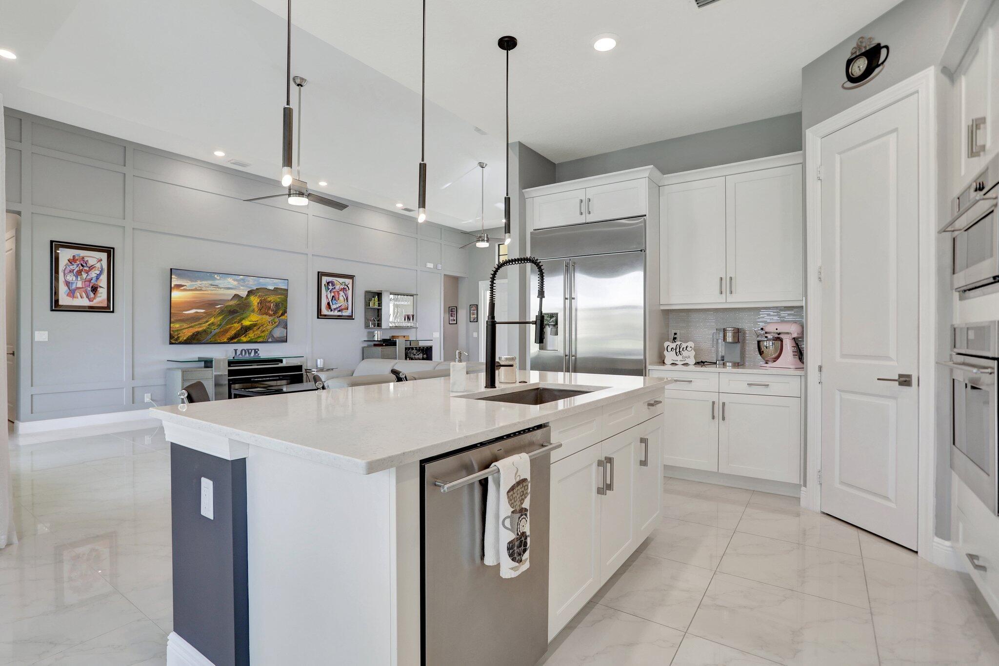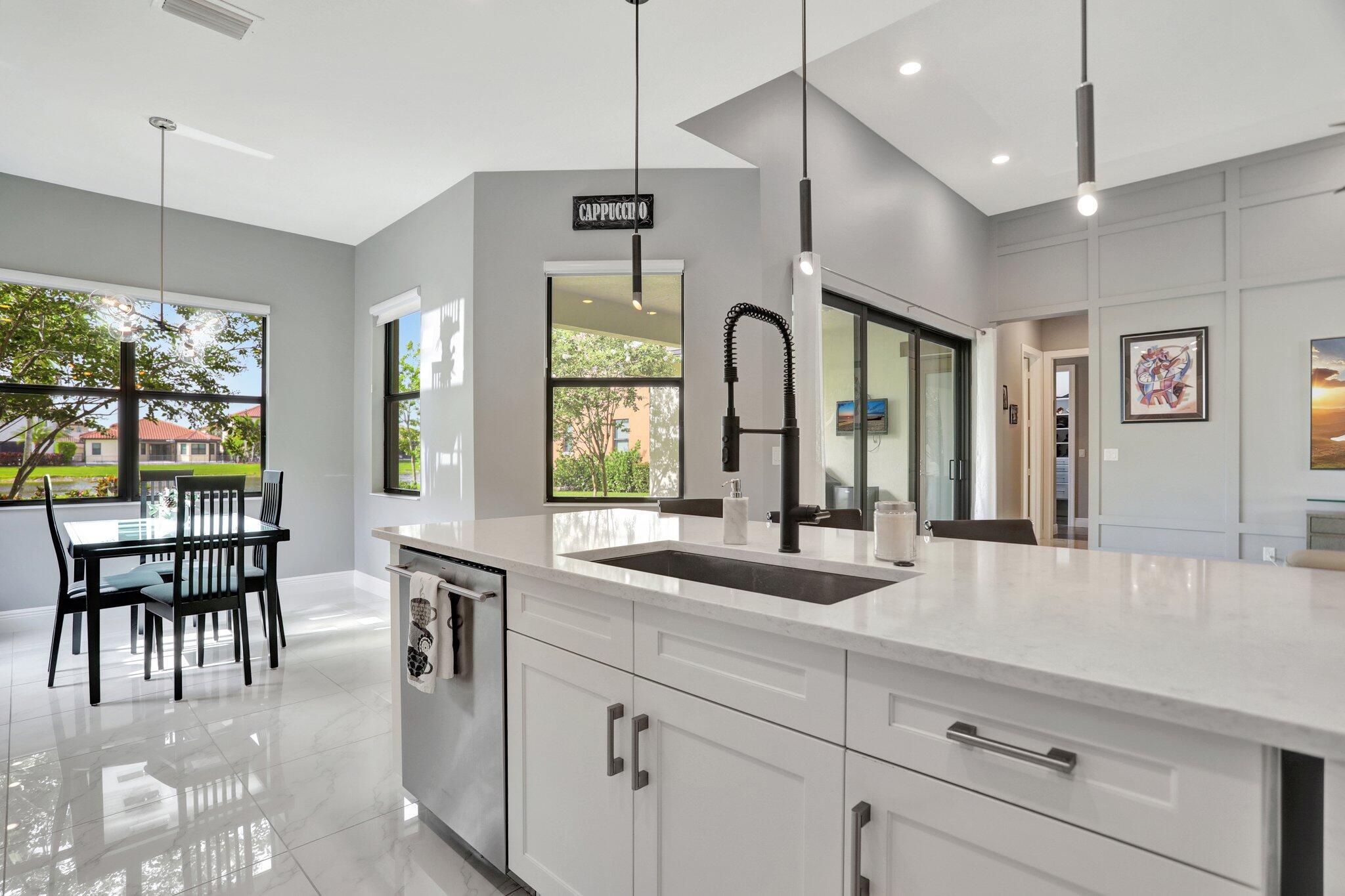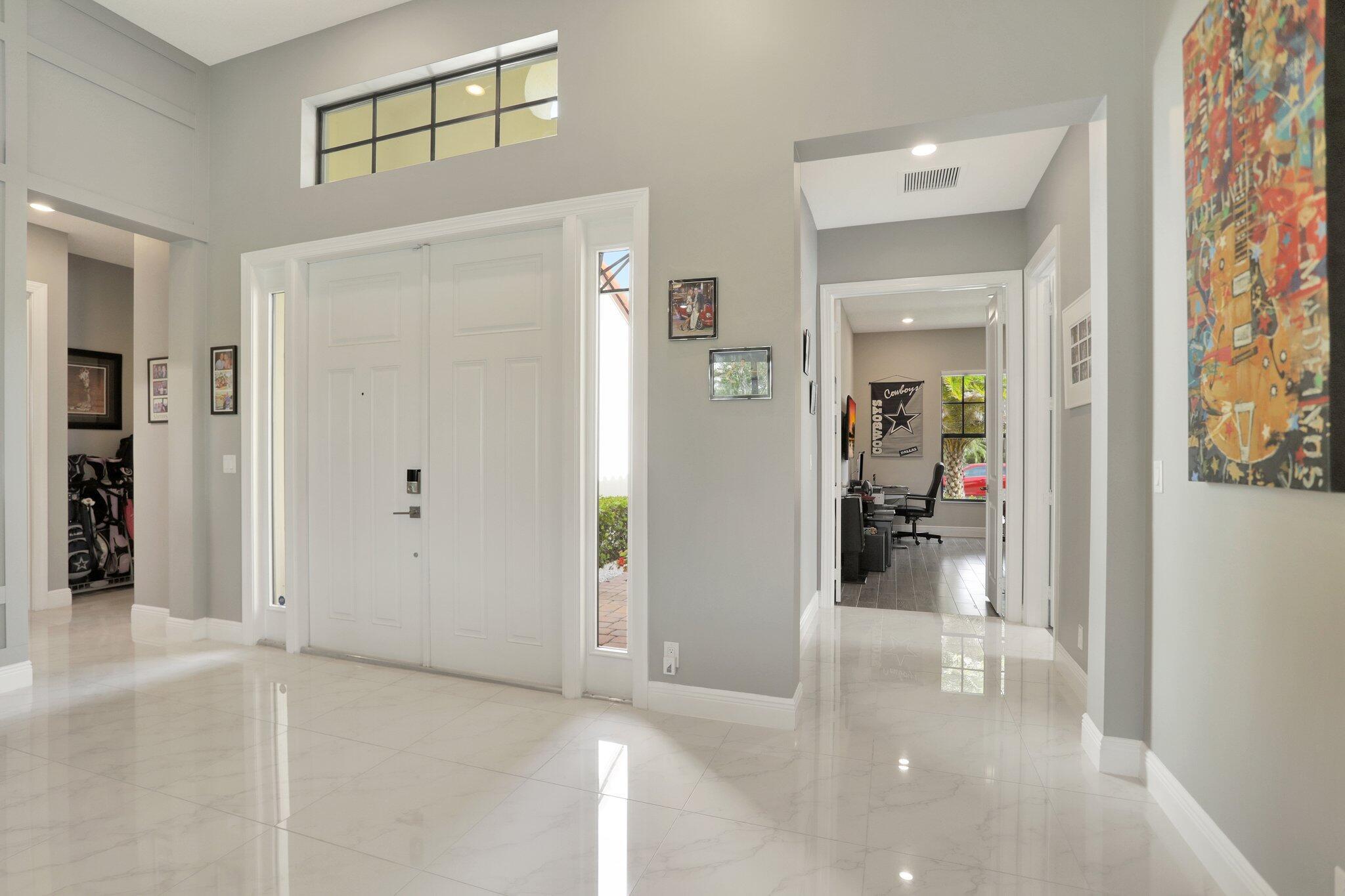 Discover this stunning single-story lakefront home in the gated community of Parkland Bay, nestled on an oversized lot in a peaceful cul-de-sac. This beautifully maintained residence features 3 to 4 bedrooms, 3.5 baths, and a home office/study. The chef-inspired gourmet kitchen boasts upgraded monogram appliances, quartz countertops, and premium cabinetry. The expansive great room (17x32) impresses with vaulted tray ceilings and a decorative wall.Additional highlights include fresh paint throughout, 24''x24'' Palidino tile, a primary bedroom with tray ceiling and custom his-and-her closets, a top-rated Carrier HVAC system, tankless hot water heater, and hurricane impact windows and doors.