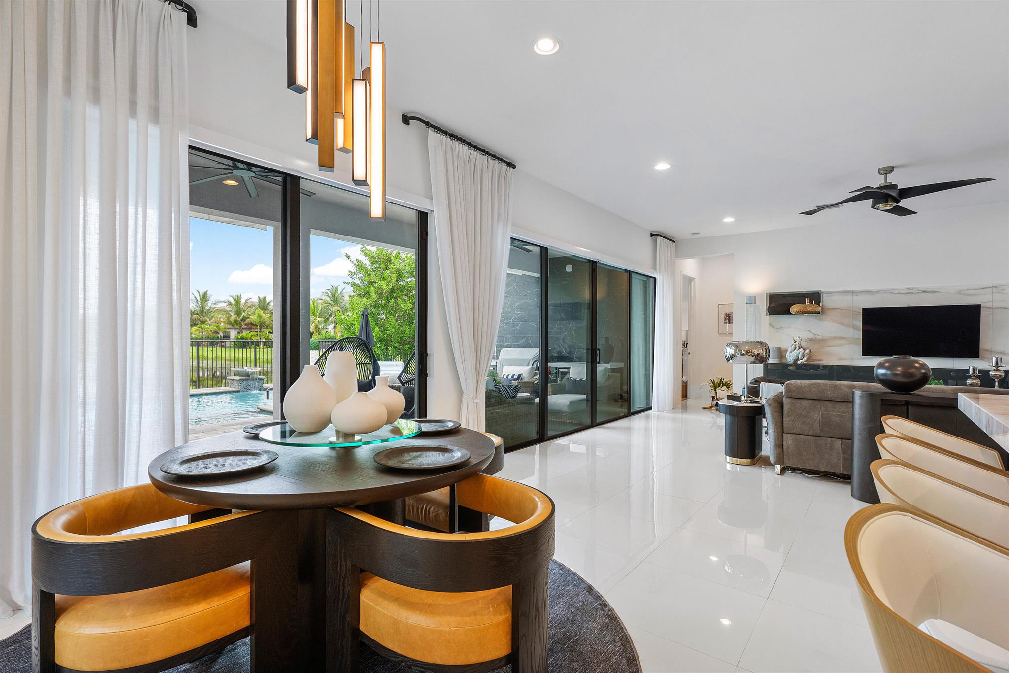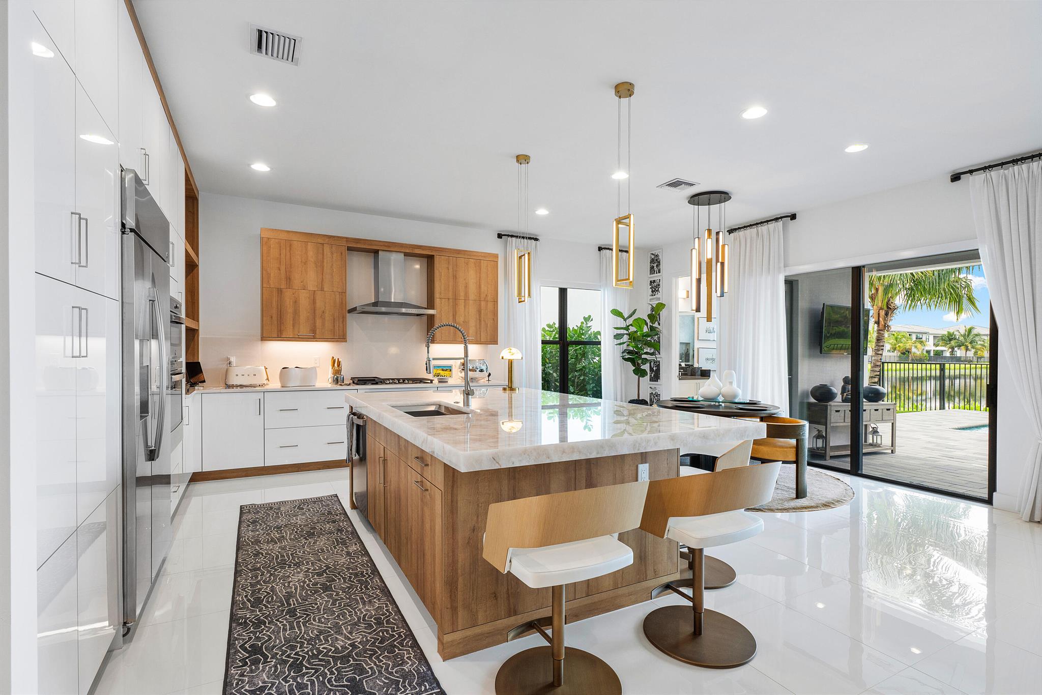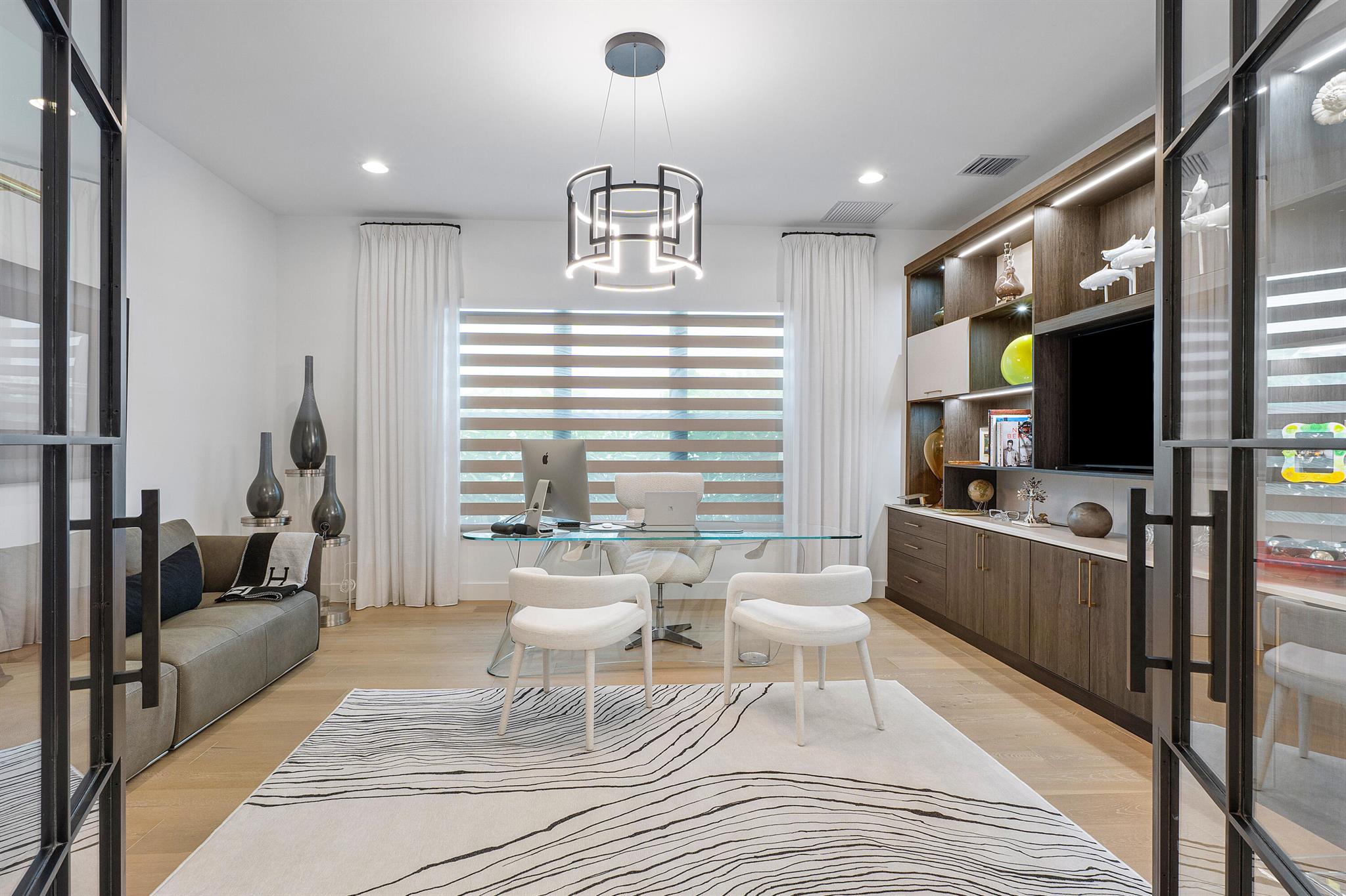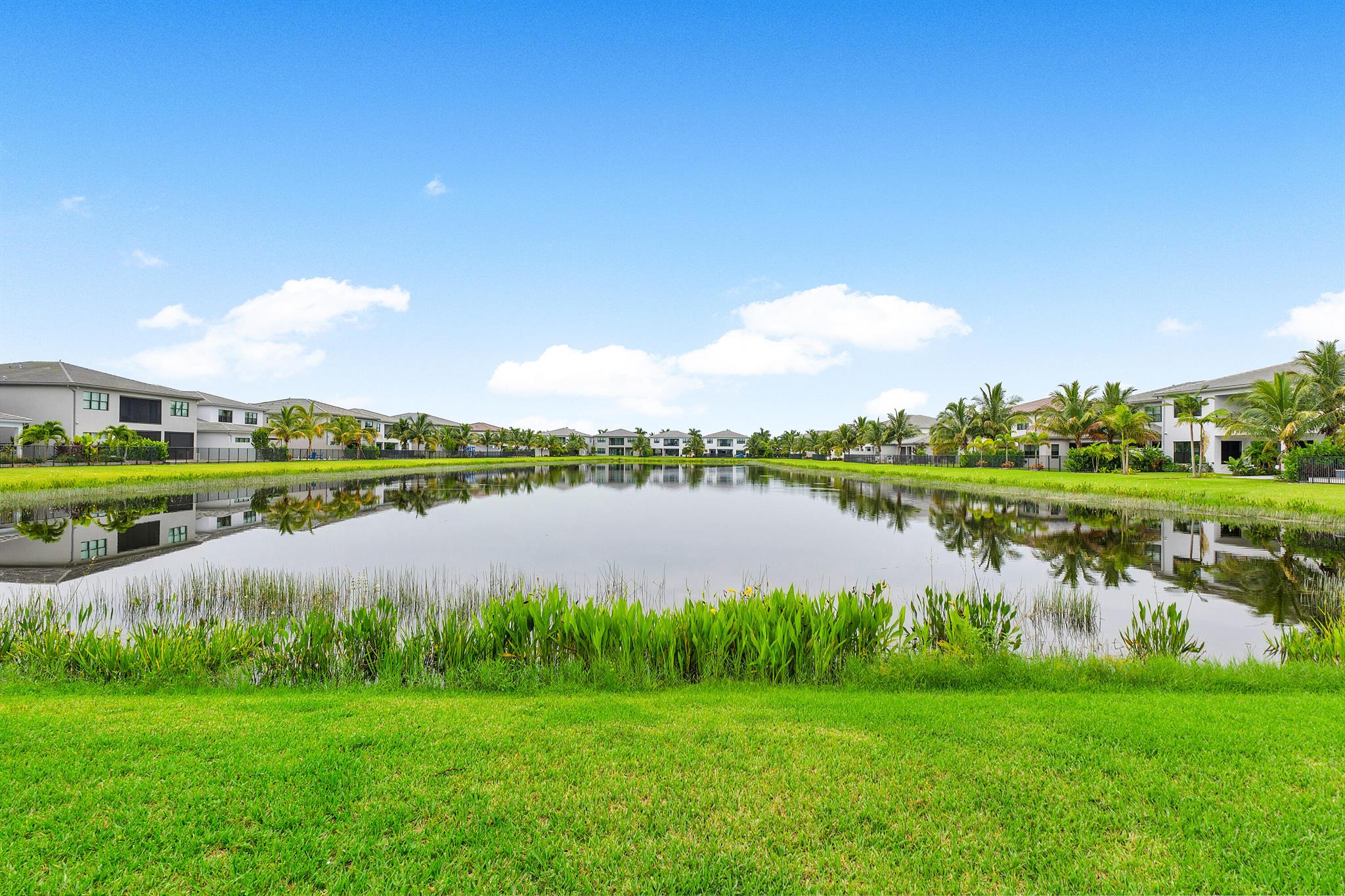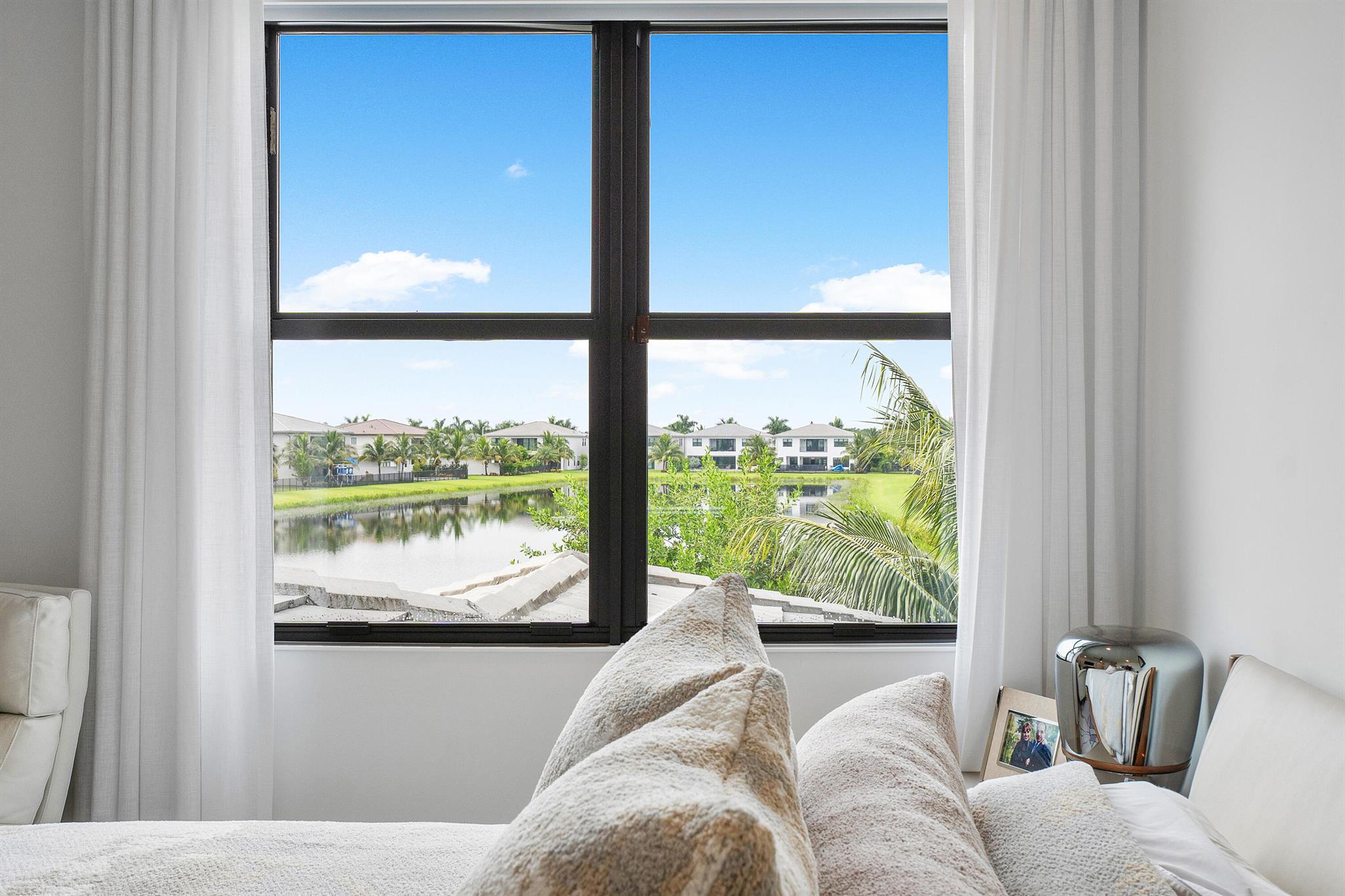 Discover the epitome of luxury living in this custom-built Lotus residence with a long lake view! This Lotus Sumatra Model is completely upgraded offering spacious and elegant living areas, designed for both comfort, yet exuding sophistication. From the split three-car garage, you'll enter the grand foyer, which features a two-story space, complete with modern chandeliers, and a piano. Behind the crystalia doors, a completely built out office is a stylish retreat. The living room and kitchen overlook the sparkling heated pool and spa, with deep views of the lake, and tropical landscaping. The first-floor primary suite features custom window treatments, a spa inspired bath with jetted shower and floating tub. Upstairs, you'll find four additional bedrooms, each with a private bath