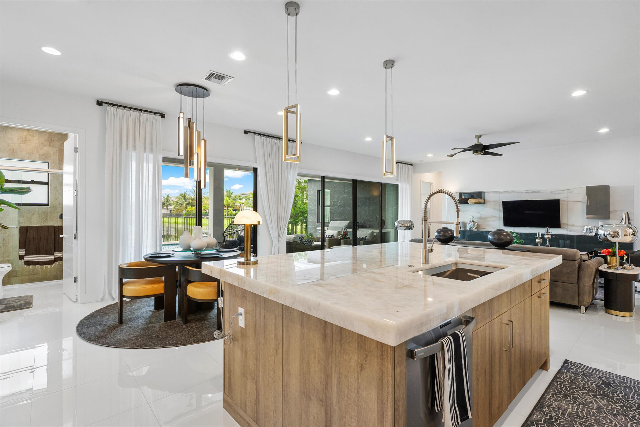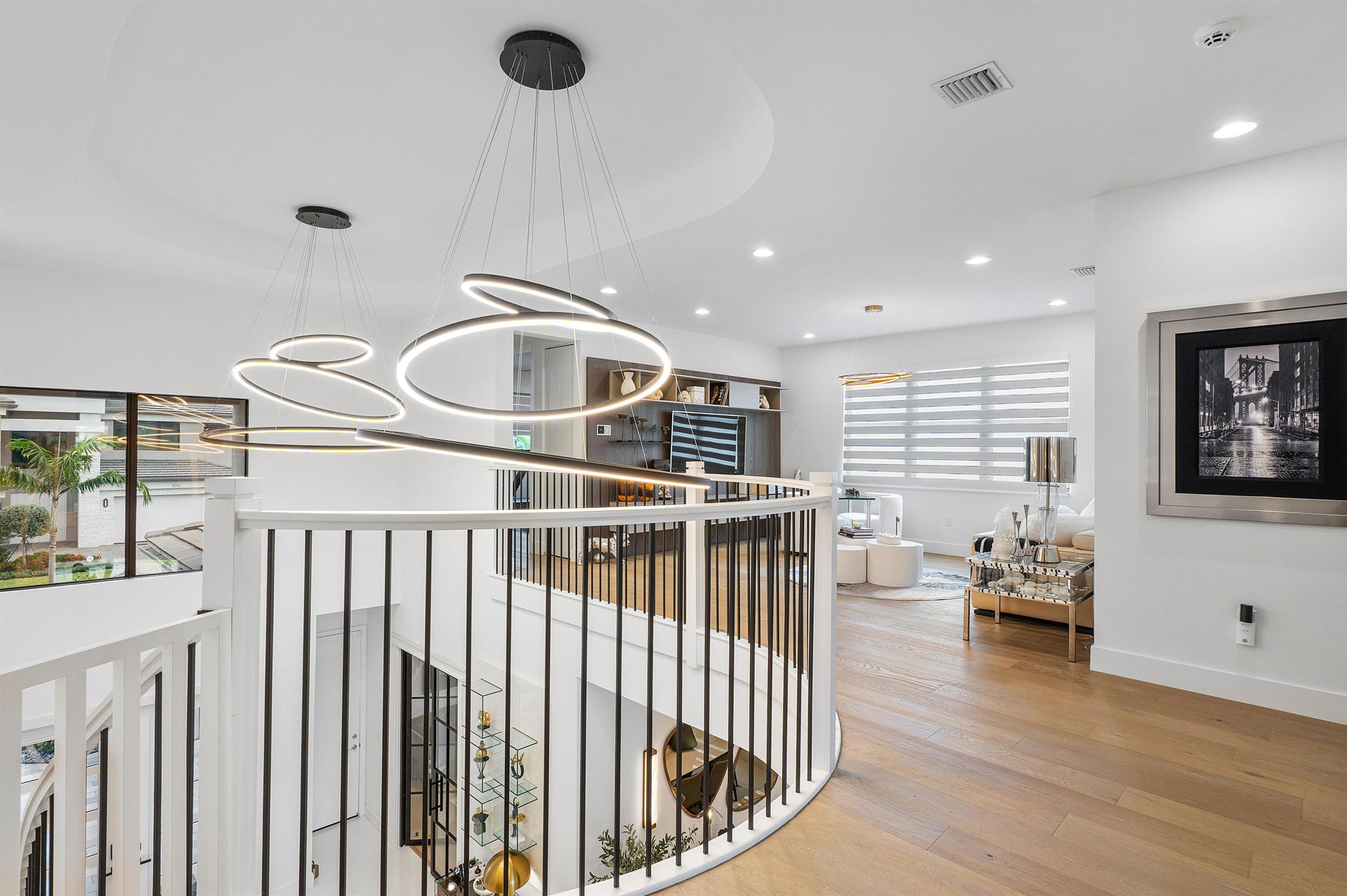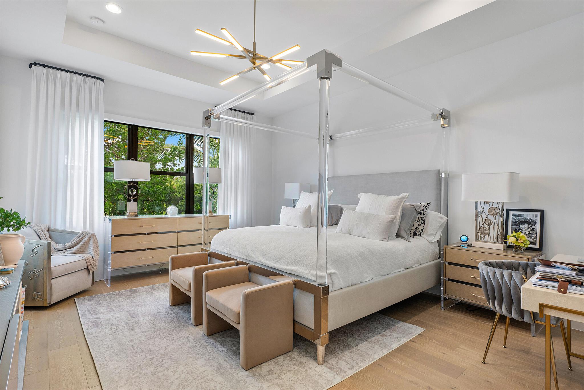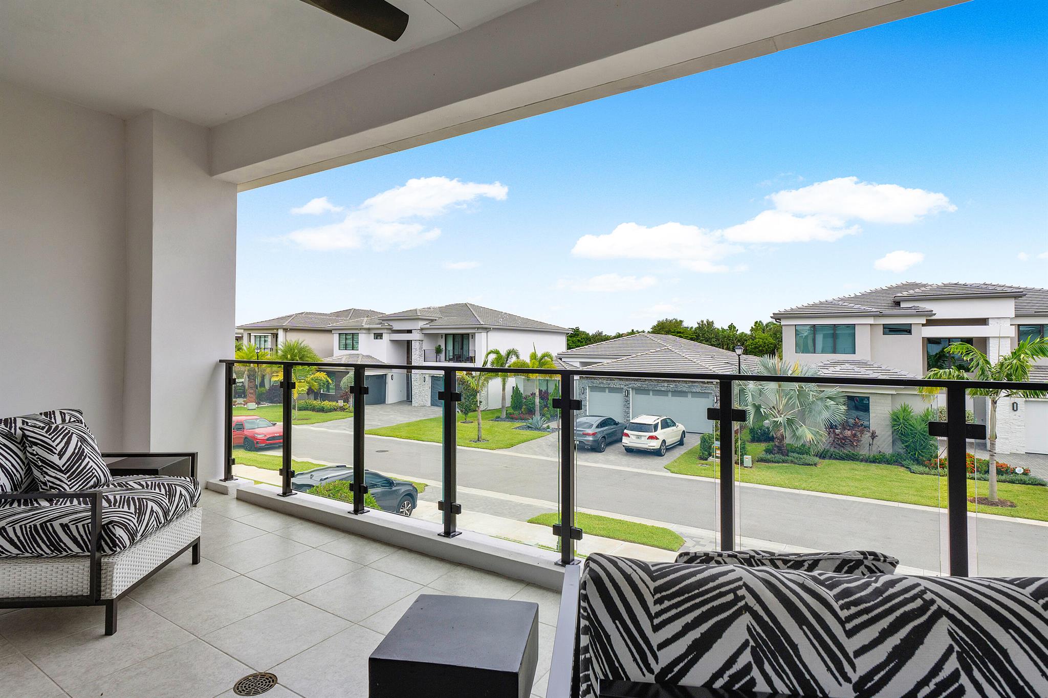 Discover the epitome of luxury living in this custom-built Lotus residence with a long lake view! This Lotus Sumatra Model is completely upgraded offering spacious and elegant living areas, designed for both comfort, yet exuding sophistication. From the split three-car garage, you'll enter the grand foyer, which features a two-story space, complete with modern chandeliers, and a piano. Behind the crystalia doors, a completely built out office is a stylish retreat. The living room and kitchen overlook the sparkling heated pool and spa, with deep views of the lake, and tropical landscaping. The first-floor primary suite features custom window treatments, a spa inspired bath with jetted shower and floating tub. Upstairs, you'll find four additional bedrooms, each with a private bath