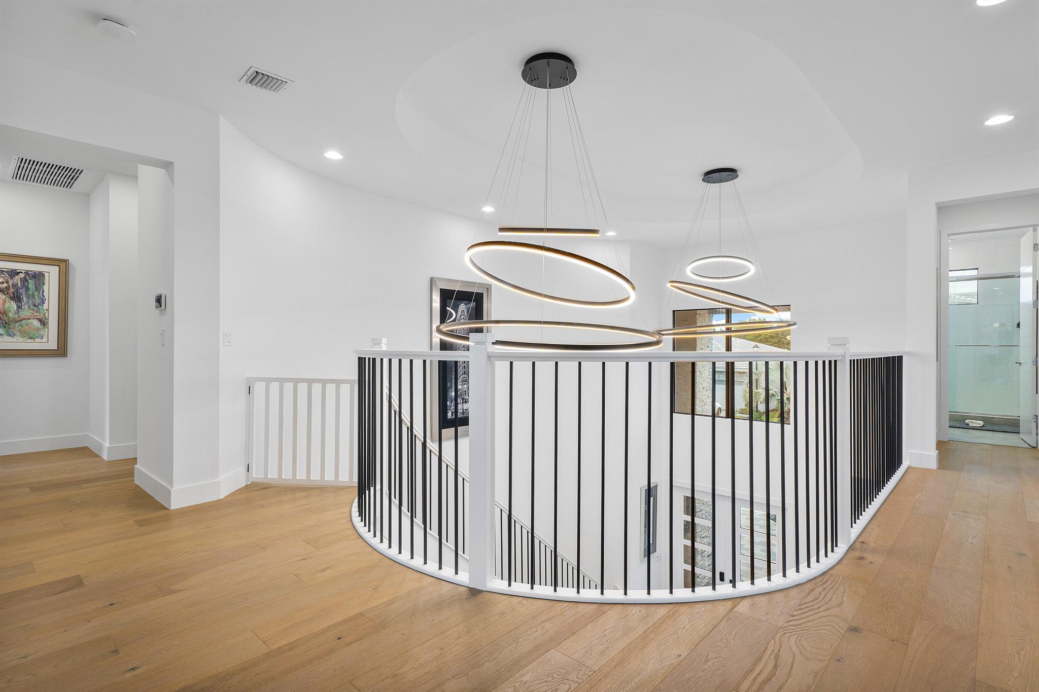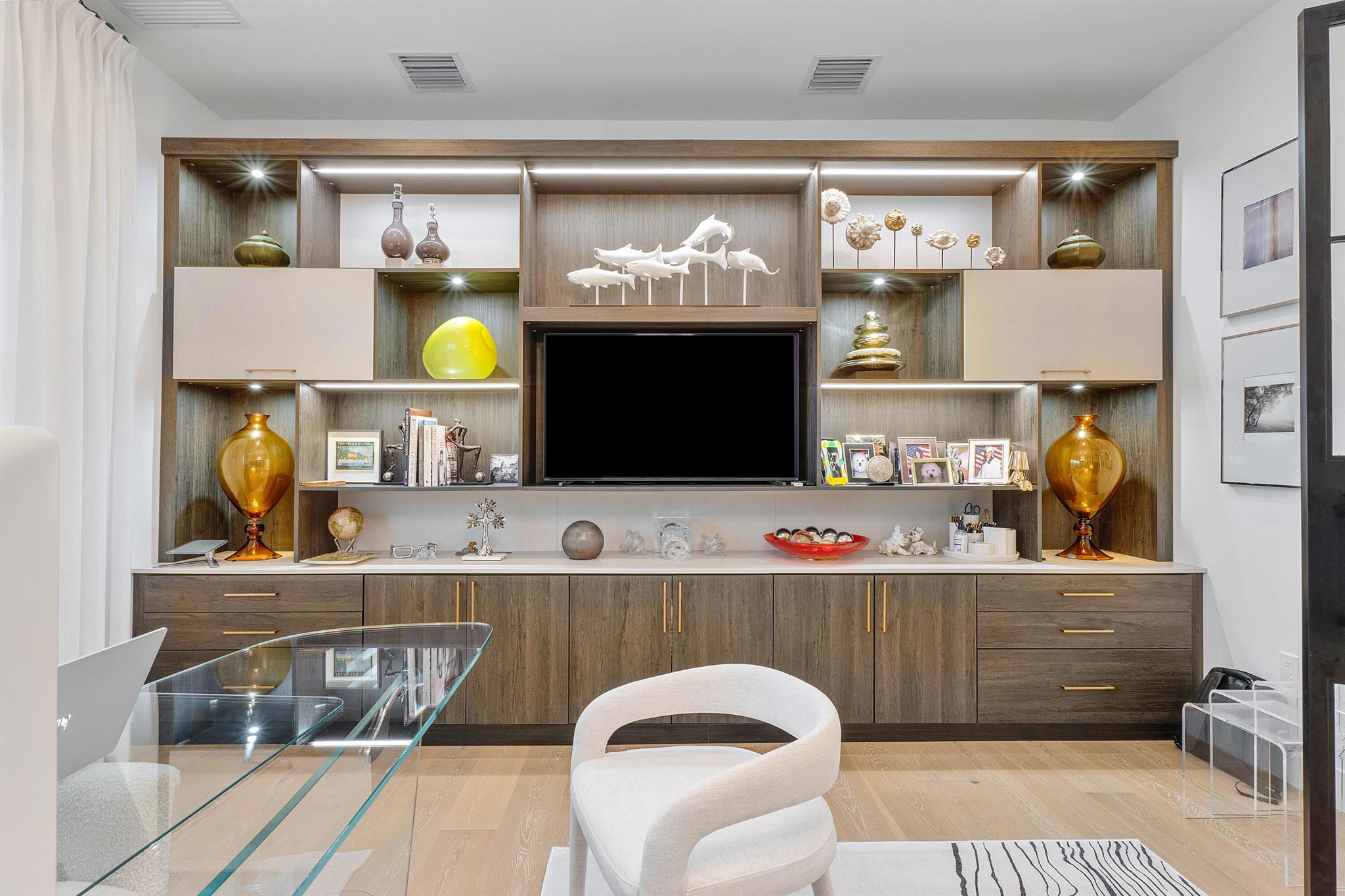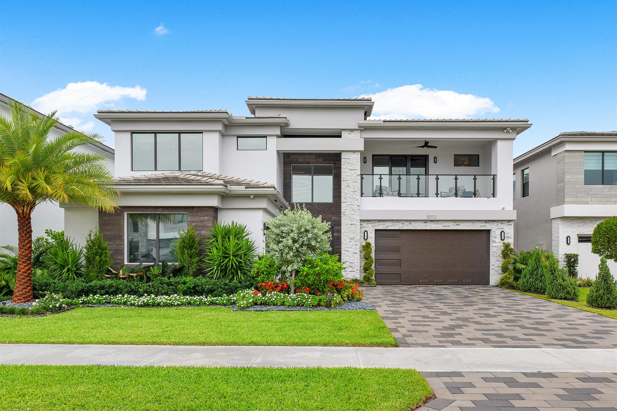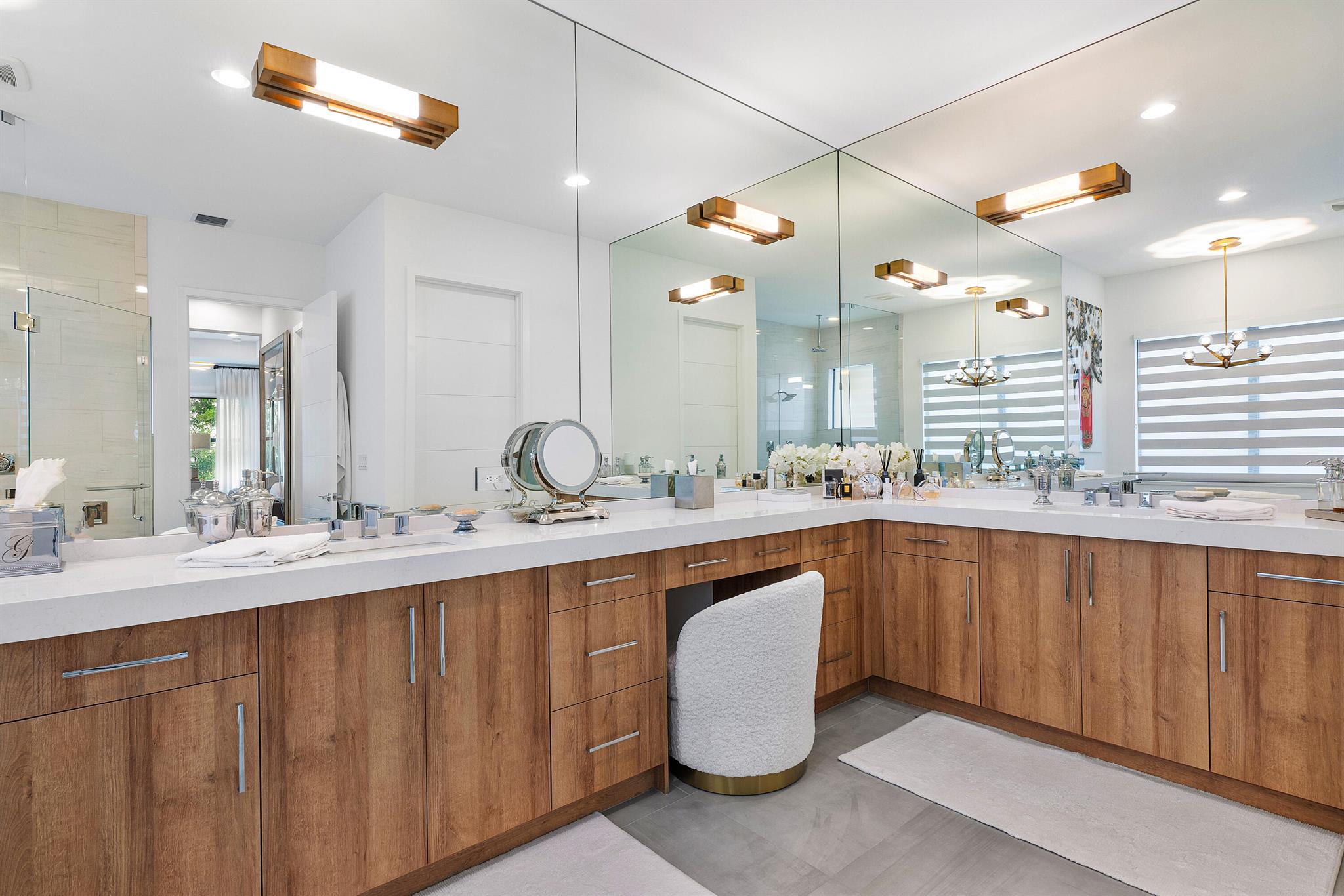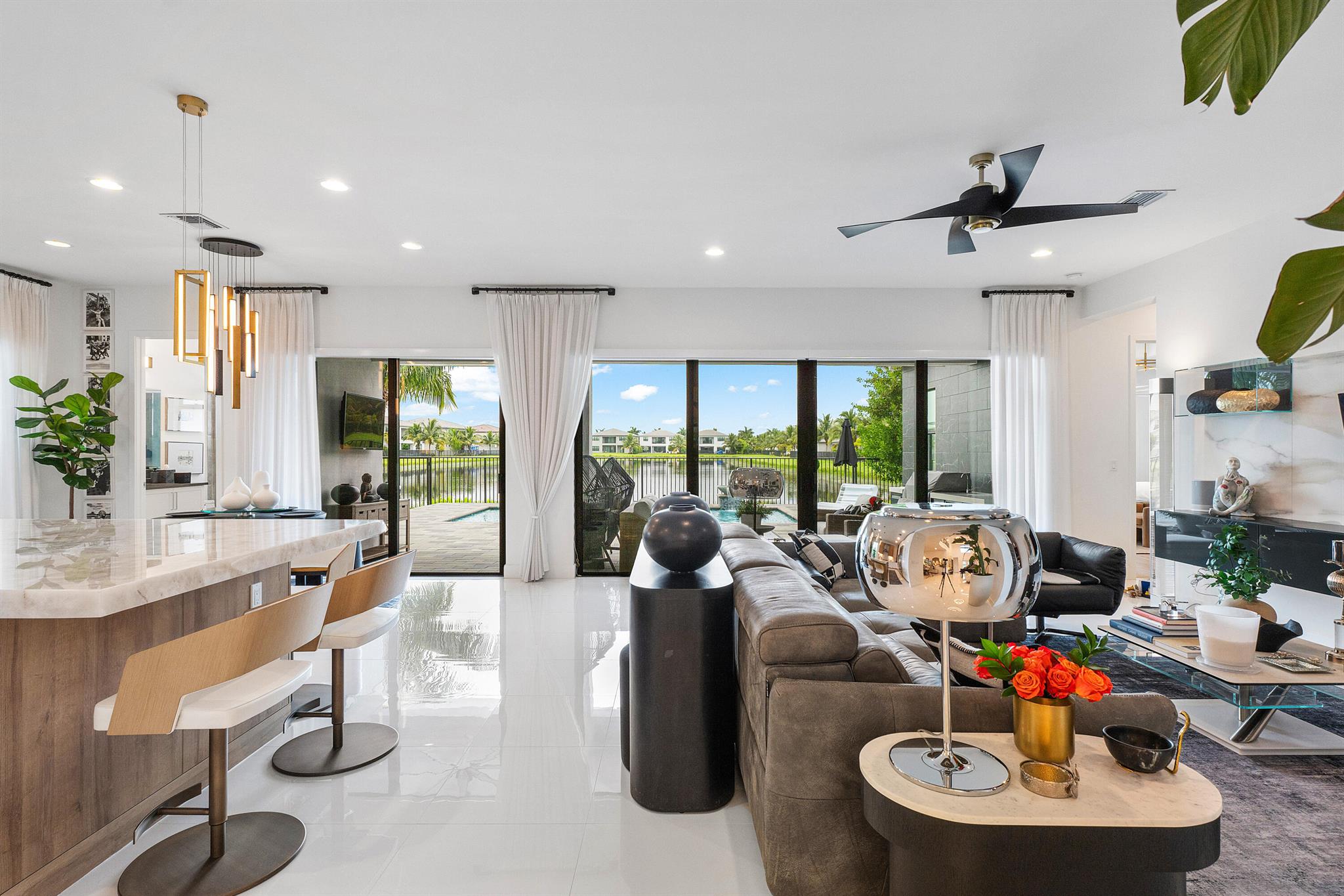 Discover the epitome of luxury living in this custom-built Lotus residence with a long lake view! This Lotus Sumatra Model is completely upgraded offering spacious and elegant living areas, designed for both comfort, yet exuding sophistication. From the split three-car garage, you'll enter the grand foyer, which features a two-story space, complete with modern chandeliers, and a piano. Behind the crystalia doors, a completely built out office is a stylish retreat. The living room and kitchen overlook the sparkling heated pool and spa, with deep views of the lake, and tropical landscaping. The first-floor primary suite features custom window treatments, a spa inspired bath with jetted shower and floating tub. Upstairs, you'll find four additional bedrooms, each with a private bath