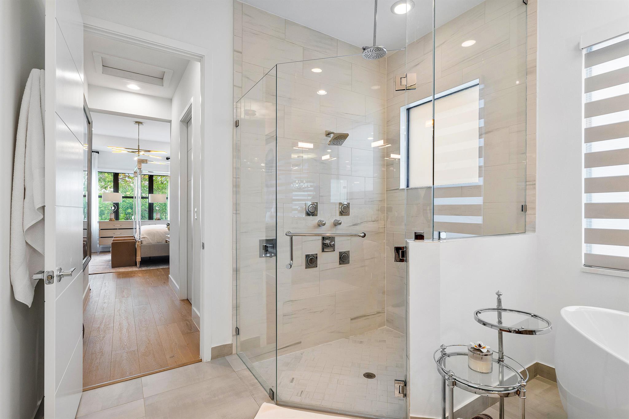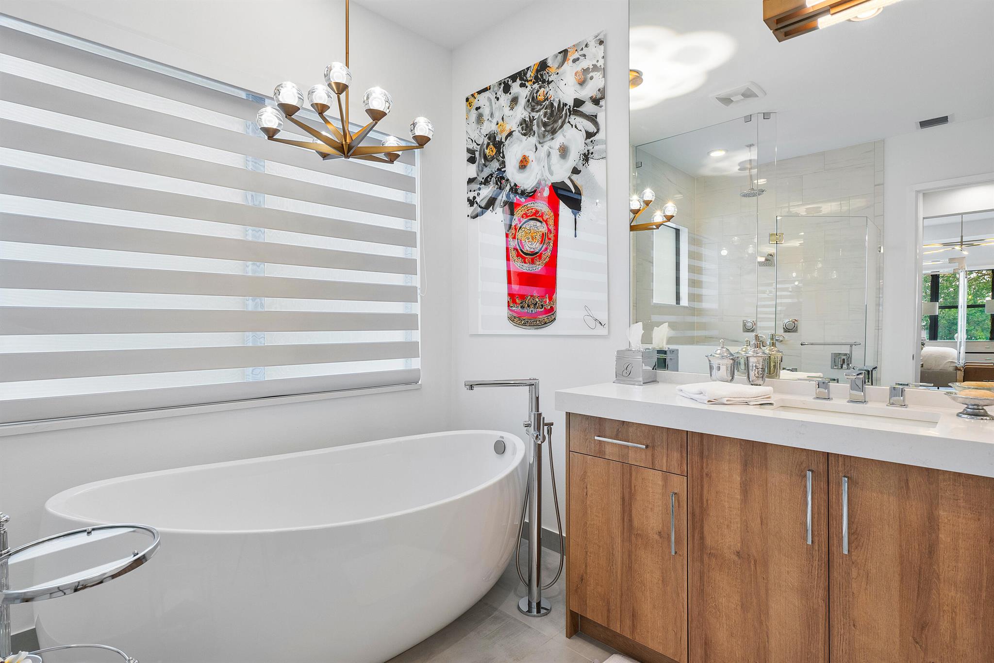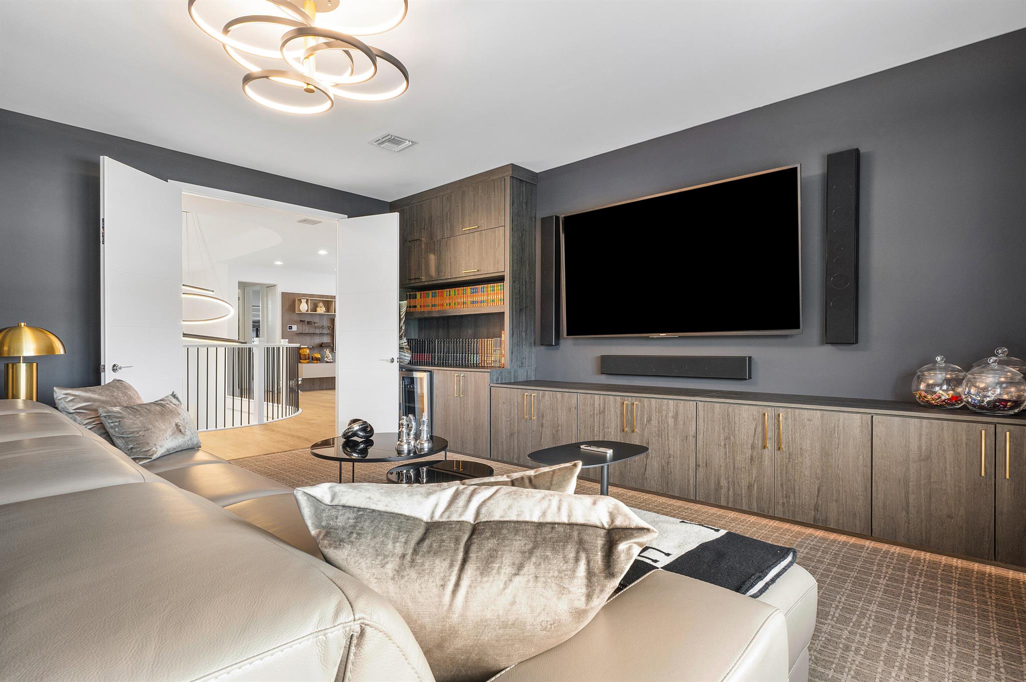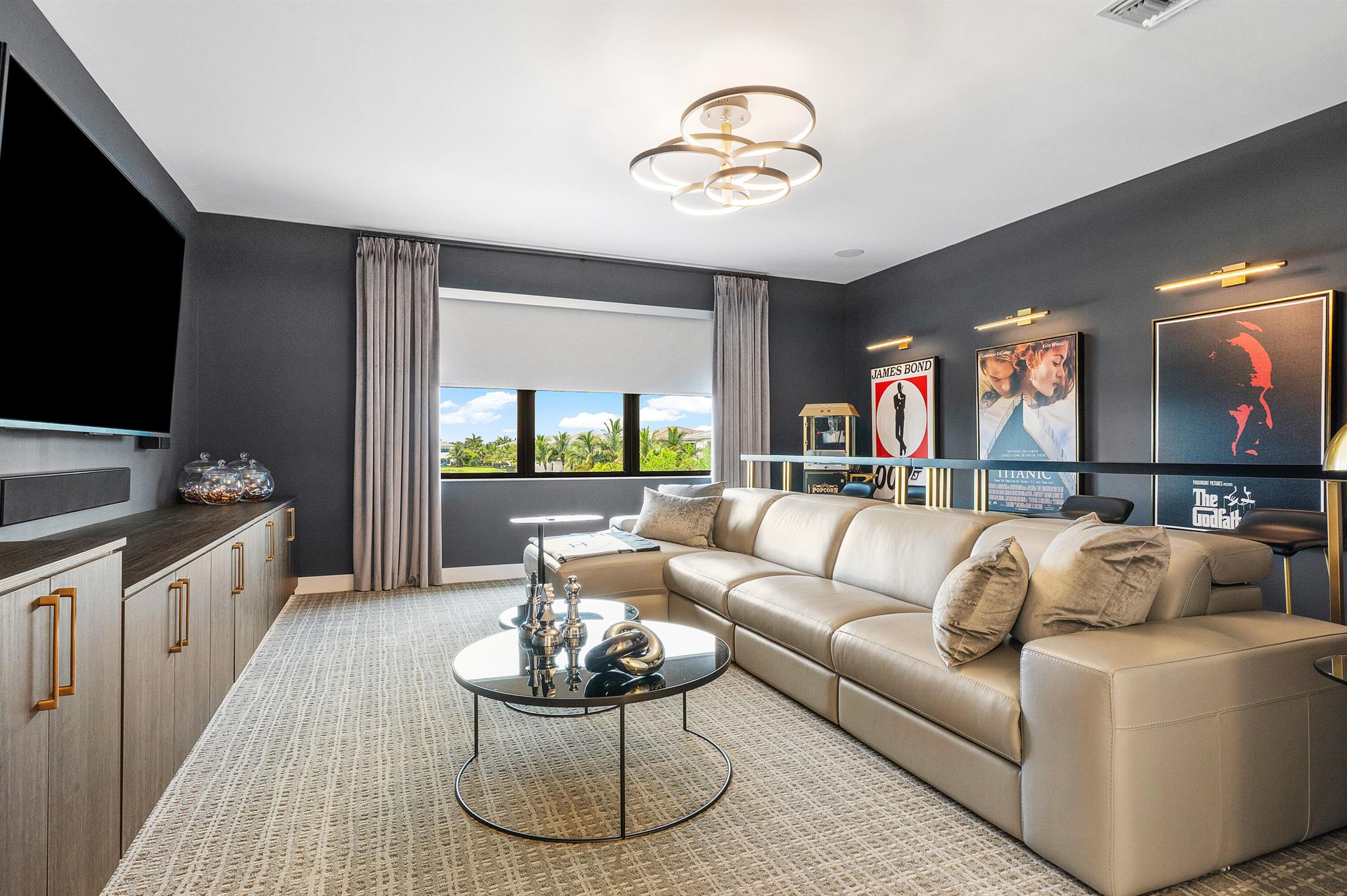 Discover the epitome of luxury living in this custom-built Lotus residence with a long lake view! This Lotus Sumatra Model is completely upgraded offering spacious and elegant living areas, designed for both comfort, yet exuding sophistication. From the split three-car garage, you'll enter the grand foyer, which features a two-story space, complete with modern chandeliers, and a piano. Behind the crystalia doors, a completely built out office is a stylish retreat. The living room and kitchen overlook the sparkling heated pool and spa, with deep views of the lake, and tropical landscaping. The first-floor primary suite features custom window treatments, a spa inspired bath with jetted shower and floating tub. Upstairs, you'll find four additional bedrooms, each with a private bath