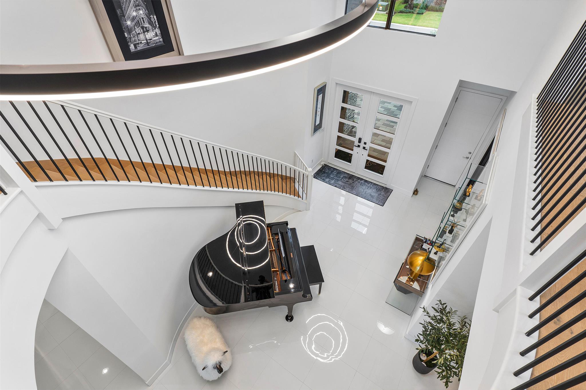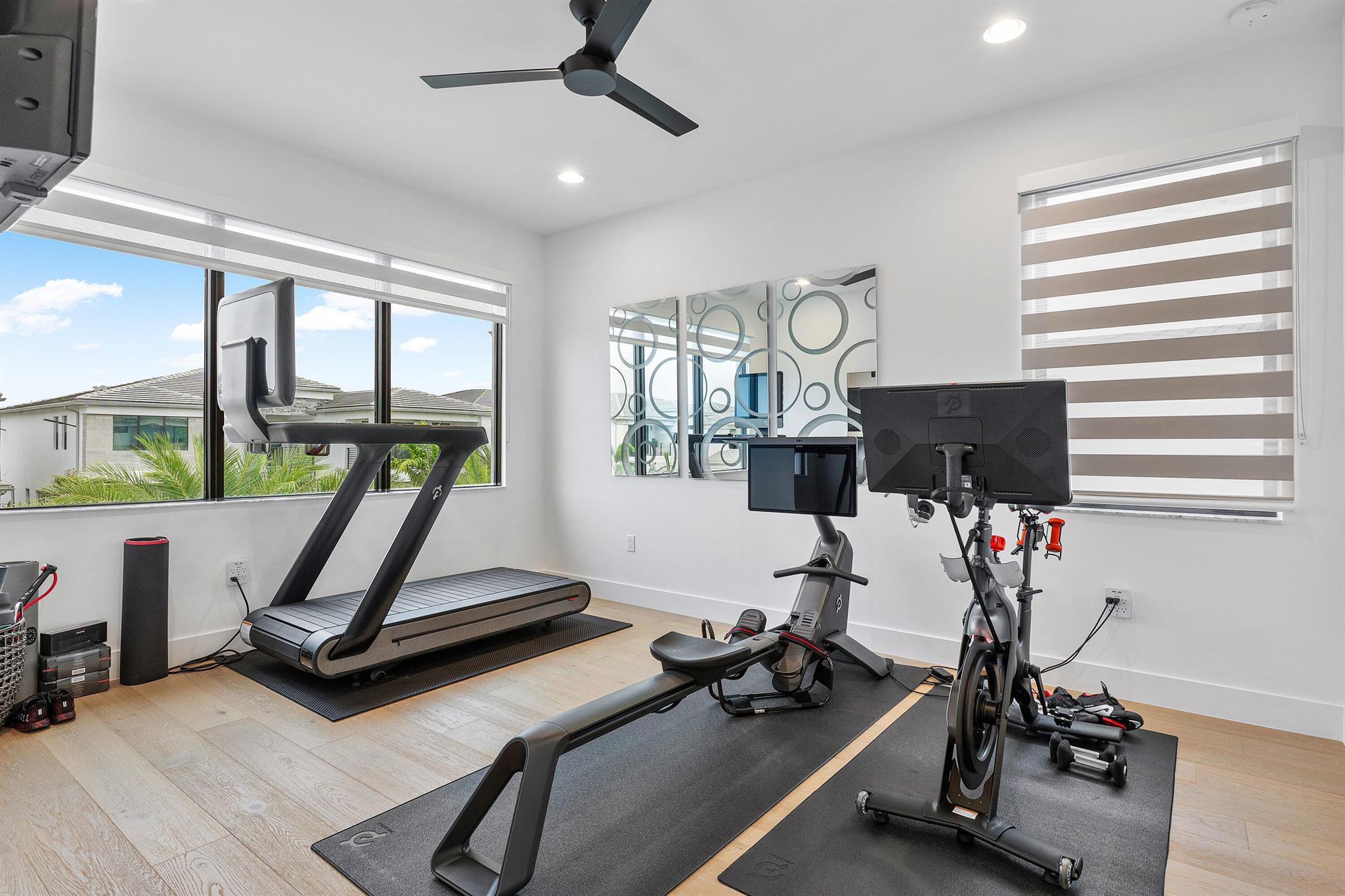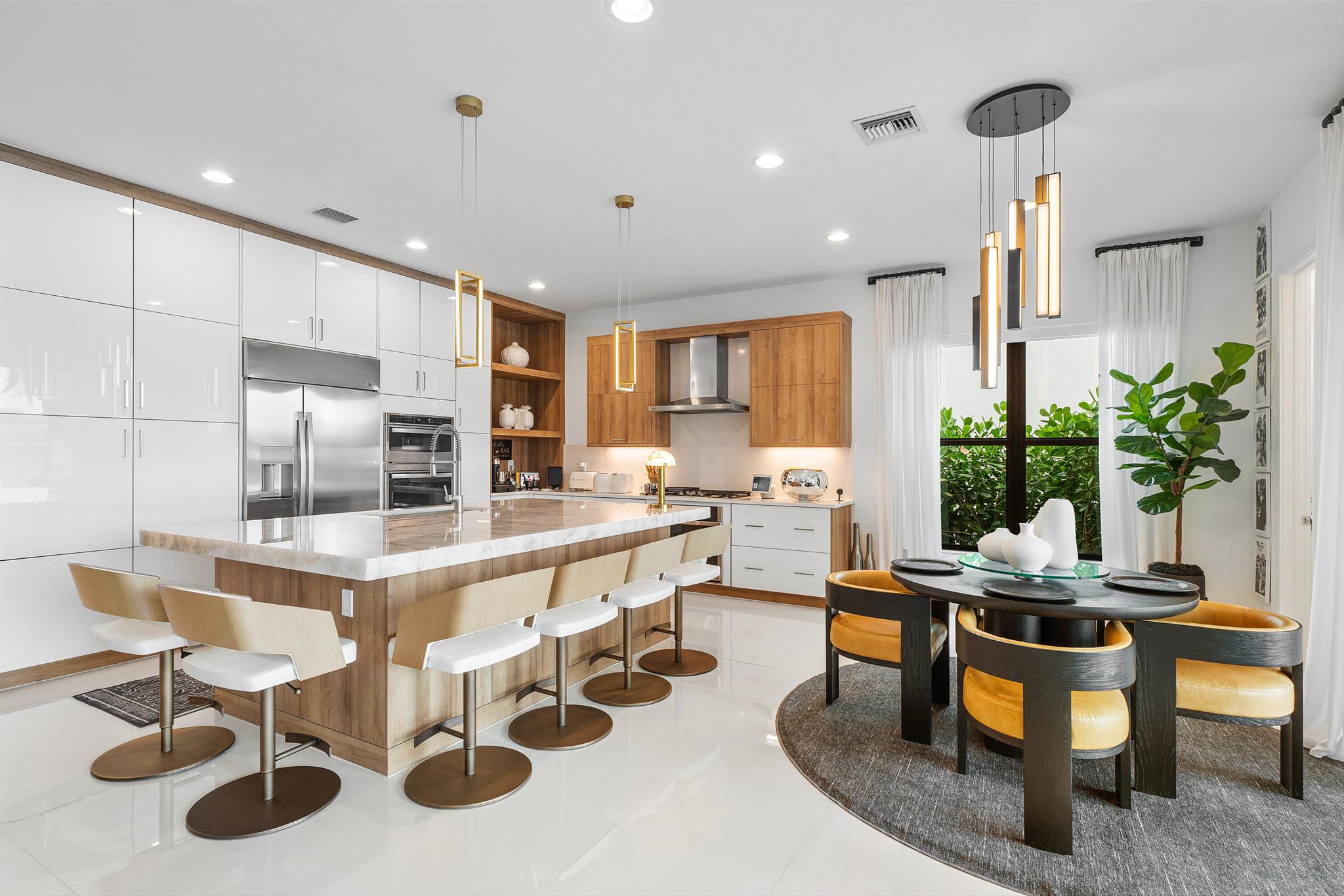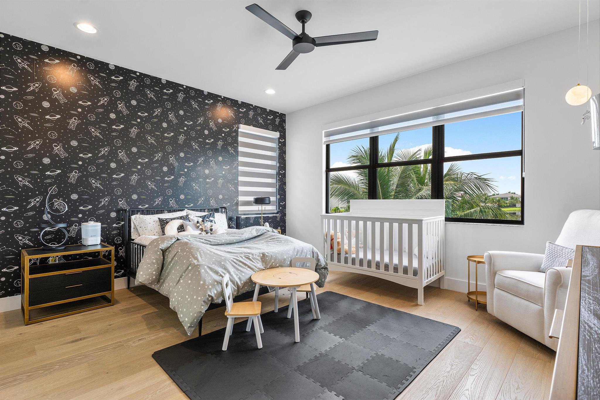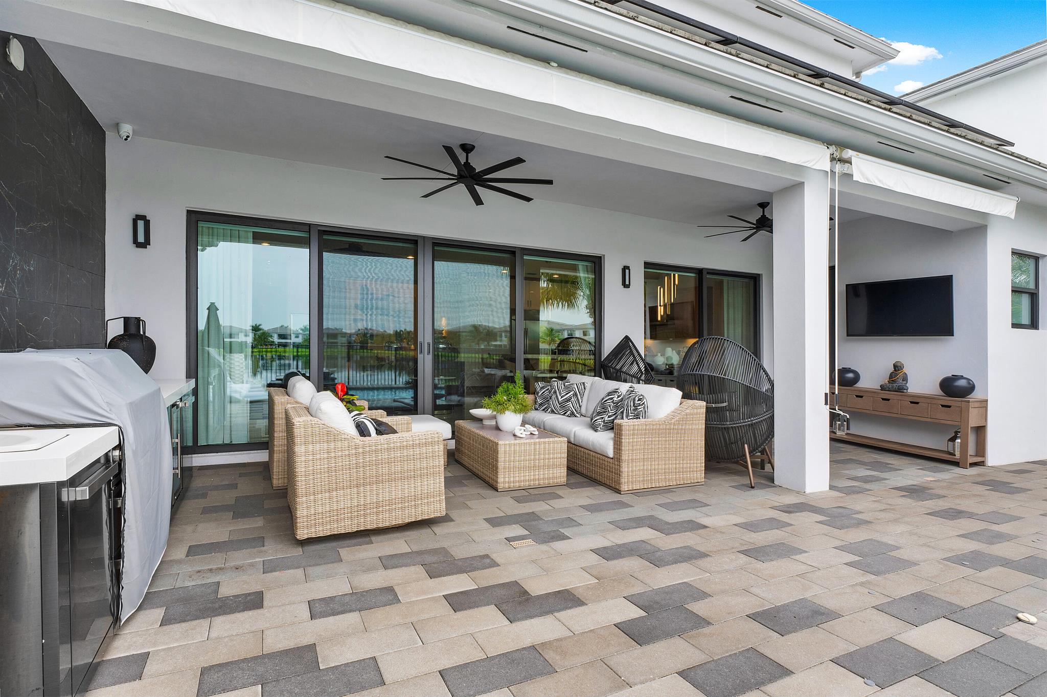 Discover the epitome of luxury living in this custom-built Lotus residence with a long lake view! This Lotus Sumatra Model is completely upgraded offering spacious and elegant living areas, designed for both comfort, yet exuding sophistication. From the split three-car garage, you'll enter the grand foyer, which features a two-story space, complete with modern chandeliers, and a piano. Behind the crystalia doors, a completely built out office is a stylish retreat. The living room and kitchen overlook the sparkling heated pool and spa, with deep views of the lake, and tropical landscaping. The first-floor primary suite features custom window treatments, a spa inspired bath with jetted shower and floating tub. Upstairs, you'll find four additional bedrooms, each with a private bath