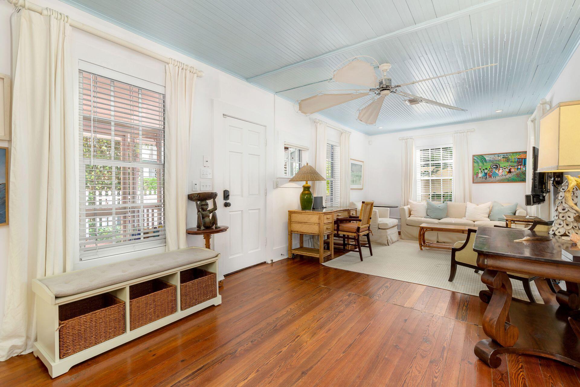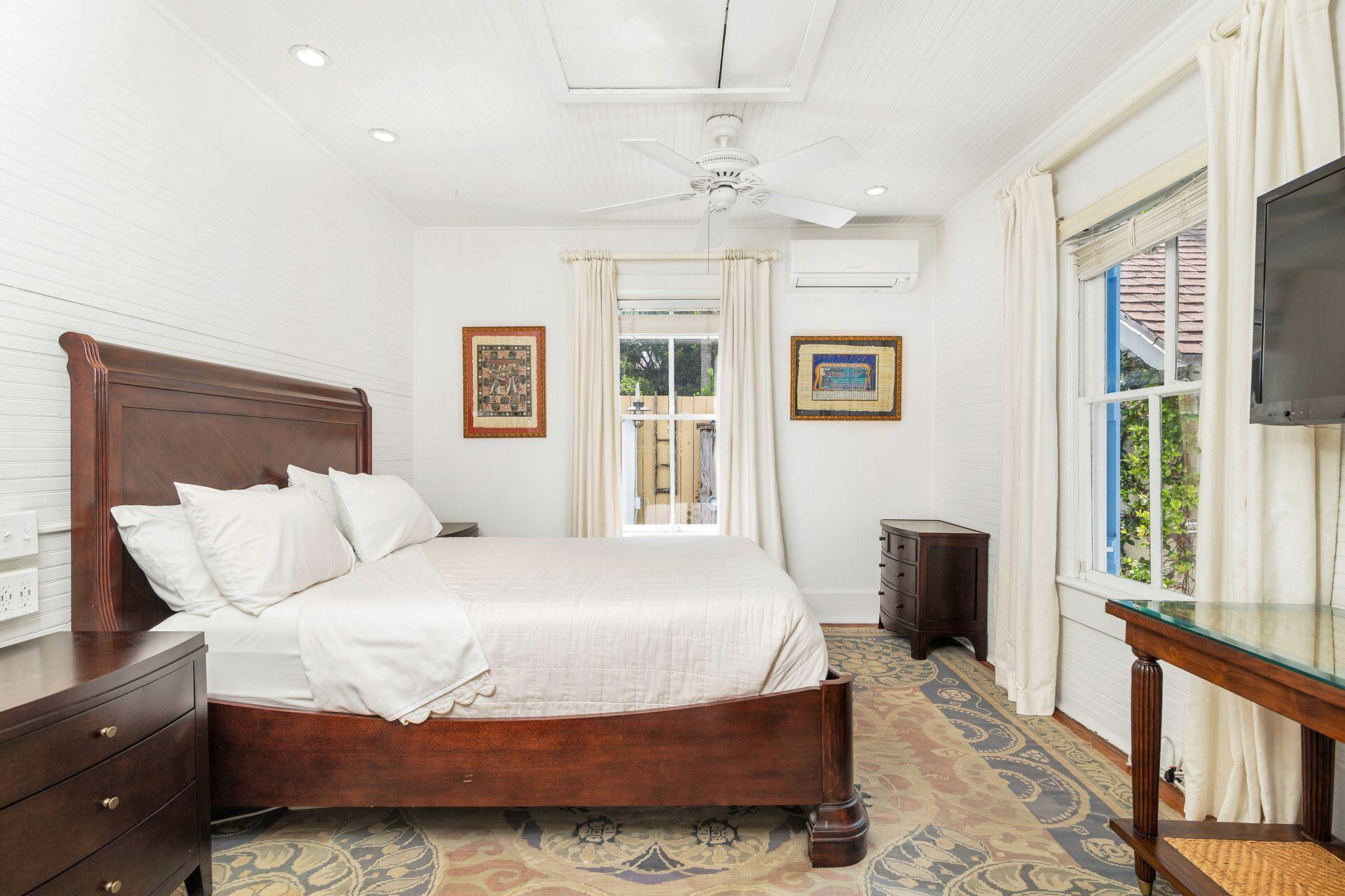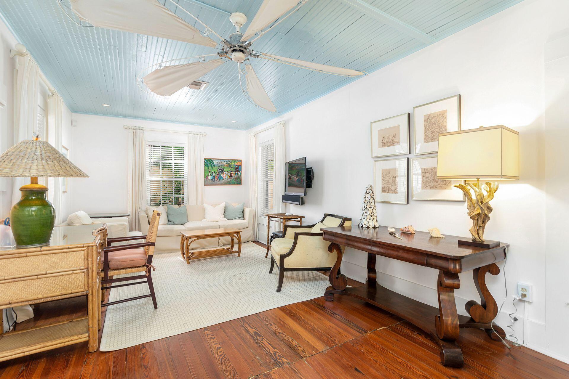 Welcome to this enchanting 1925 Key West bungalow, ideally located on the highly sought-after ocean block of Root Trail. This historic home, brimming with the unique charm the street is famous for, features 2 bedrooms and 2 baths in the main house, plus a detached studio with an additional bath. Inside, you'll find beautiful Dade County pine floors, and outside, a lush tropical patio with two outdoor showers perfect for island living. With off-street parking and nestled in the prime location on one of the most captivating streets on the island, this property truly is a one-of-a-kind piece of paradise.