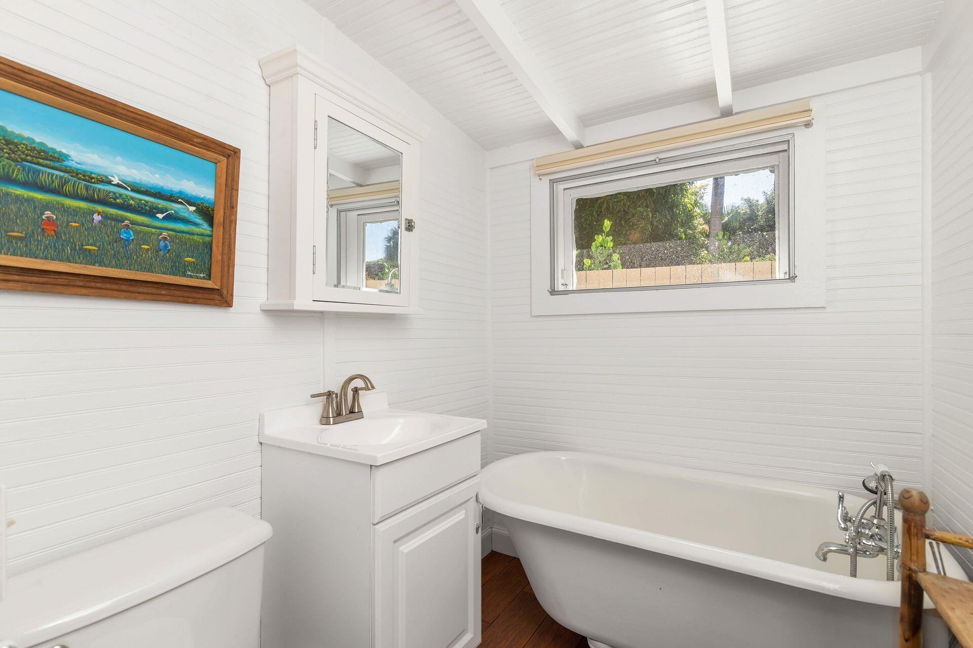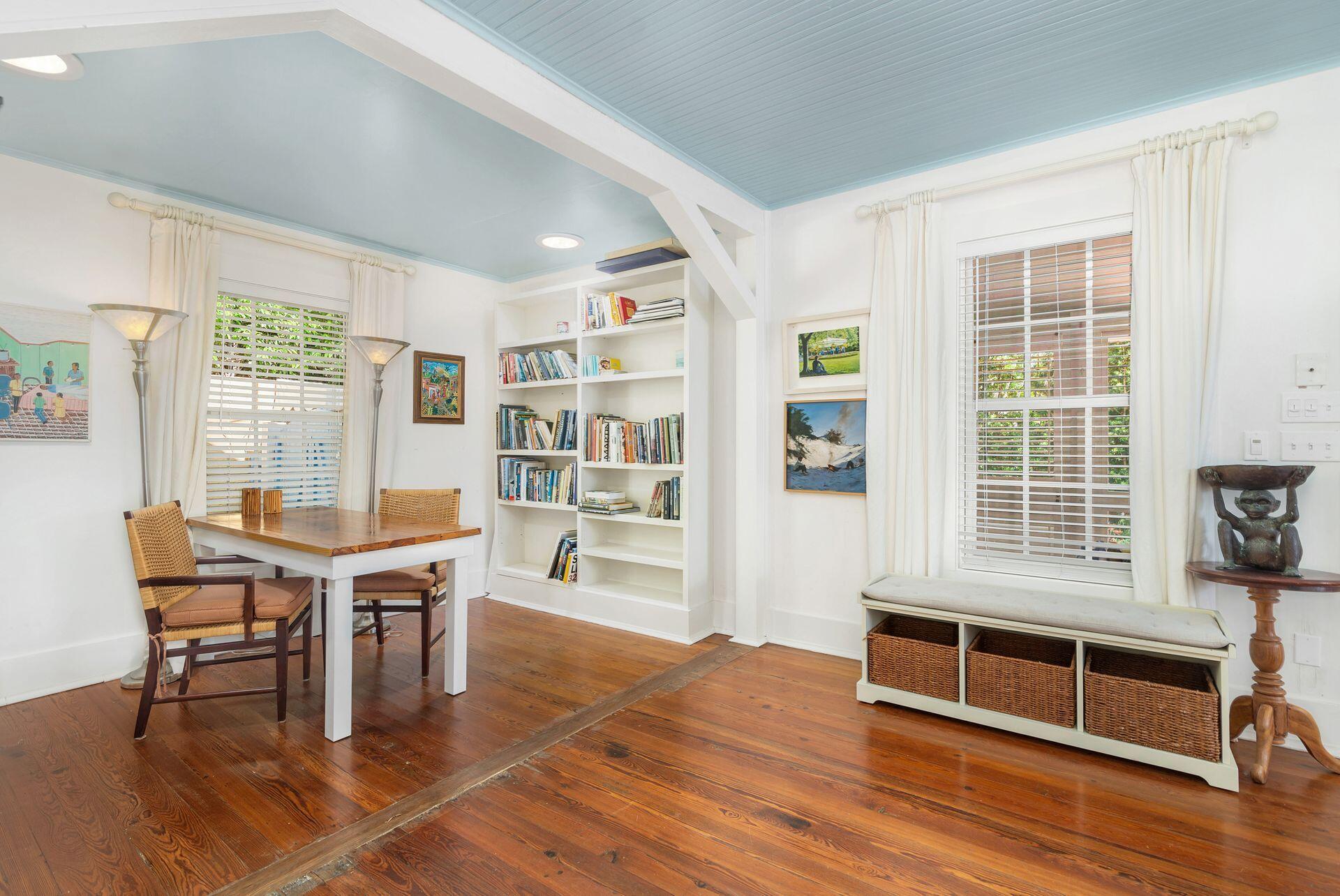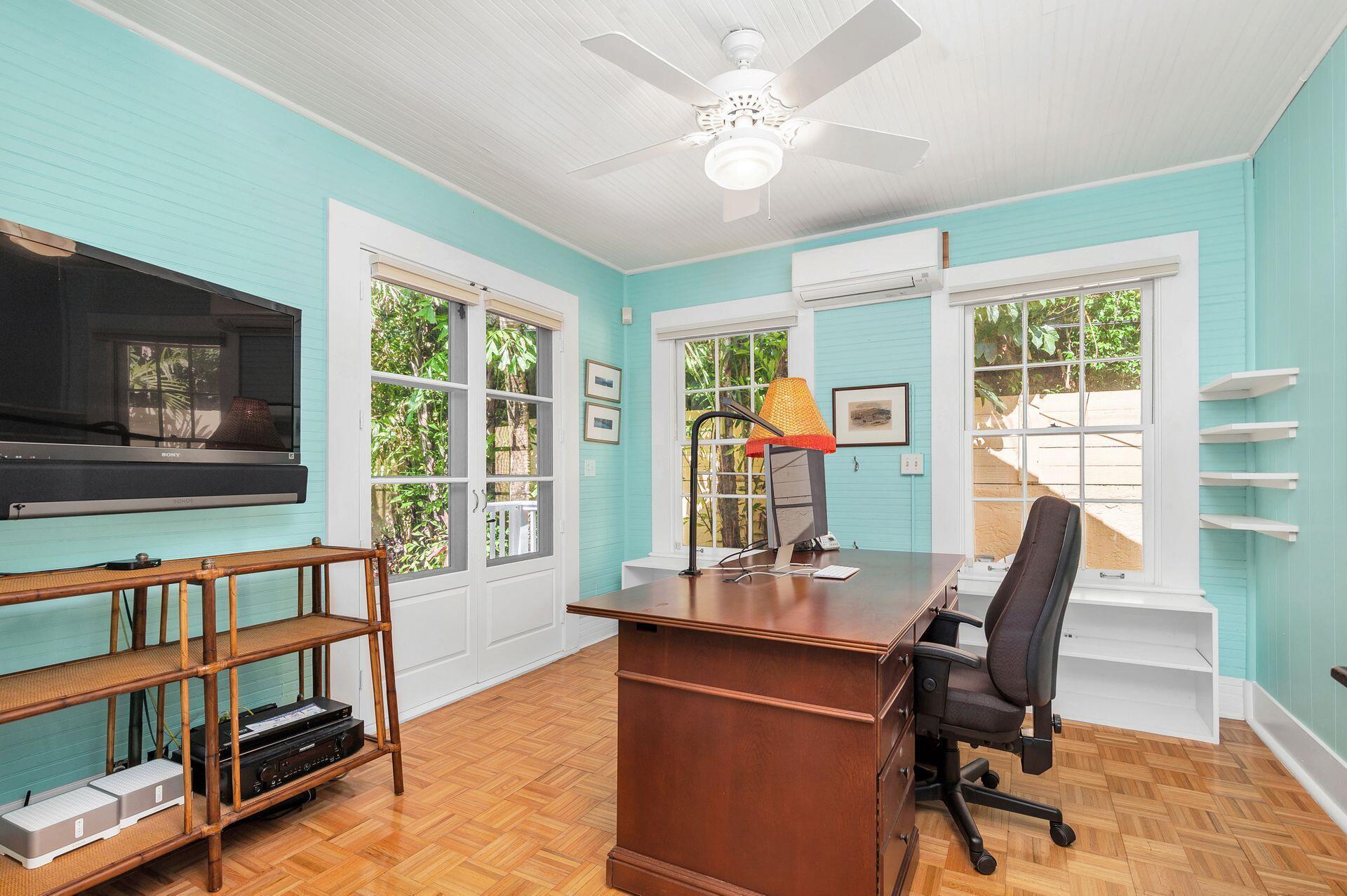 Welcome to this enchanting 1925 Key West bungalow, ideally located on the highly sought-after ocean block of Root Trail. This historic home, brimming with the unique charm the street is famous for, features 2 bedrooms and 2 baths in the main house, plus a detached studio with an additional bath. Inside, you'll find beautiful Dade County pine floors, and outside, a lush tropical patio with two outdoor showers perfect for island living. With off-street parking and nestled in the prime location on one of the most captivating streets on the island, this property truly is a one-of-a-kind piece of paradise.