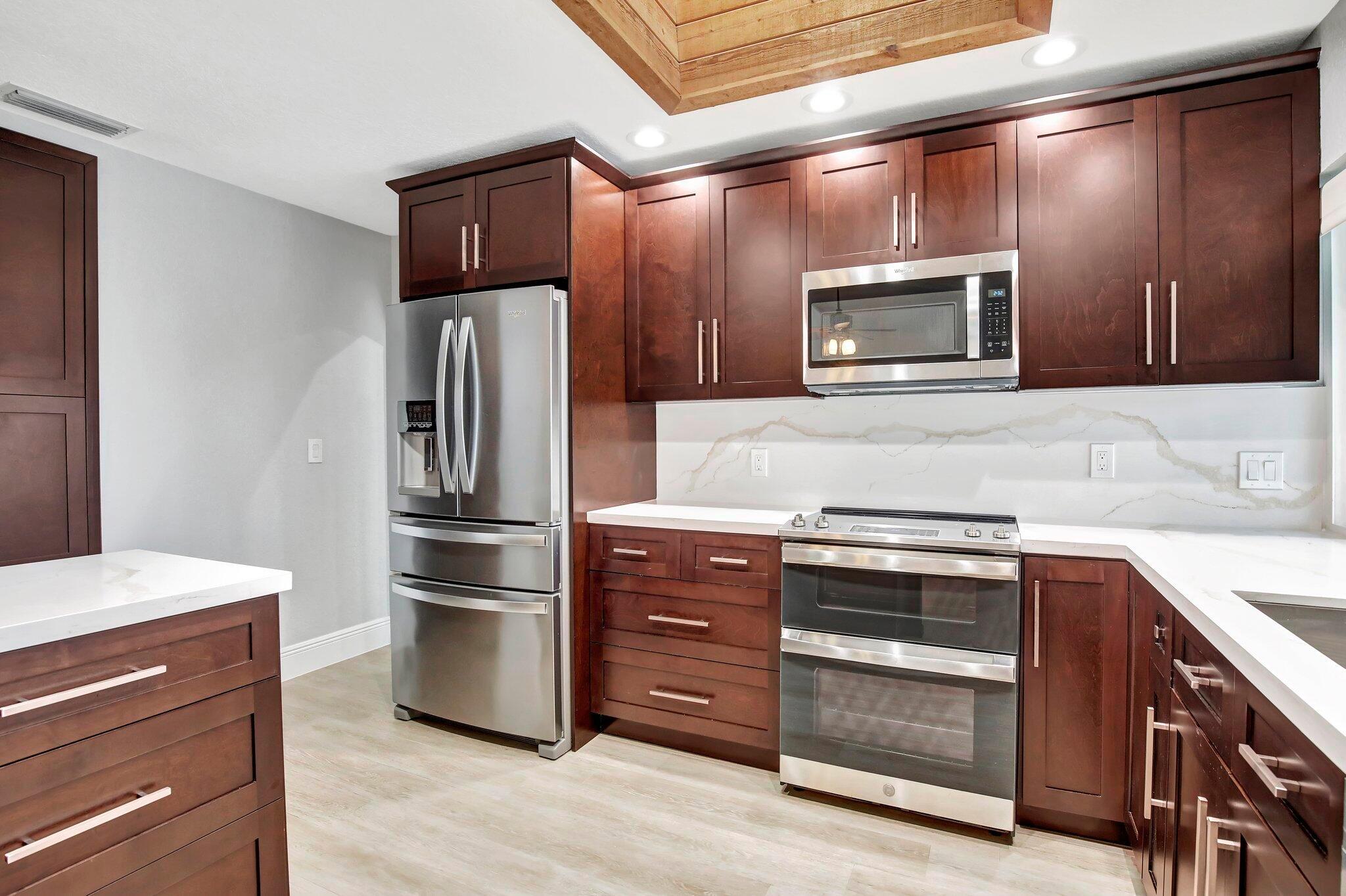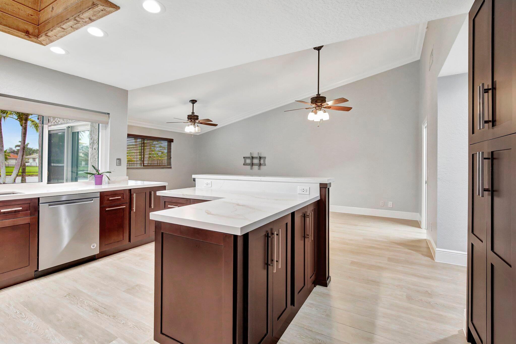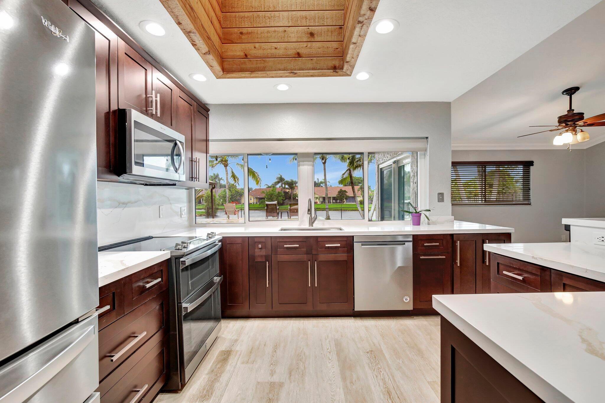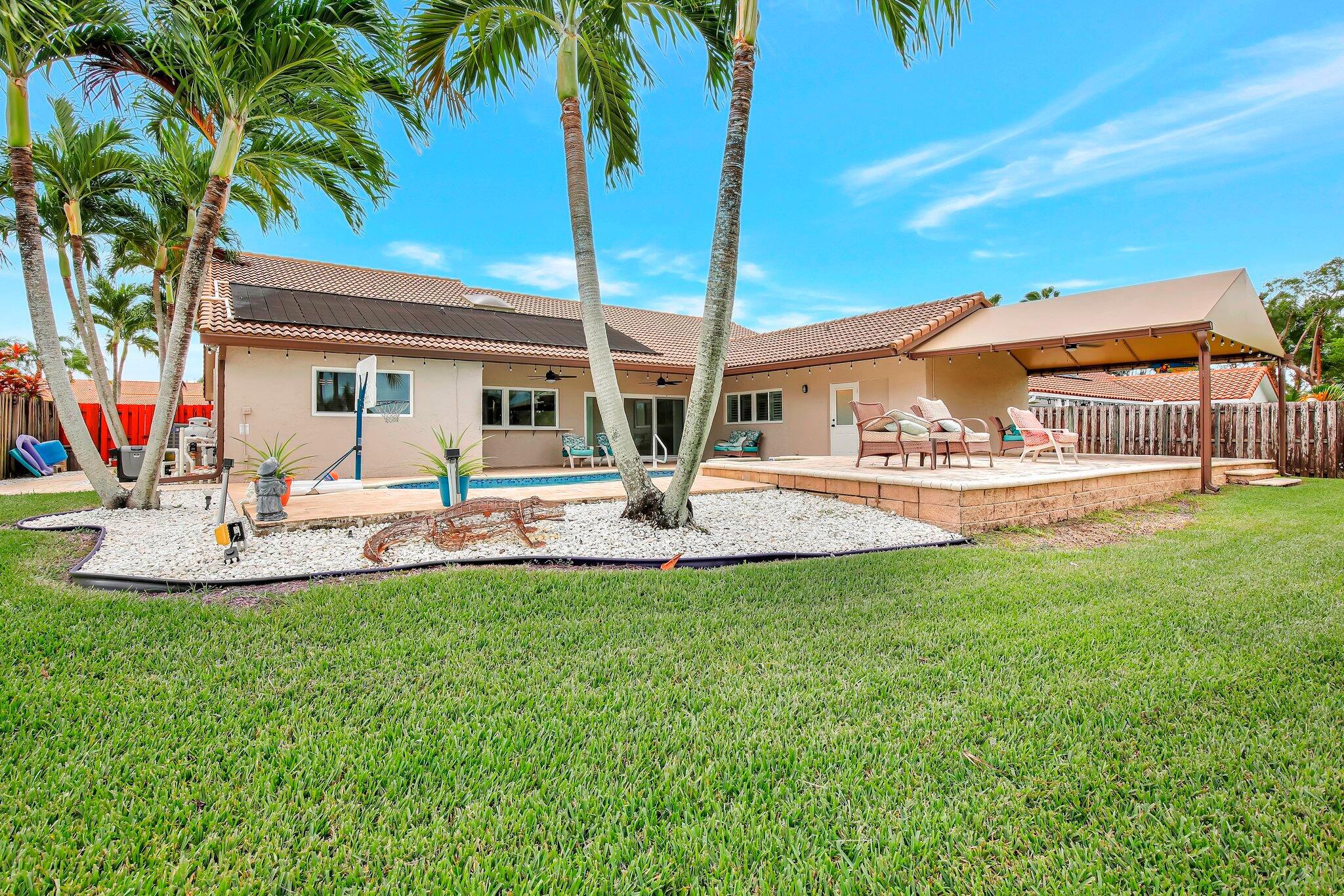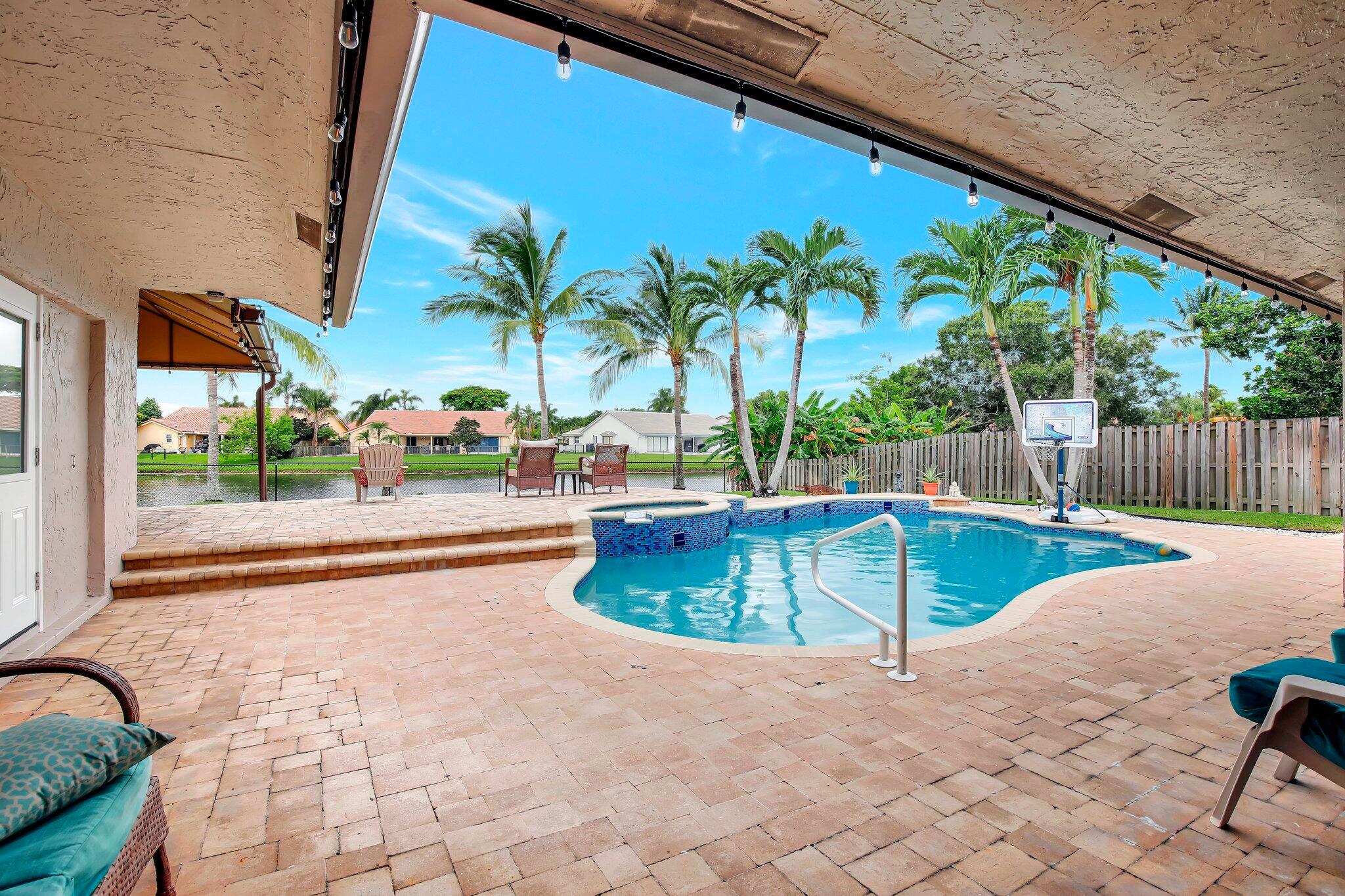 Rarely available waterfront home in Jacaranda Lakes. This home offers spectacular water views, a tile roof with more than 15 years of useful life remaining, and premium impact windows throughout. The fenced-in yard features a solar-heated pool, gas-heated elevated spa, all enhanced by premium pavers that seamlessly connect the front and back of the home. The home is adorned with high vaulted ceilings, skylights, recessed lighting, and premium porcelain flooring. The spacious kitchen and wet bar were remodeled in 2022. The water heater and A/C were replaced in 2022 and 2023. The pool was recently remodeled and new pool pumps were installed in 2023 and 2024. Centrally located in Plantation and on the only body of water in the area that allows a motorized boat.