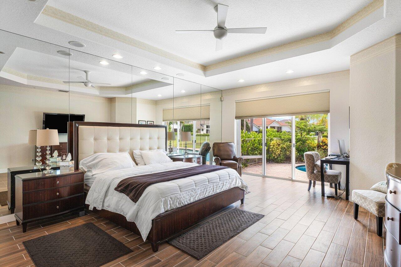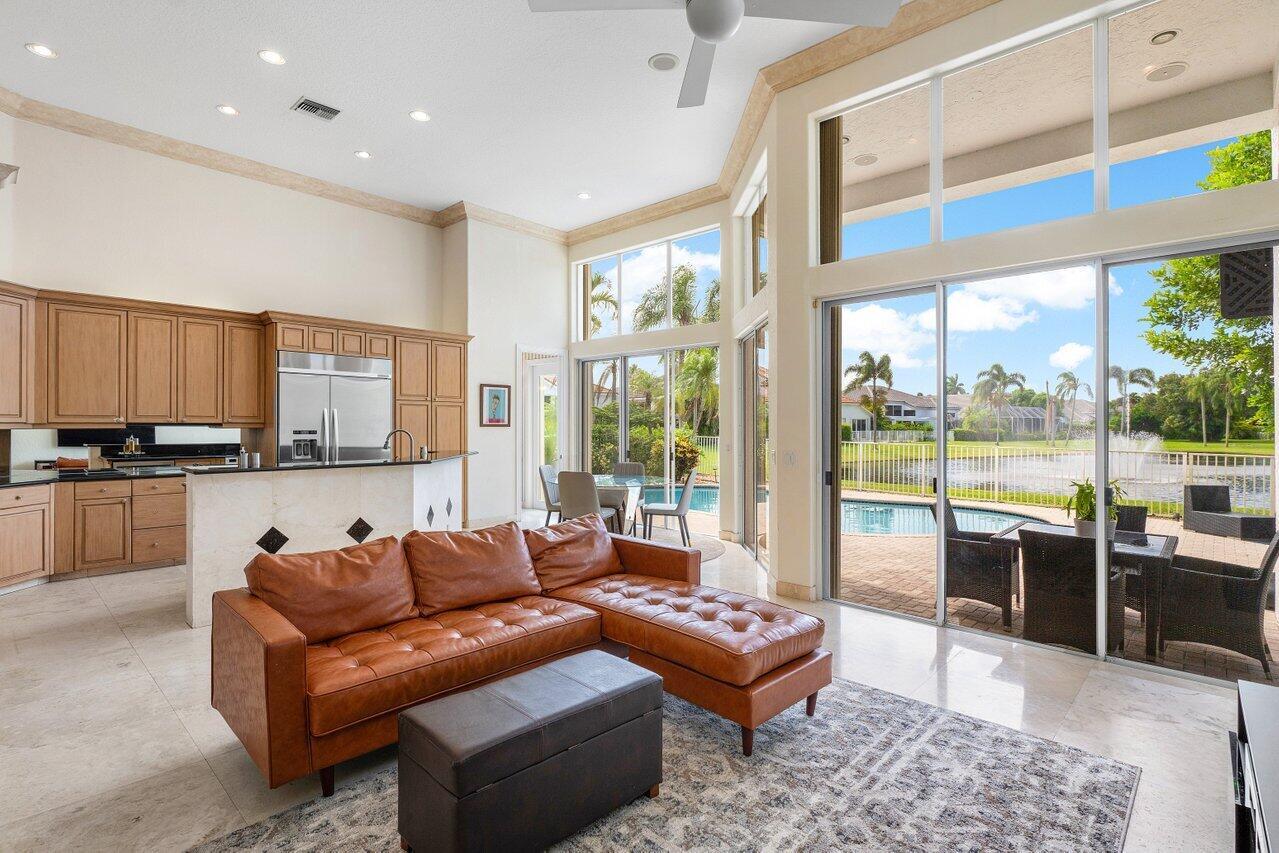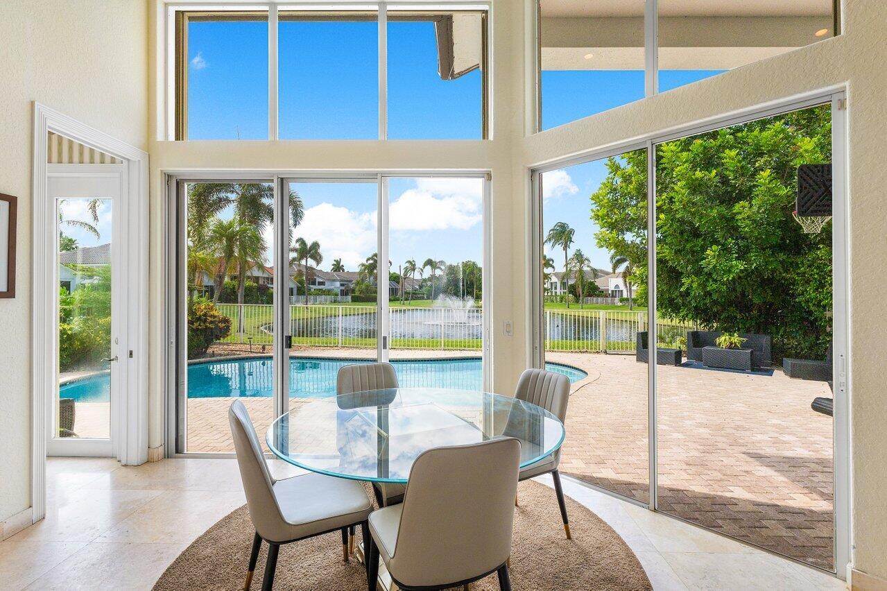 Beautiful 4 BD / 4.5 BA / 3,681 SF + Office home situated on a gorgeous lake in Regents Circle at Woodfield Country Club. An abundance of natural light from massive, floor-to-ceiling windows and sliding doors make for impeccable views of the lake. The backyard is complete with gorgeous pool, covered patio, and plenty of space for entertaining. Downstairs features an office as well as the primary bedroom with backyard entry. There are three bedrooms upstairs, two of which have en-suite bathrooms. This home graciously mixes peaceful enjoyment with panoramic views.