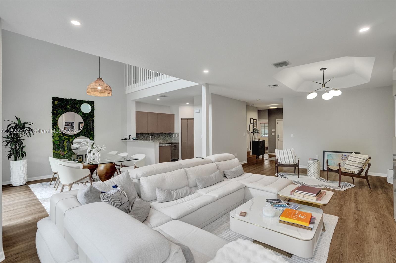 Live a resort-style luxury lifestyle in Doral Isles with this meticulously maintained 3/3 + DEN corner home in Martinique! This two-story residence features engineered wood flooring throughout the open-concept social living area and volume ceilings in the dining space, natural light.The kitchen with stainless steel appliances, granite countertops, and a walk-in pantry.1/1 downstairs, a spacious upstairs loft/den, and a bonus office nook upgraded with stylish luxury vinyl flooring, features include a Den that can be converted into a open bedroom, a one-car garage, a fenced-in patio and Furniture included. As part of the gated community of Doral Isles, you will have access to amenities including a pool, artificial beach, soccer field, 4 tennis courts. Baseball field, etc.Close to Turnpike.