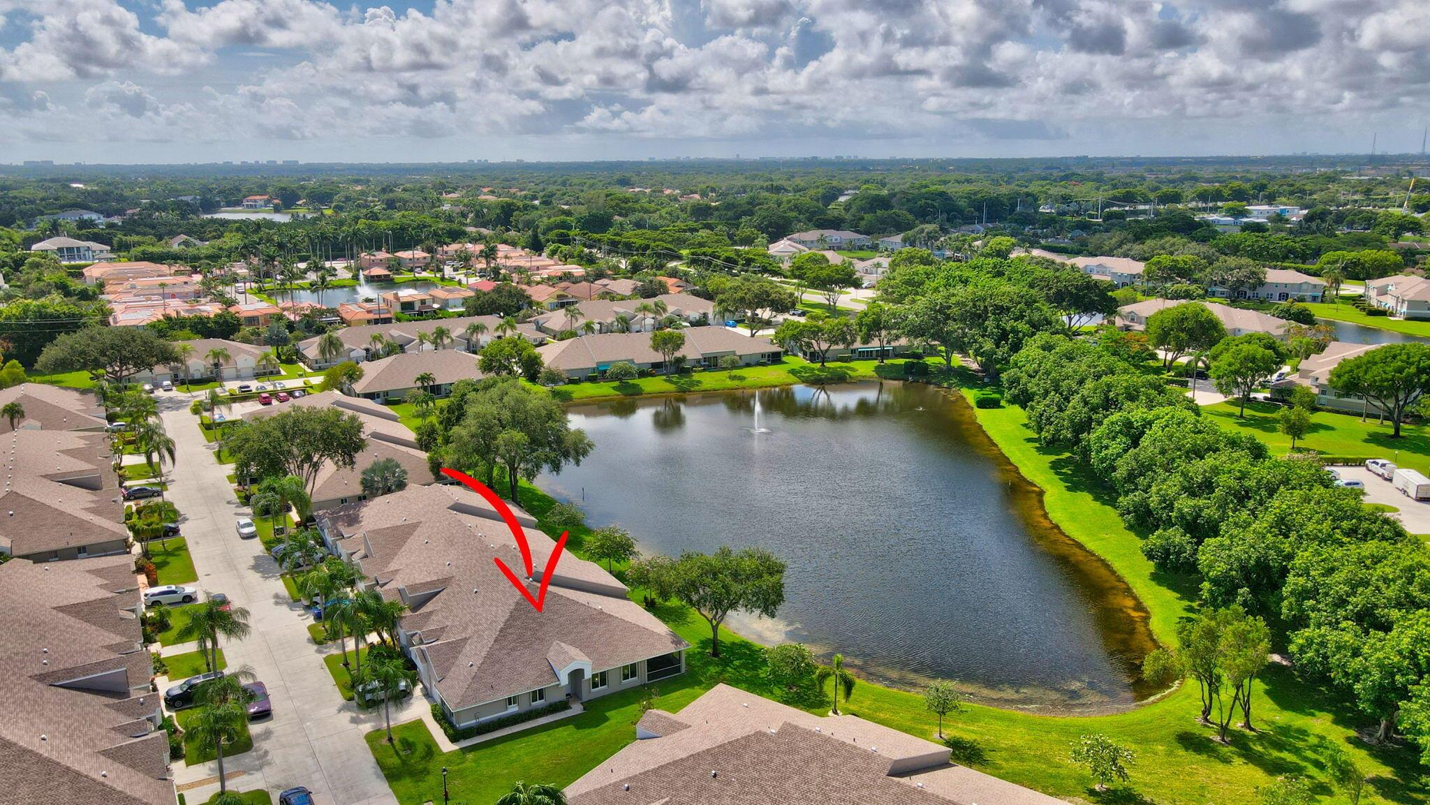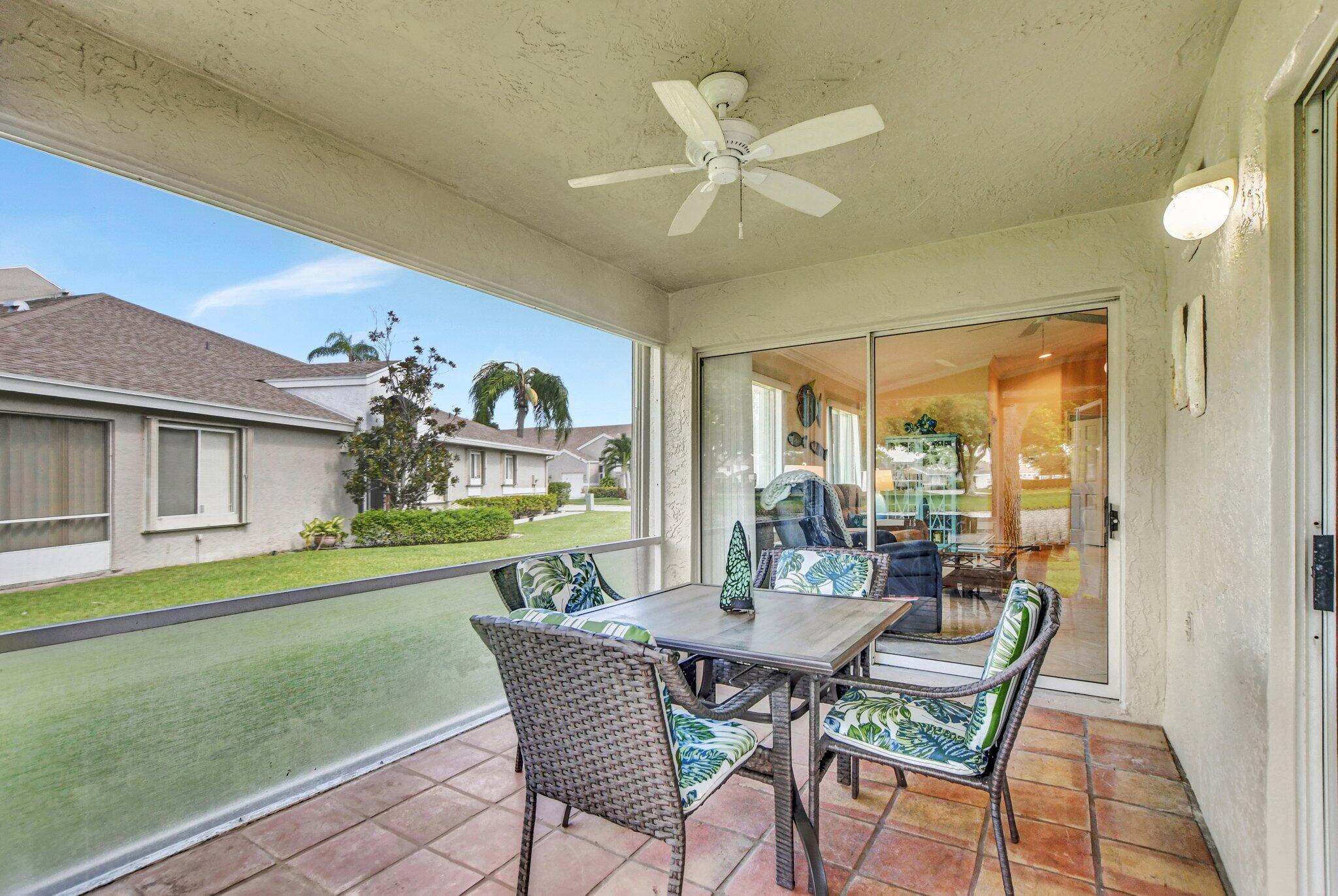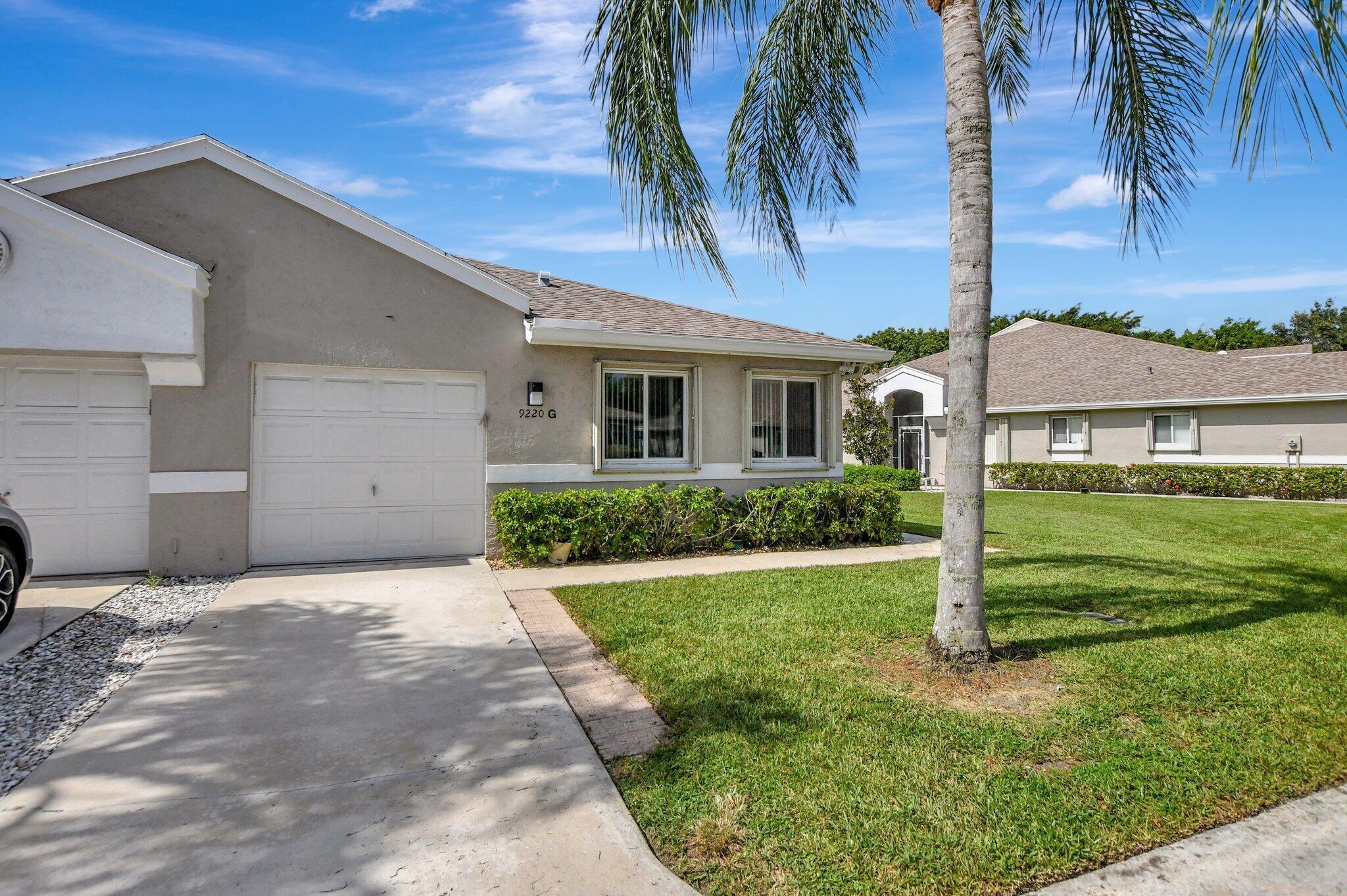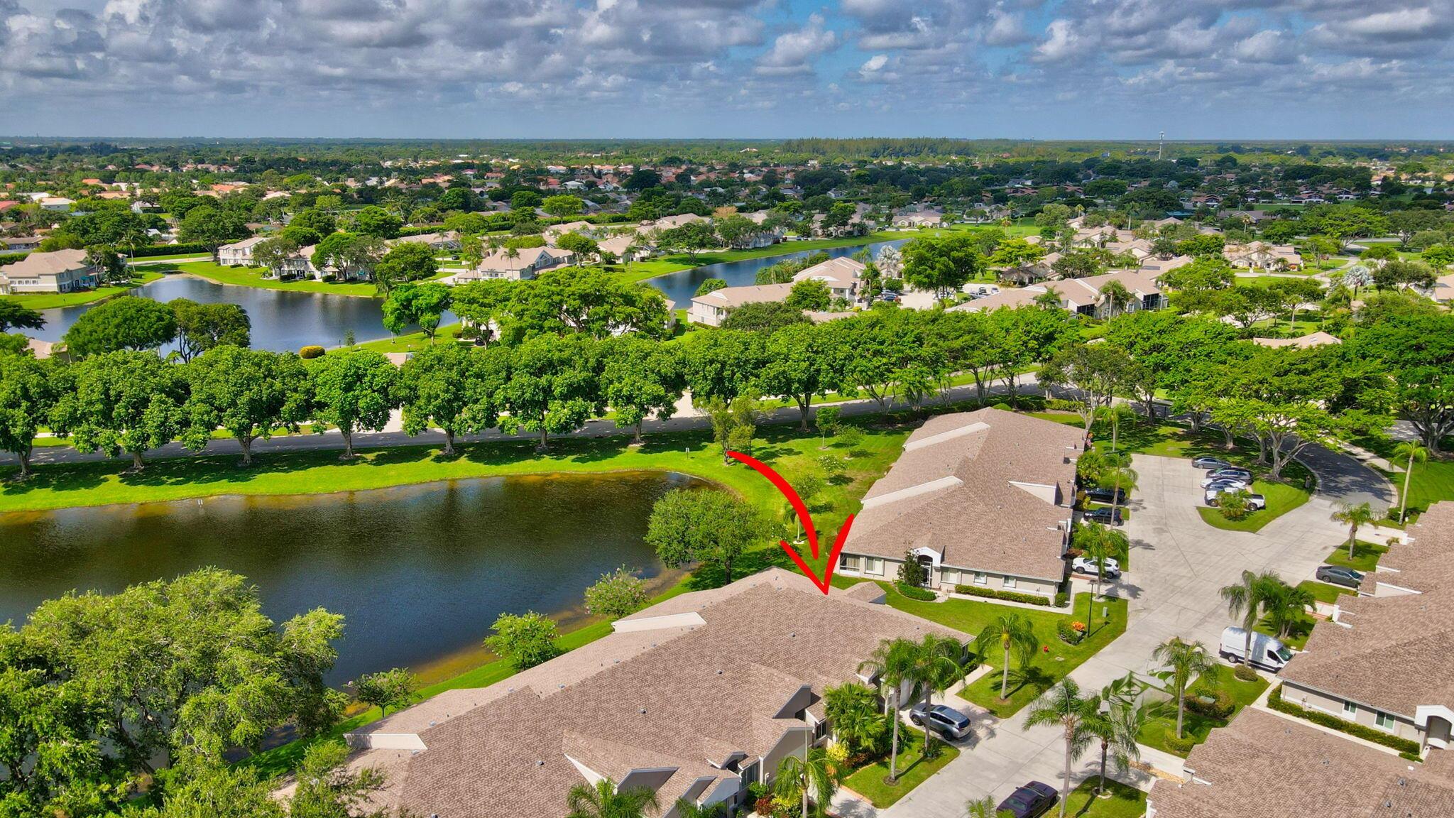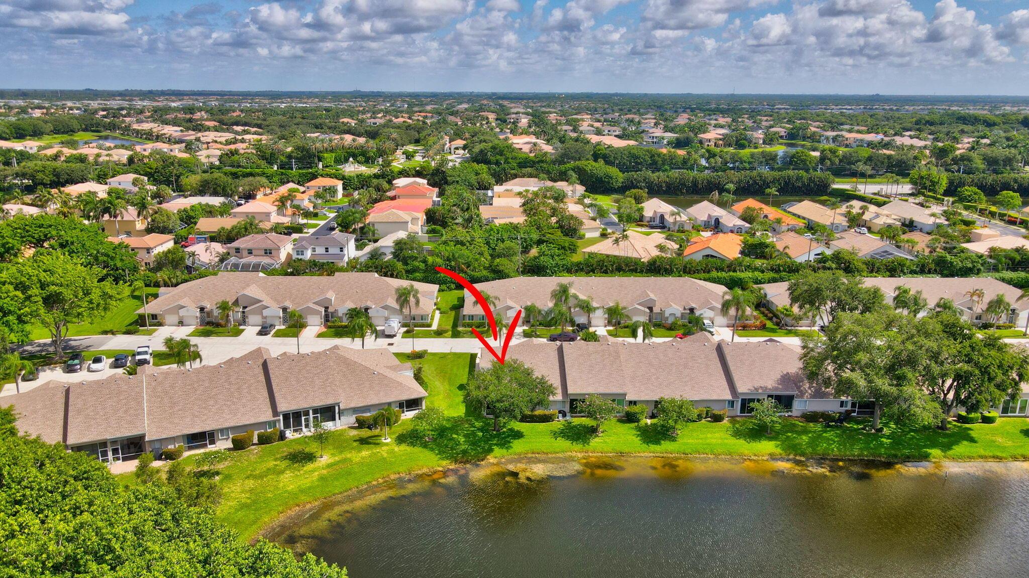 ONLY LAKEFRONT HOME AT THIS PRICE IN BOCA! BIG YARD . 3 BEDROOM .BRIGHT.WELL MAINTAINED HOME . GARAGE . END UNIT .Tile floors throughout, high ceilings with knockdown, crown molding in main living areas, double pane windows, and hurricane shutters complete. Wood cabinets and granite in kitchen, stainless steel appliances, tumbled marble backsplash, and tons of storage in cabinets. 117 sq f screened patio overlooking lake . 2016 Lennox AC . Close to community pool, Tons of grass areas, 3 pools, pickleball, wide sidewalks, and pet friendly. Roof is 2024 and covered by HOA 100% for repair and maintenance. Low HOA includes cable , lawncare, and amenities. Current homeowner's insurance is $1,800 year