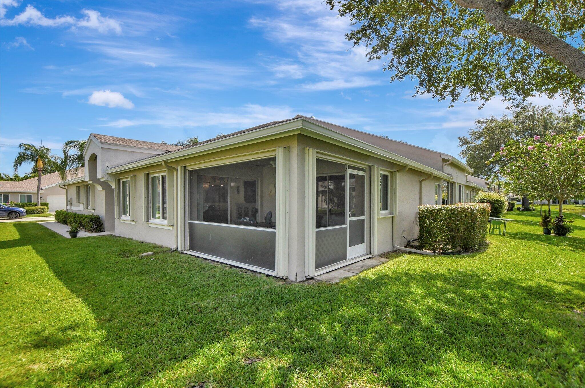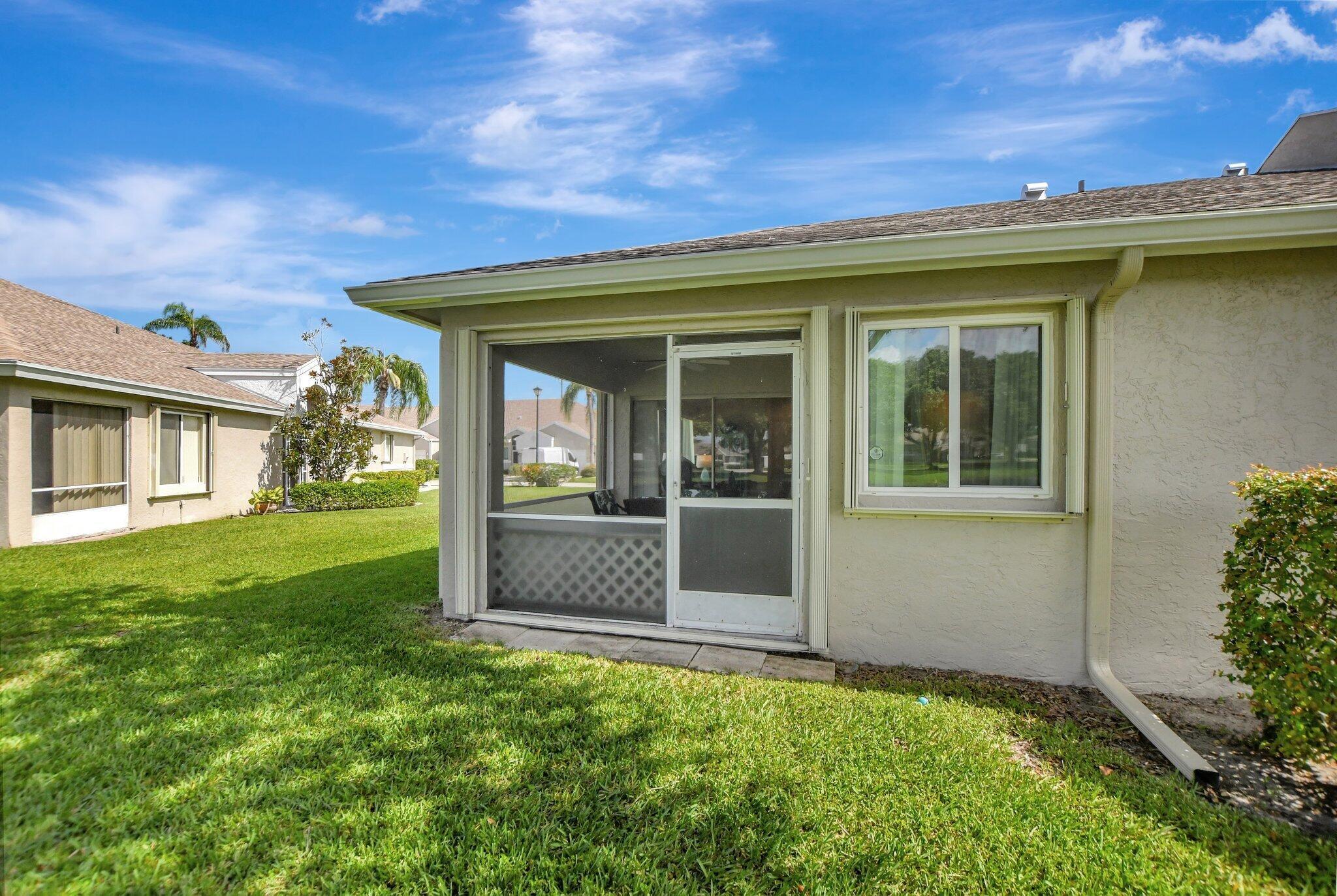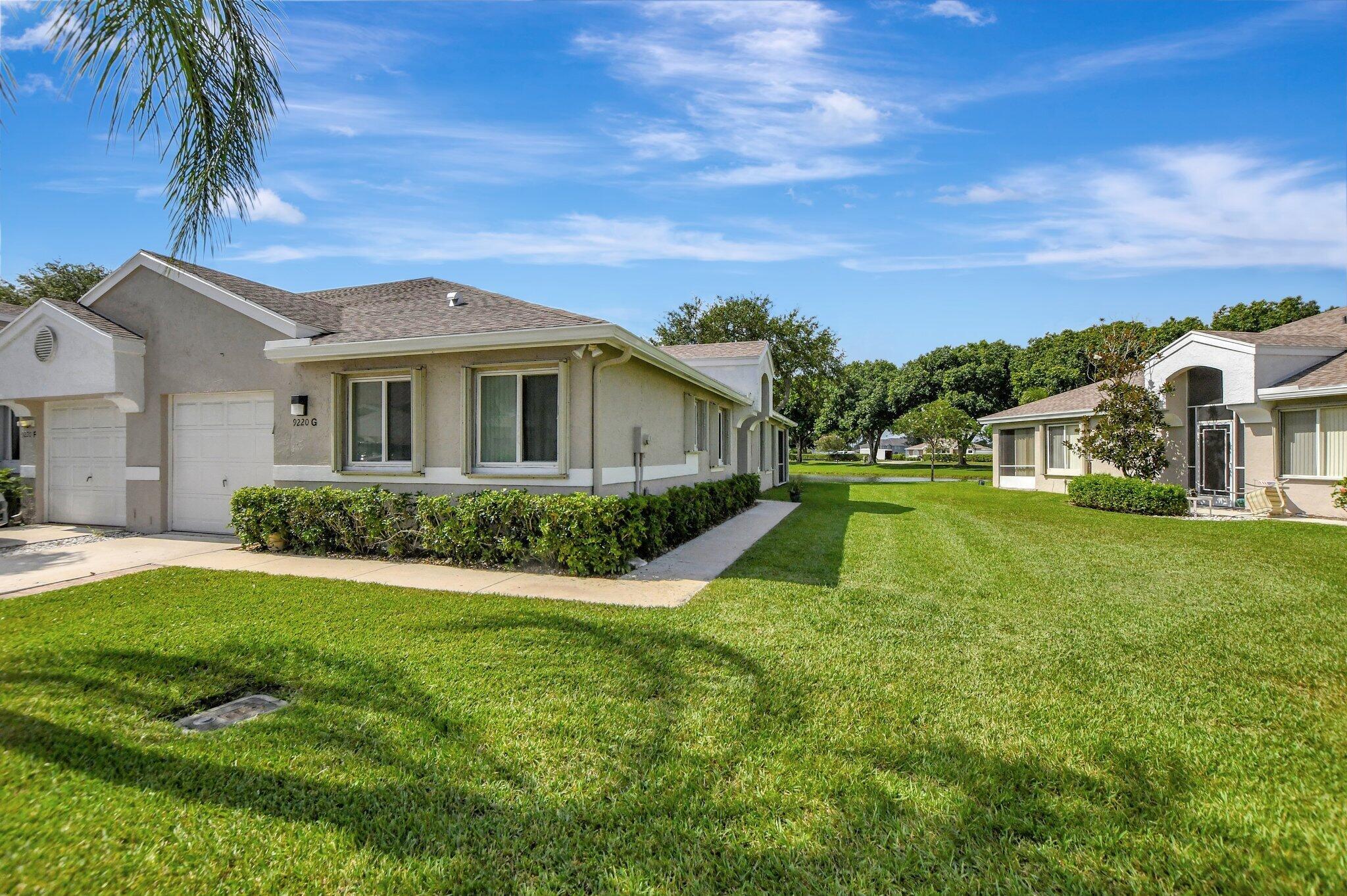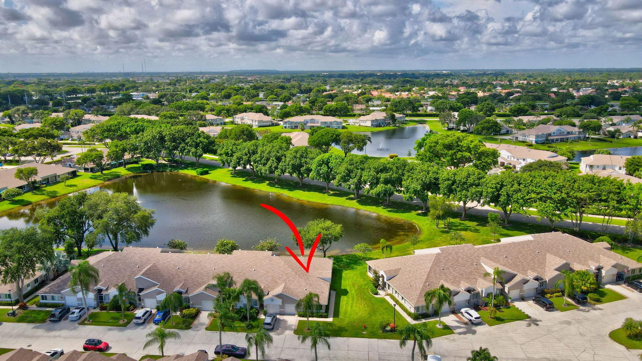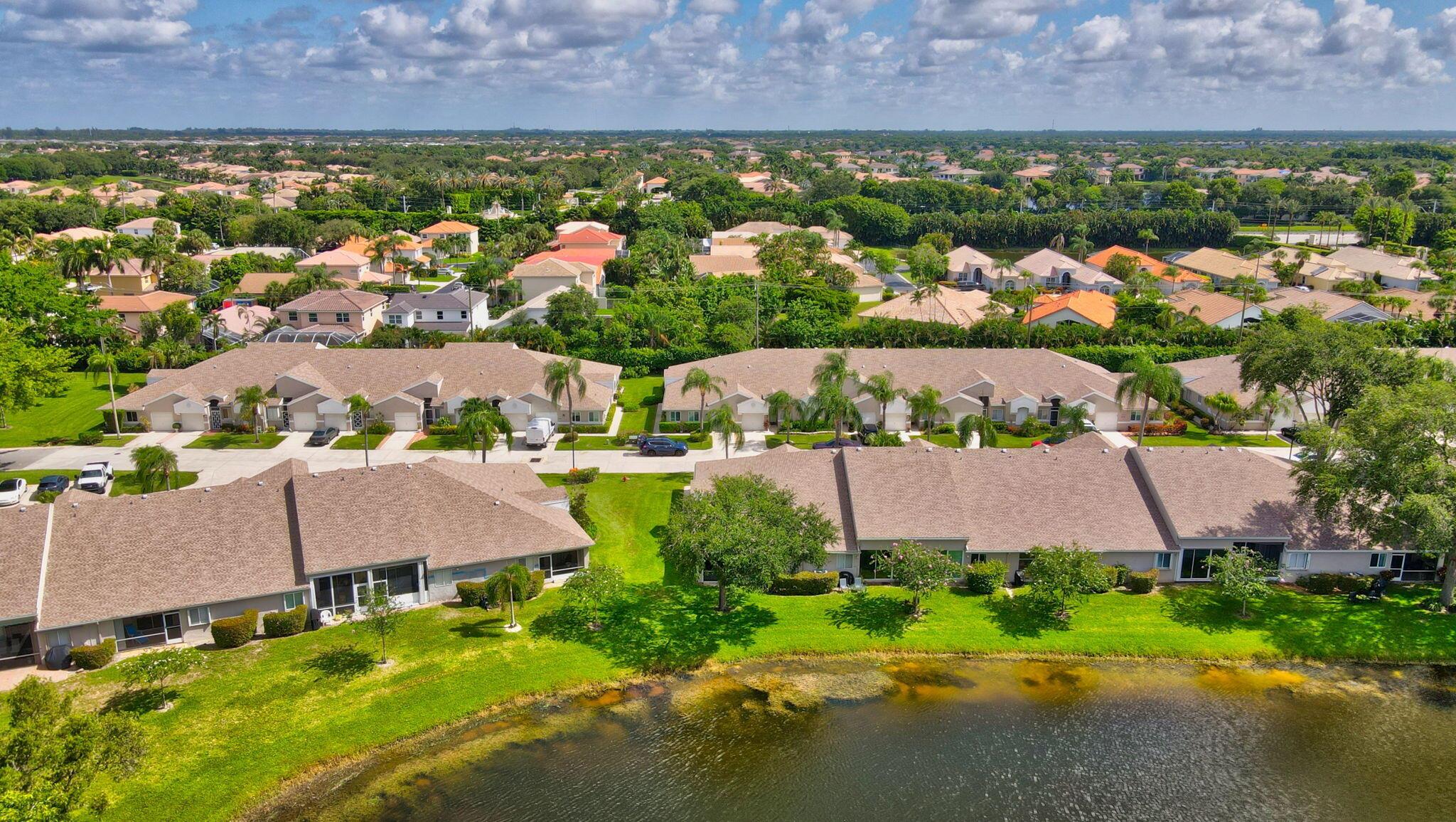 ONLY LAKEFRONT HOME AT THIS PRICE IN BOCA! BIG YARD . 3 BEDROOM .BRIGHT.WELL MAINTAINED HOME . GARAGE . END UNIT .Tile floors throughout, high ceilings with knockdown, crown molding in main living areas, double pane windows, and hurricane shutters complete. Wood cabinets and granite in kitchen, stainless steel appliances, tumbled marble backsplash, and tons of storage in cabinets. 117 sq f screened patio overlooking lake . 2016 Lennox AC . Close to community pool, Tons of grass areas, 3 pools, pickleball, wide sidewalks, and pet friendly. Roof is 2024 and covered by HOA 100% for repair and maintenance. Low HOA includes cable , lawncare, and amenities. Current homeowner's insurance is $1,800 year