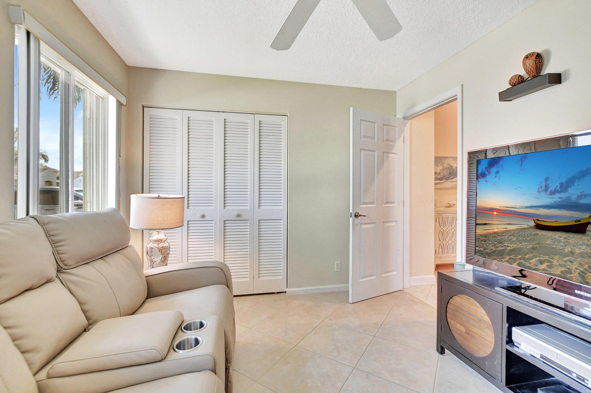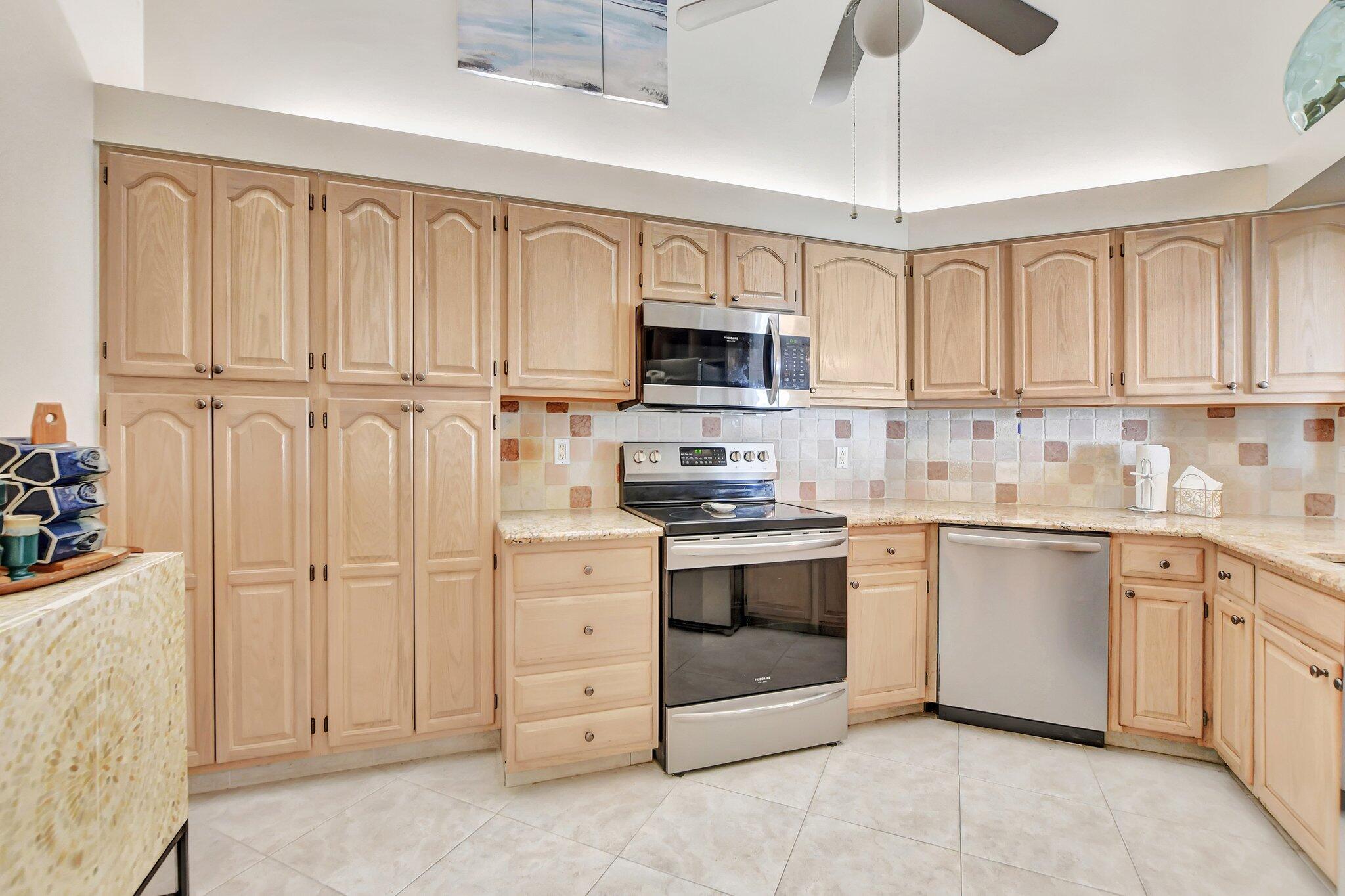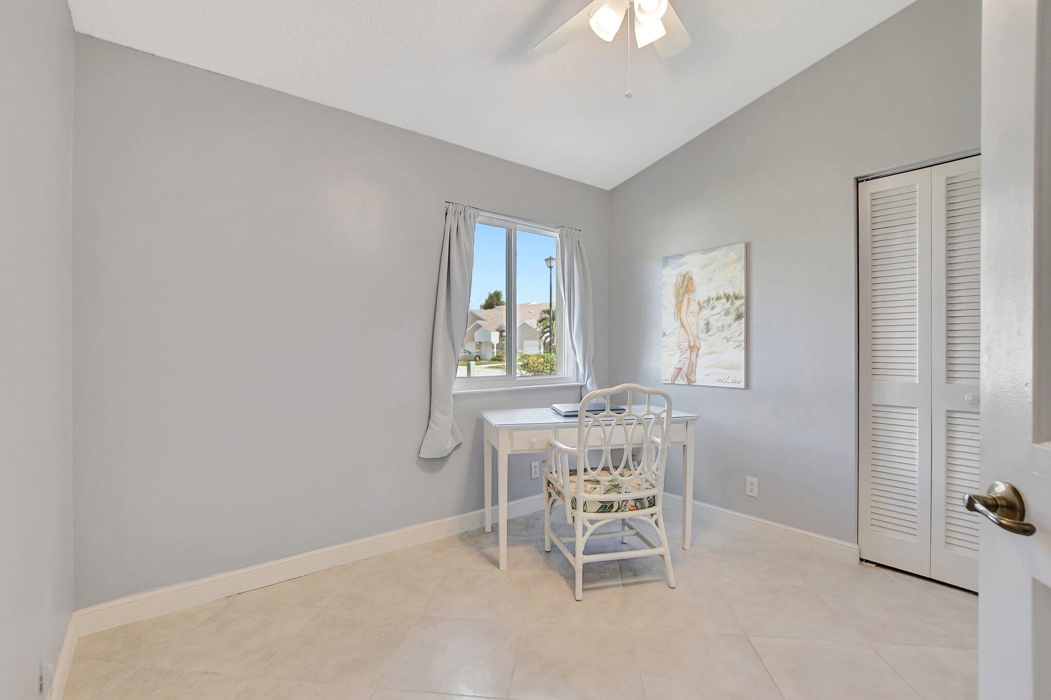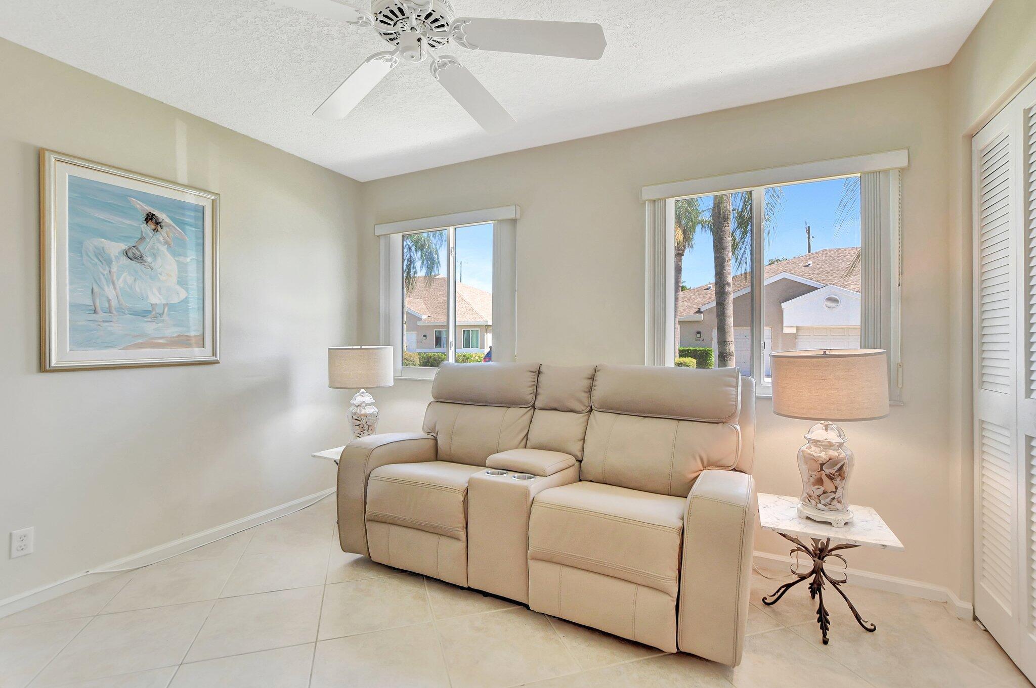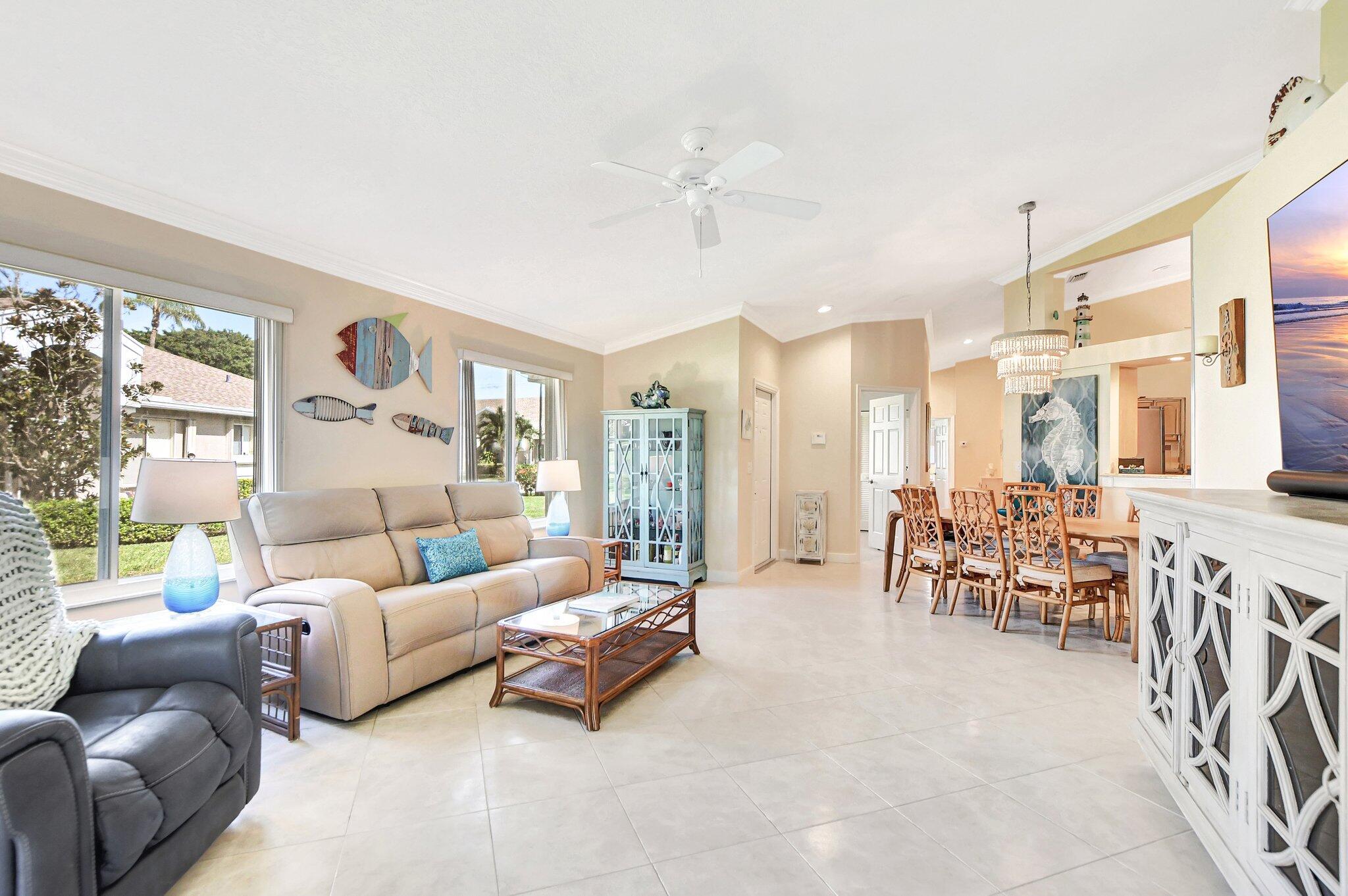 ONLY LAKEFRONT HOME AT THIS PRICE IN BOCA! BIG YARD . 3 BEDROOM .BRIGHT.WELL MAINTAINED HOME . GARAGE . END UNIT .Tile floors throughout, high ceilings with knockdown, crown molding in main living areas, double pane windows, and hurricane shutters complete. Wood cabinets and granite in kitchen, stainless steel appliances, tumbled marble backsplash, and tons of storage in cabinets. 117 sq f screened patio overlooking lake . 2016 Lennox AC . Close to community pool, Tons of grass areas, 3 pools, pickleball, wide sidewalks, and pet friendly. Roof is 2024 and covered by HOA 100% for repair and maintenance. Low HOA includes cable , lawncare, and amenities. Current homeowner's insurance is $1,800 year