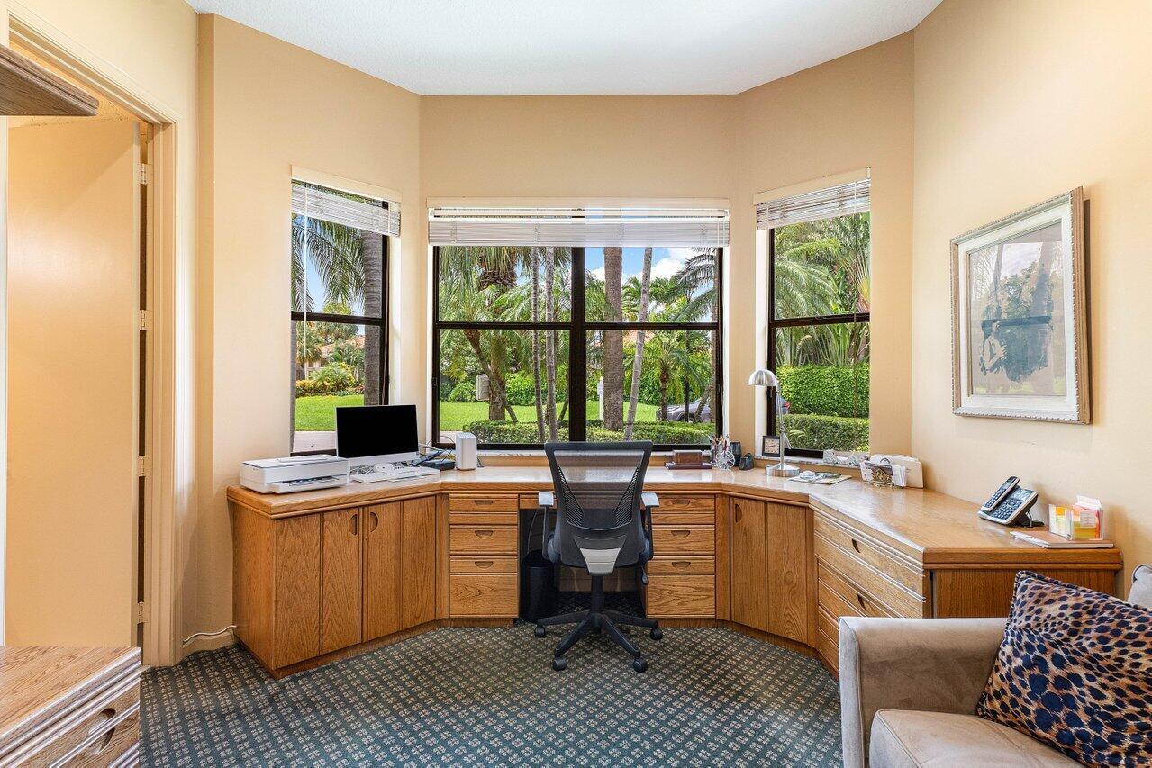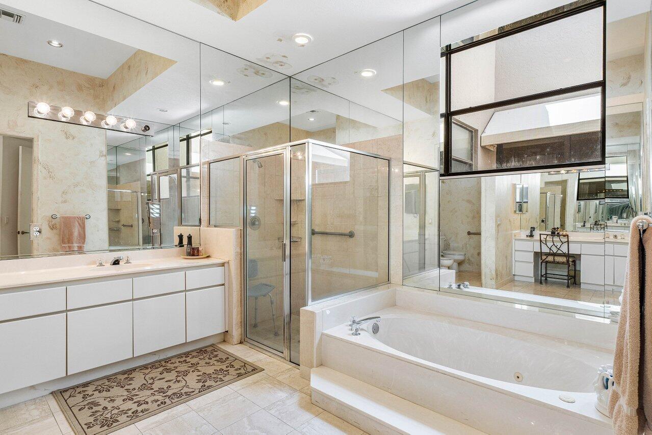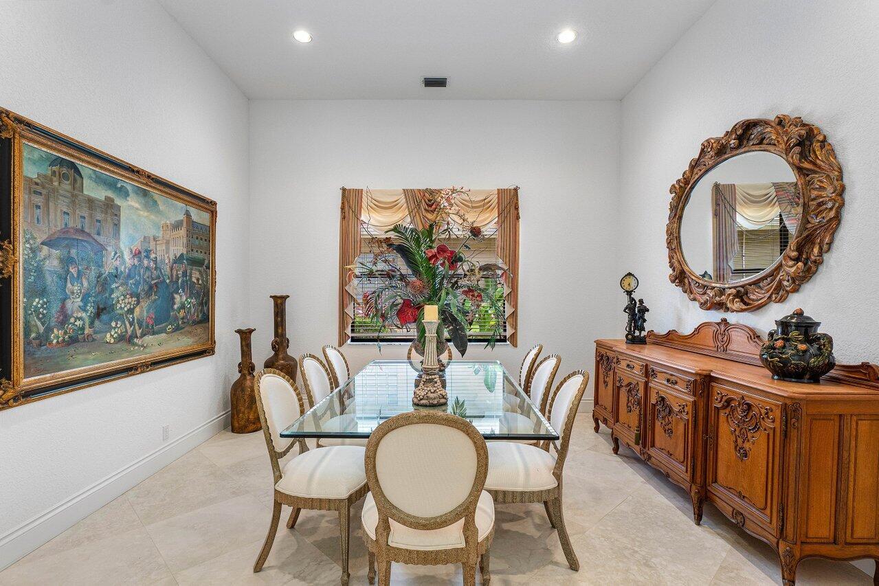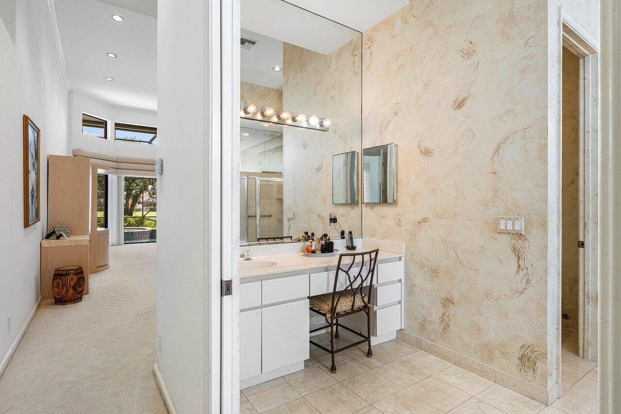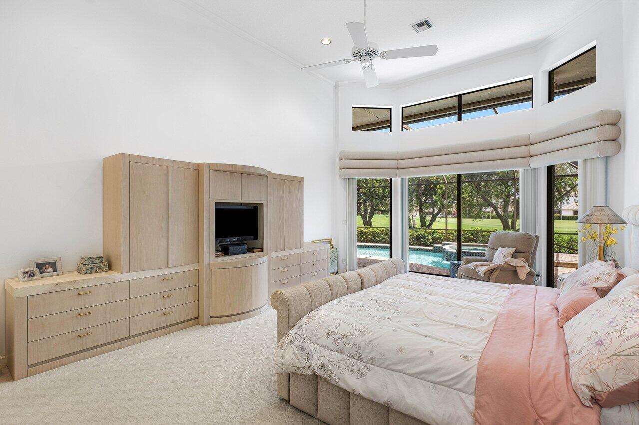 This custom-built home offers an expansive one-of-a-kind layout as the perfect palette to customize and make your own. From the moment you walk in, the grandeur of the foyer is impressive, and high ceiling heights continuously flow from the front entry to the exterior creating a sense of openness that is truly captivating. The focal point of the home is the oversized great room with a bar, seamlessly connected to the kitchen, which could easily be converted to a completely open concept design that would visually expand the footprint and provide numerous possibilities for entertaining. Offering easy access to the exterior, the private pool with a spillover spa and sun filled Southern exposure patio are set against the backdrop of the lush golf course and tranquil lake beyond. It's a -->