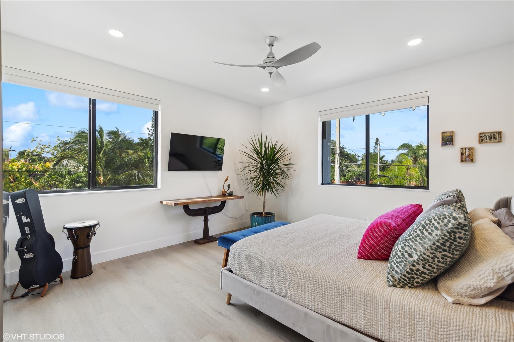 Modern Smart Luxury in the Heart of Poinsettia Heights! Recently constructed; completed in 2023. 4-bd, 3.5-bath pool home which sits on a coveted 6,755 sqft corner lot. This 2-story SF home with 10 ft ceilings, features impact windows & doors. 2-car garage, prewired for an EV. Open floor plan. Kitchen features custom Italian design cabinetry with island & secret door panel to the laundry room. Porcelain floors throughout. Floating staircase with glass handrail leads to the open loft-den. Spacious primary suite with private balcony, dual closets, & spa-like bathroom with freestanding tub & double shower. Lush landscaping, & saltwater pool with waterfall with entertainers’ patio. Stunning home, designed for ultimate comfort and convenience that boasts an array of smart home features.