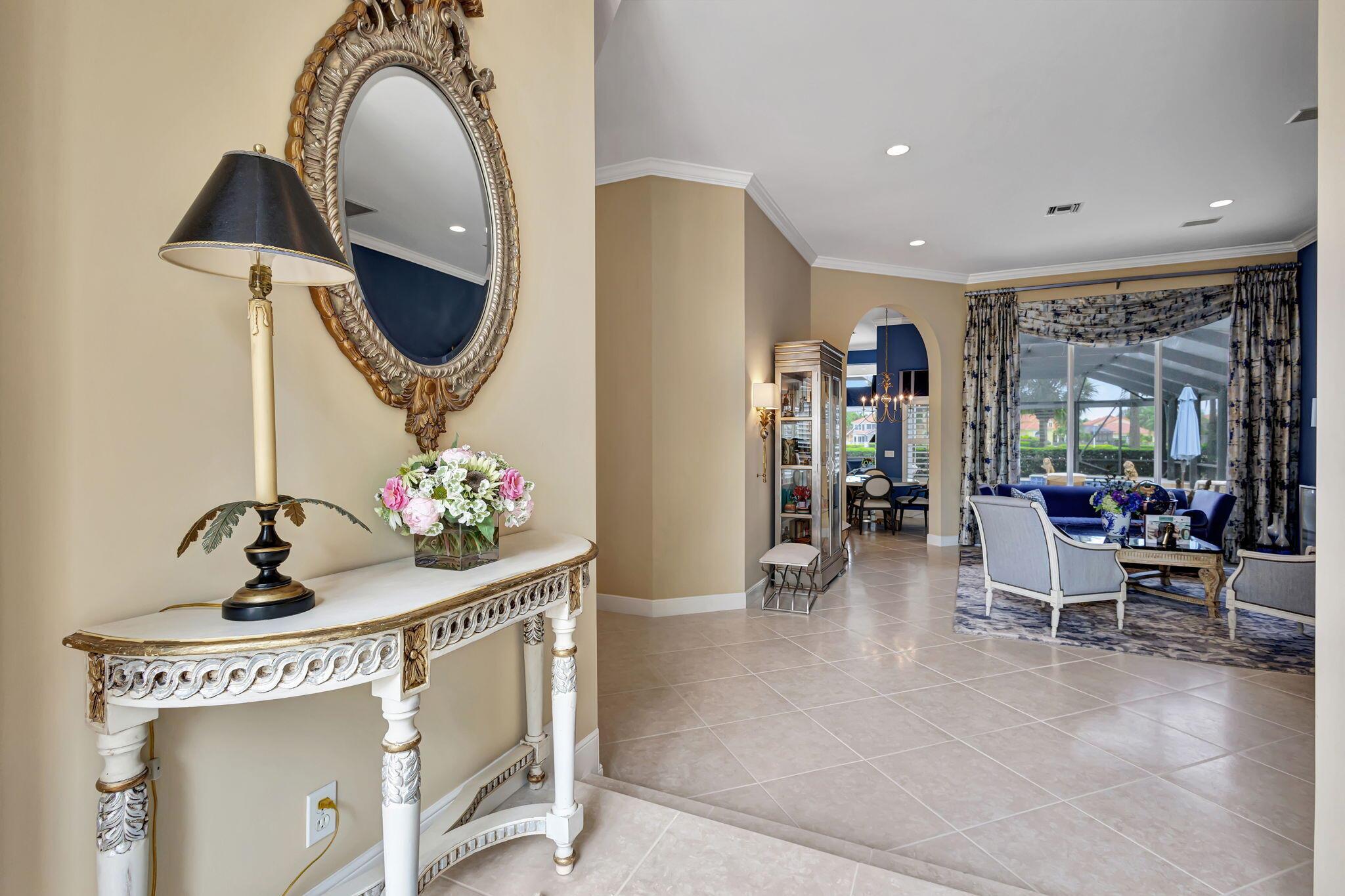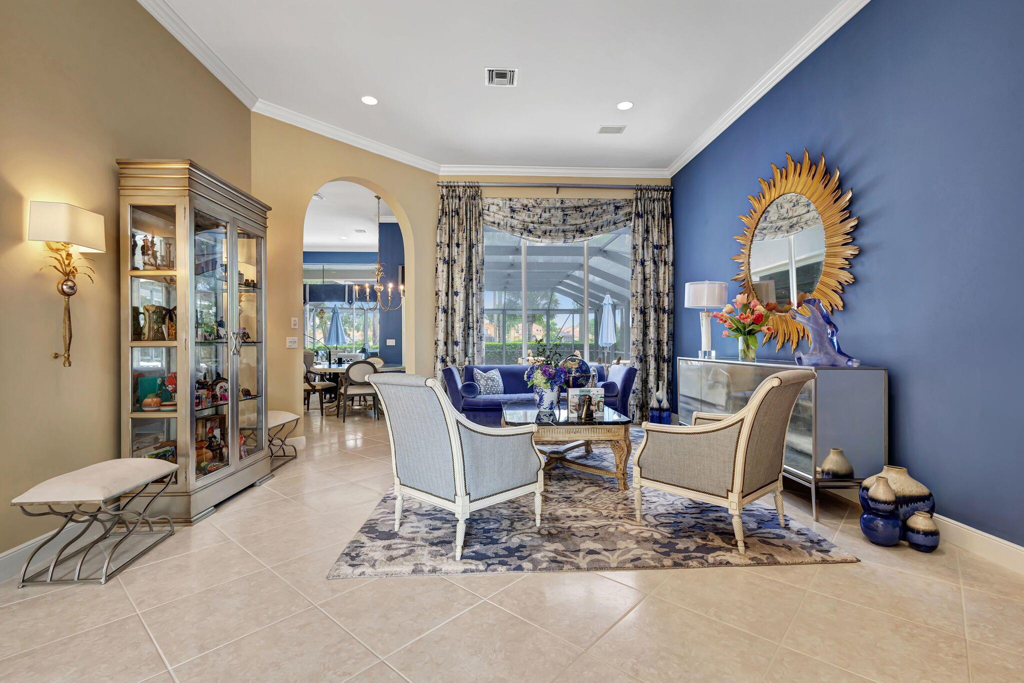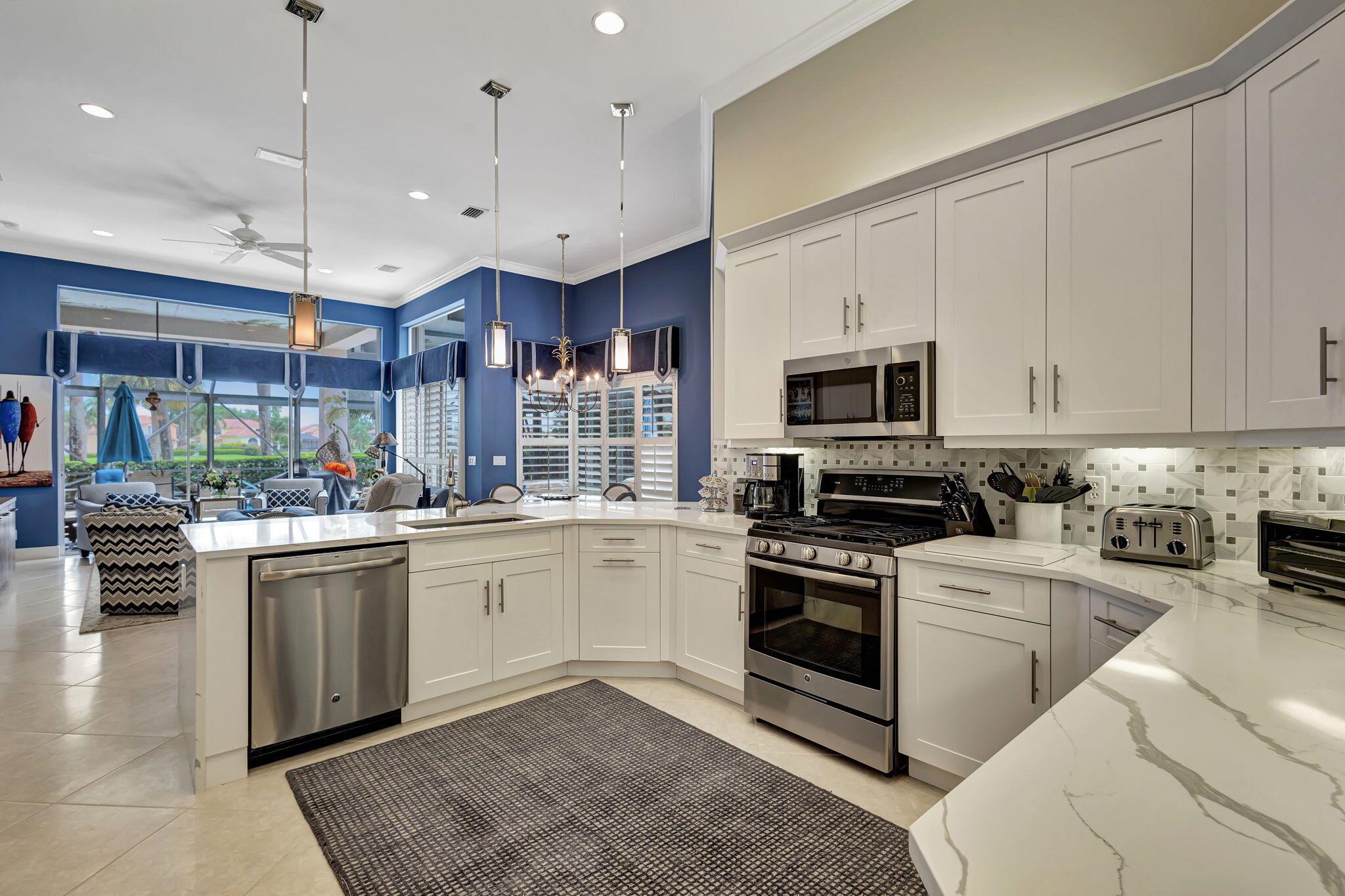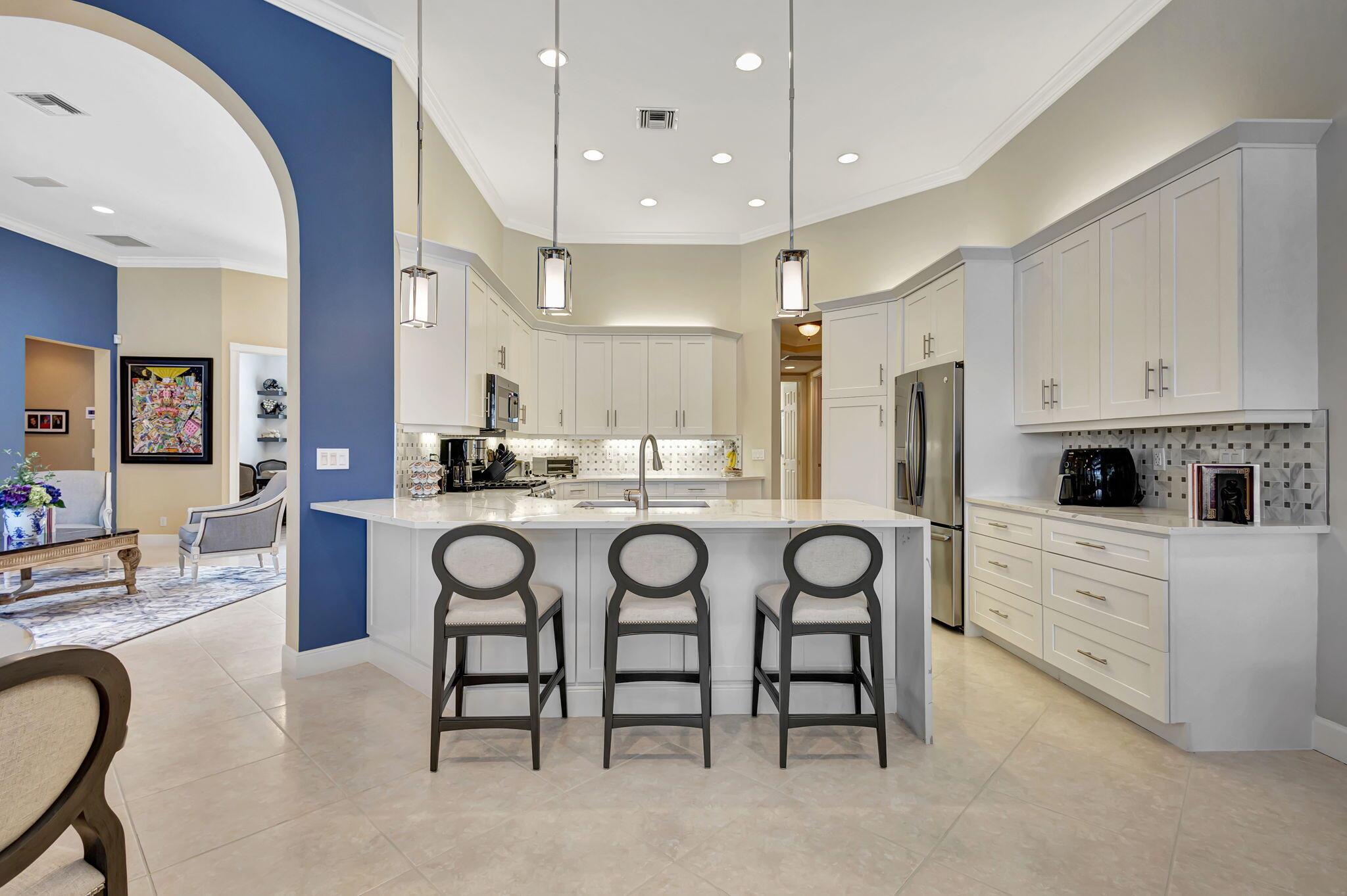IMMEDIATE Premier Golf Membership available with home. Welcome to your private retreat nestled within the exclusive enclave of Ibis Isles located in The Club at Ibis. This stunning home boasts elegance and comfort with its spacious floor plan featuring 4 bedrooms, a den, and 4 bathrooms. Upon entering, you are greeted in a lovely foyer that leads to an expansive living area adorned with high ceilings and oversized windows, bathing the space in natural light. The kitchen has been beautifully renovated with white Shaker style cabinets, quartz countertops and stainless steel appliances perfect for entertaining guests or preparing gourmet meals. The master suite offers a serene escape with its private oasis, complete with a spa-like bathroom featuring dual