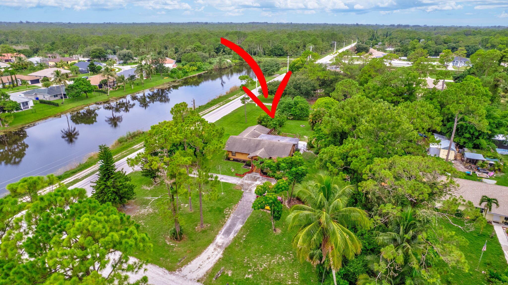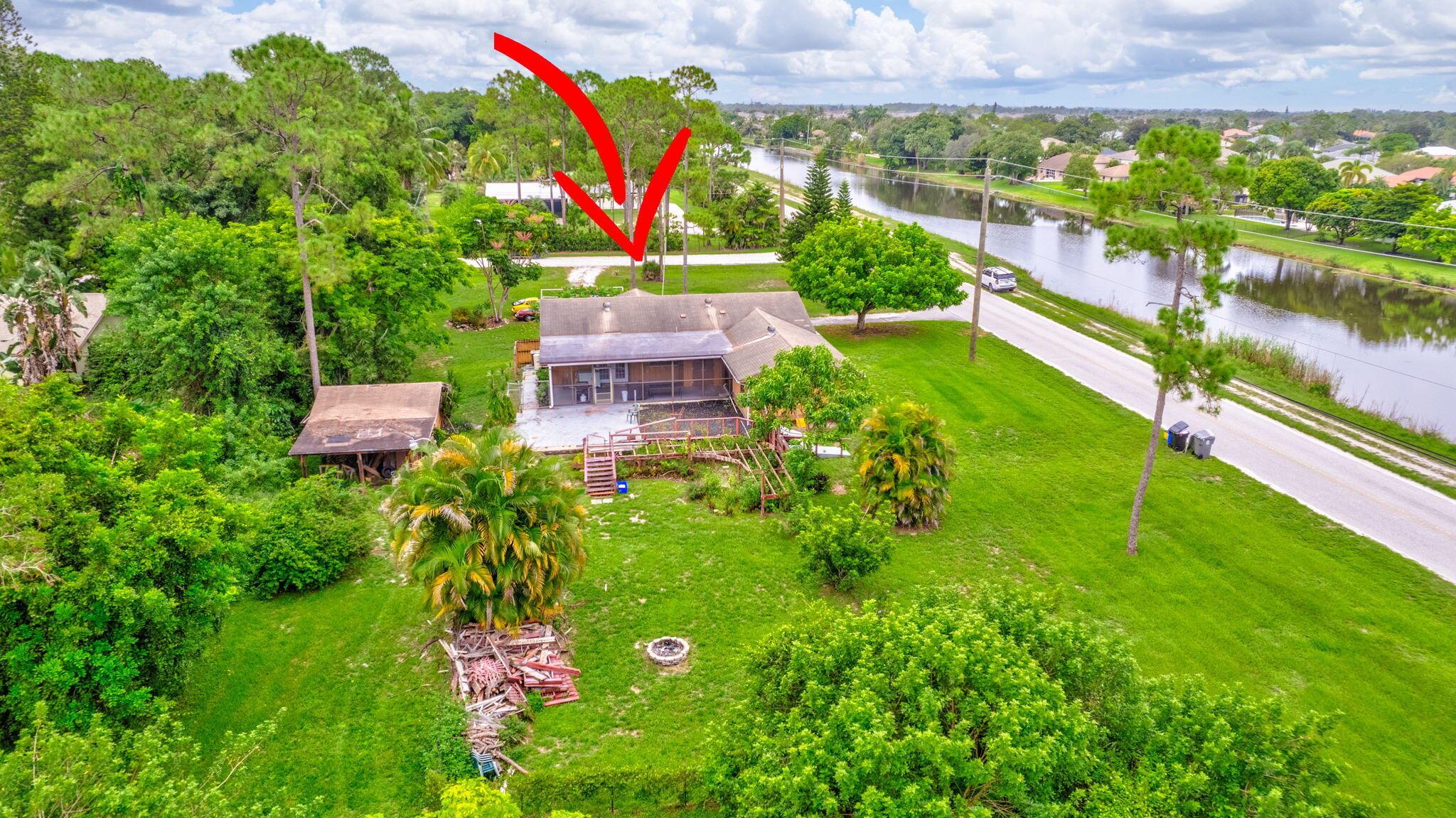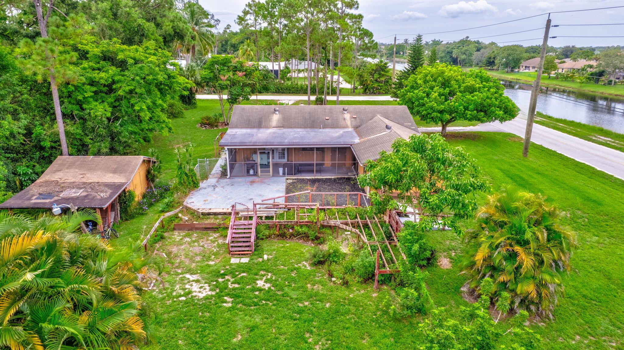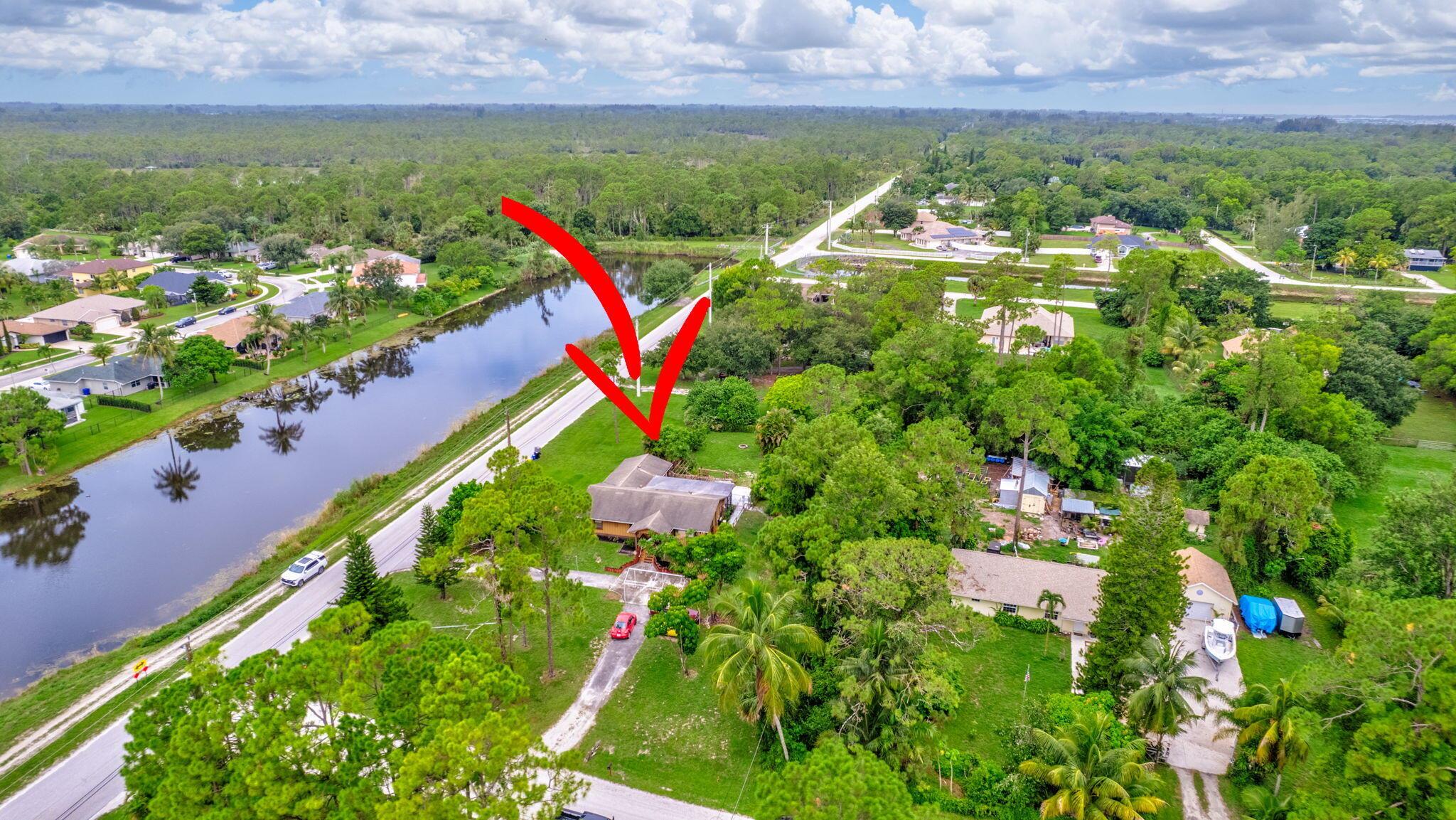 Land, land, & more land. This is a 1 1/4 acre corner lot with a single family home and a large attached in-law suite connected to it. Brand new AC system. There's a total of 4 bedrooms and 2 baths. The home can be configured as a 3/1 with large 2-room efficiency/ in-law suite with separate entrance OR the home can be easily reconfigured into a traditional large 4/2. Kitchen has plenty of storage & an eat in counter top. Options are endless to make this your own.. Open space and canal to the south adds to the privacy on this wooded lot. Plenty of room for all three: a pool, boat, & RV. No HOA, no restrictions, and no hassles.