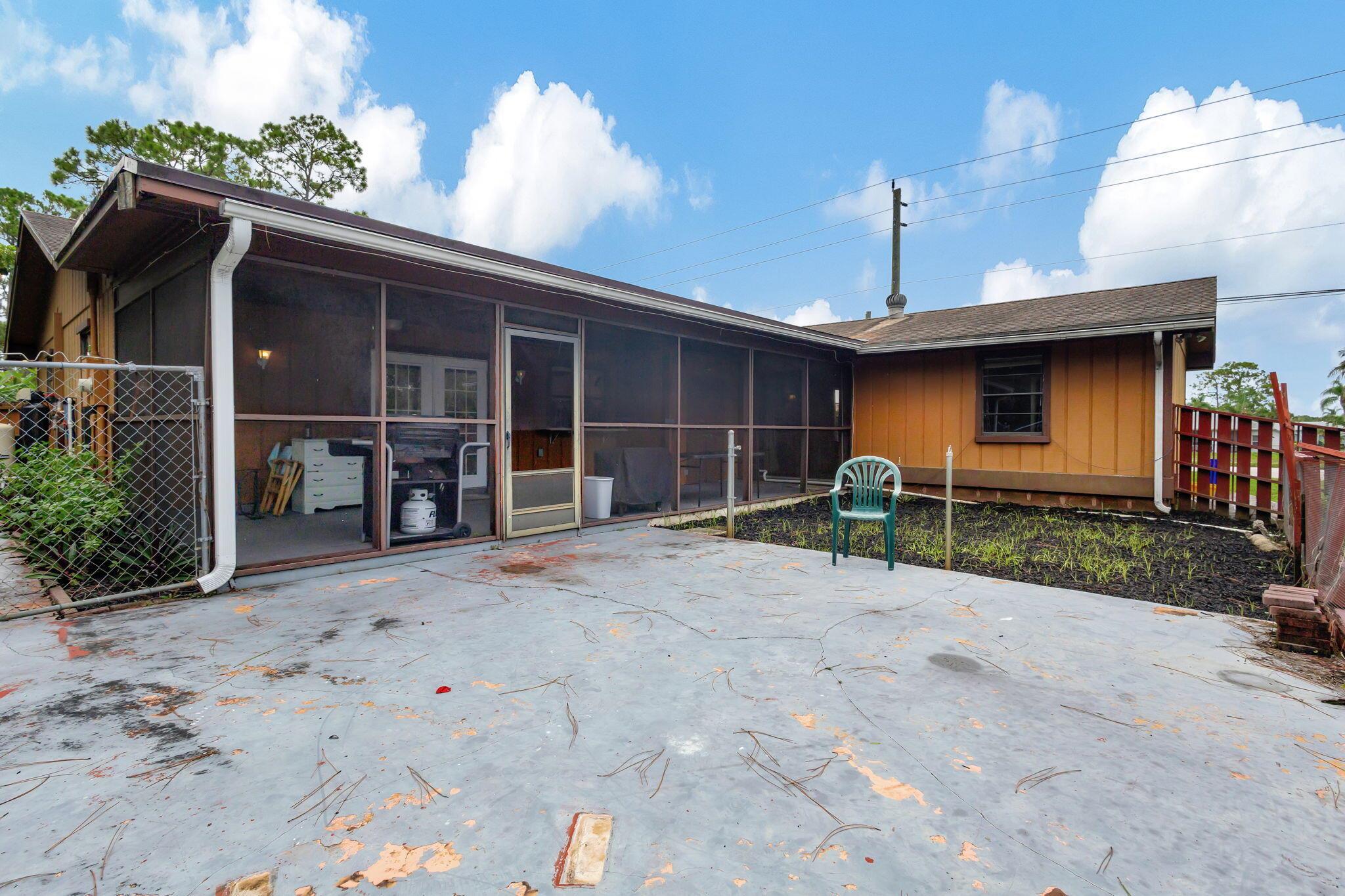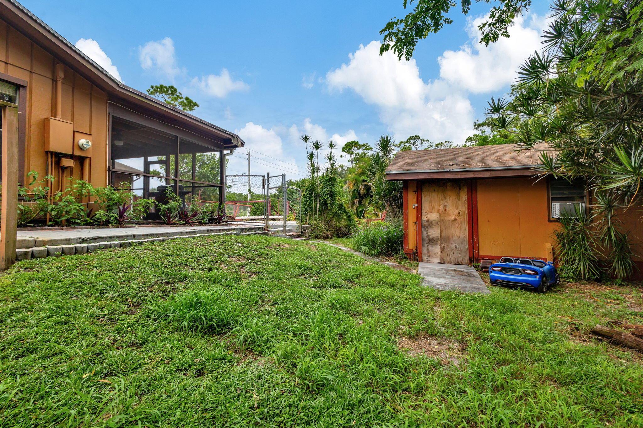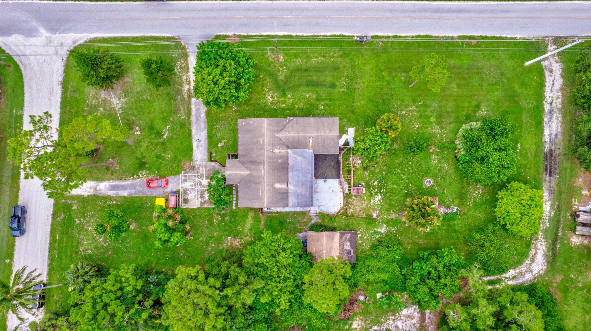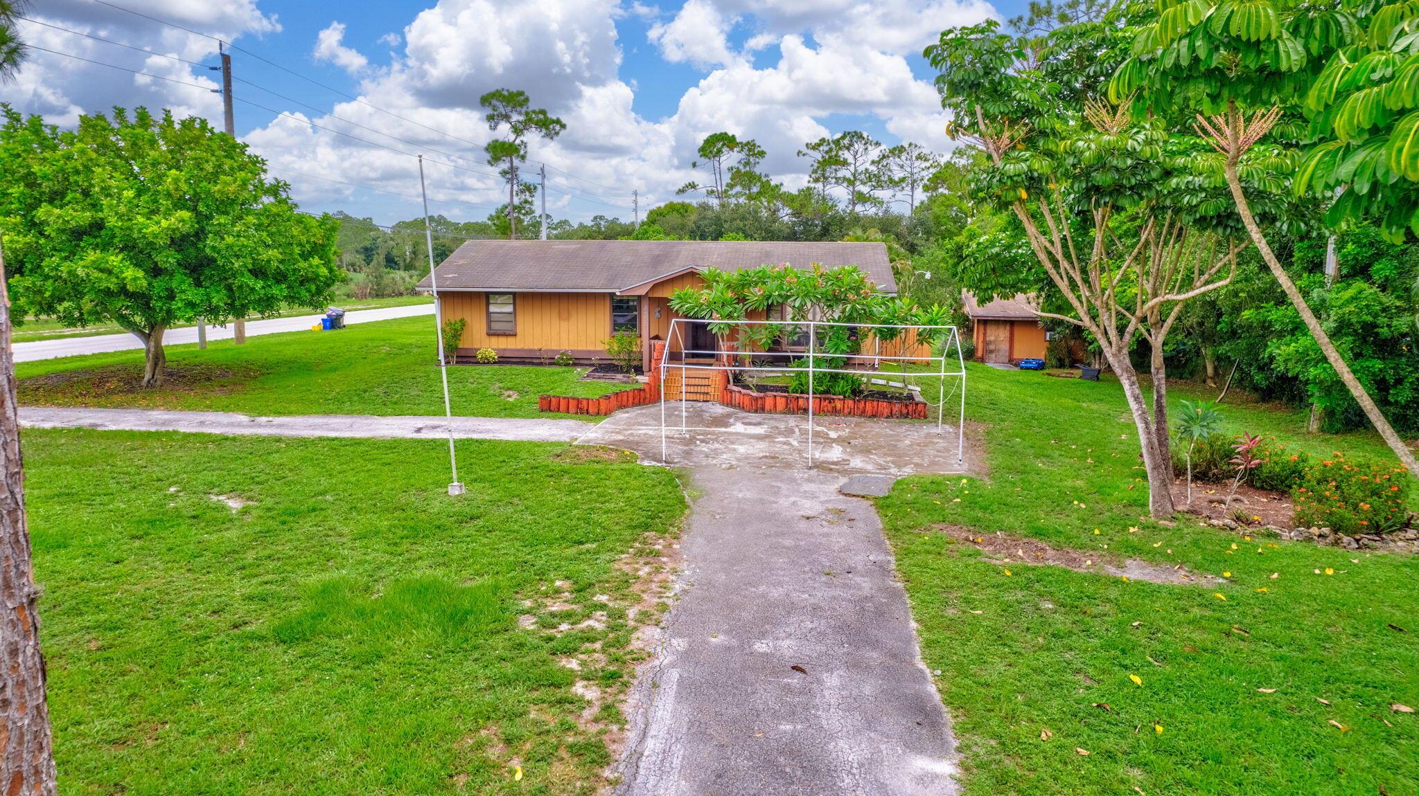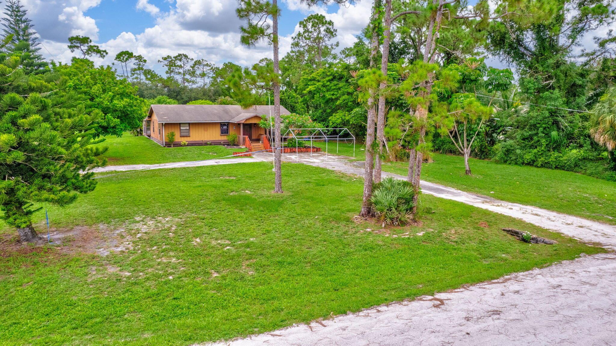 Land, land, & more land. This is a 1 1/4 acre corner lot with a single family home and a large attached in-law suite connected to it. Brand new AC system. There's a total of 4 bedrooms and 2 baths. The home can be configured as a 3/1 with large 2-room efficiency/ in-law suite with separate entrance OR the home can be easily reconfigured into a traditional large 4/2. Kitchen has plenty of storage & an eat in counter top. Options are endless to make this your own.. Open space and canal to the south adds to the privacy on this wooded lot. Plenty of room for all three: a pool, boat, & RV. No HOA, no restrictions, and no hassles.