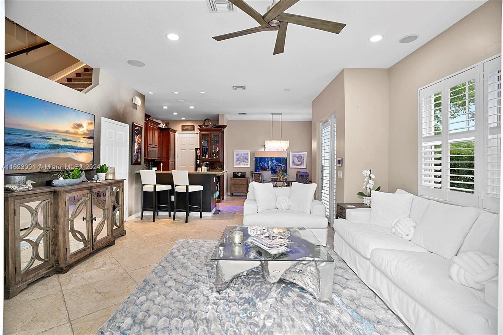 Stunning move-in ready townhouse located less than a mile from the beach. This town home has ten foot ceilings & hurricane impact windows throughout. Enjoy an inviting open floor plan making this a perfect place to entertain family & friends. Upstairs, has a spacious master bedroom with a walk-in closet, a luxurious master bath. A separate guest room with its own updated en-suite bathroom. For convenience, the full size washer & dryer are upstairs. Townhouse has two car garage, gated front yard, gated rear patio w/jacuzzi & lounge area. Walk to many restaurants, Amphitheater, Galuppis golf & country club & dog park. Nearby Town Centers offer Publix grocery shopping. Biking distance to the beach.