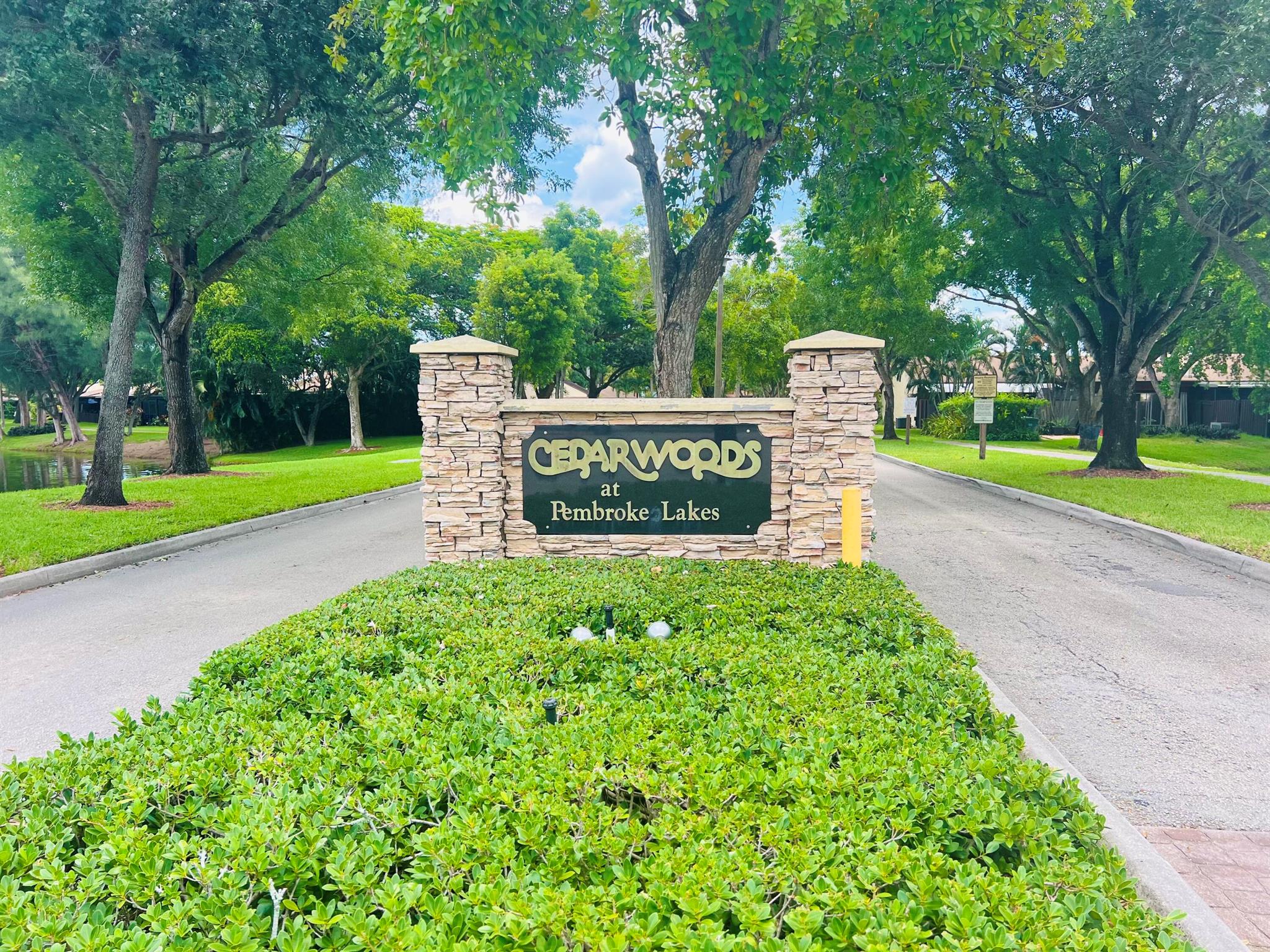 Very spacious 2/2 villa w/loft and vaulted cedar ceilings in the highly desirable neighborhood of Cedarwoods in Pembroke Pines! Stunning lake views right in backyard. Large open floor plan, spacious bedrooms w/walk-in closets, & a loft that can be used for storage,kids bedroom or office. This villa features large back patio w/tile flooring, offering the perfect space for enjoying the serene lake view. Enclosed washer & dryer, tile flooring throughout living areas & laminate wood flooring in both bedrooms and closets.NEW roof installed in 2013. Hurricane panels included & low HOA. Located in prime location w/excellent schools, restaurants and shopping. Original bathroom & kitchen, priced accordingly. Ready for your updates and personal touches.This gem is priced to sell! Lots of potential!