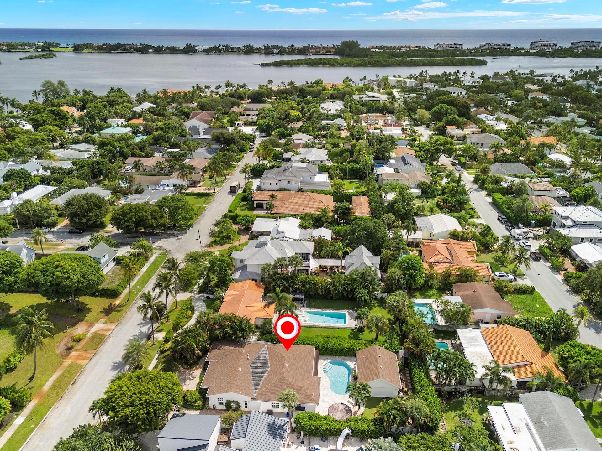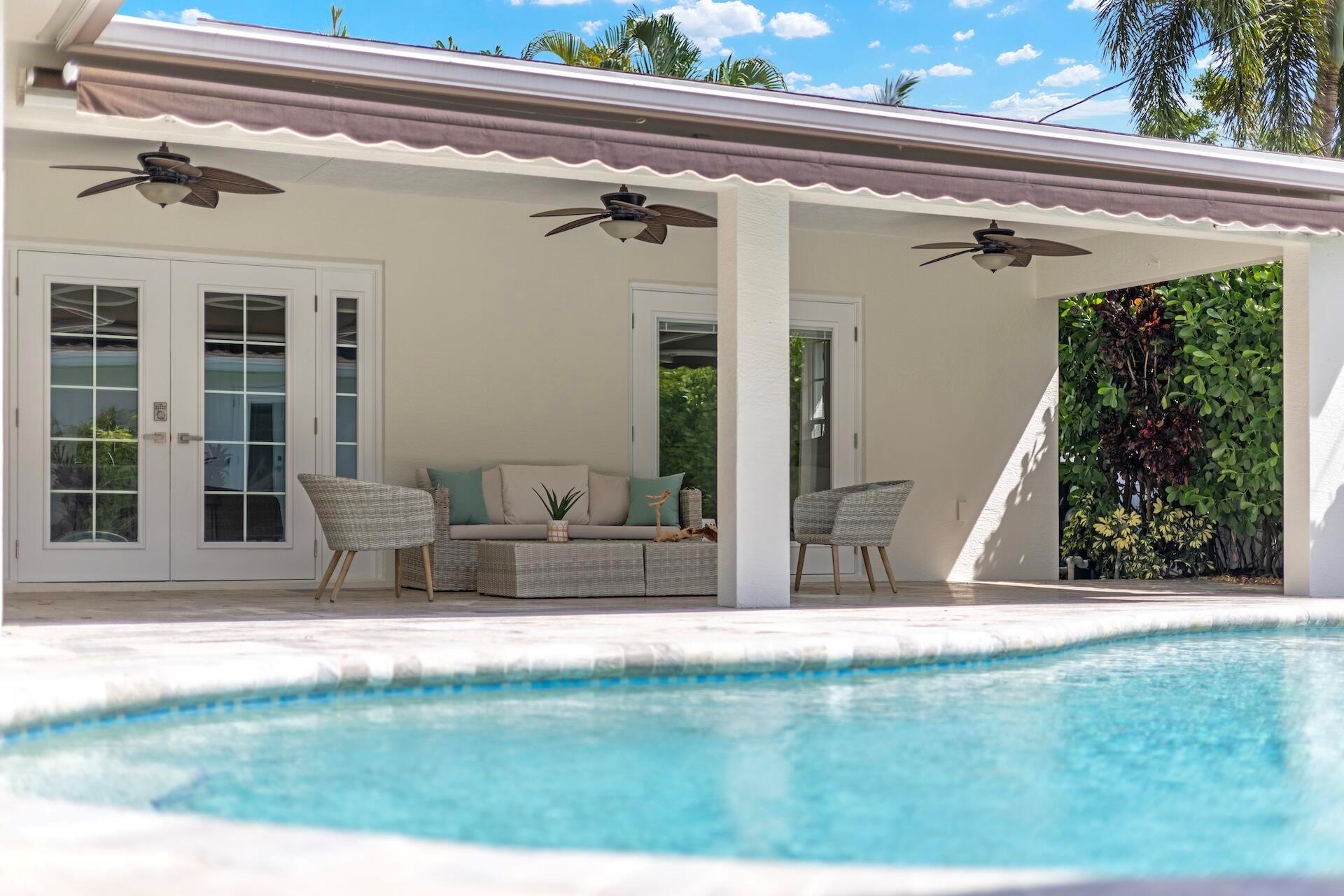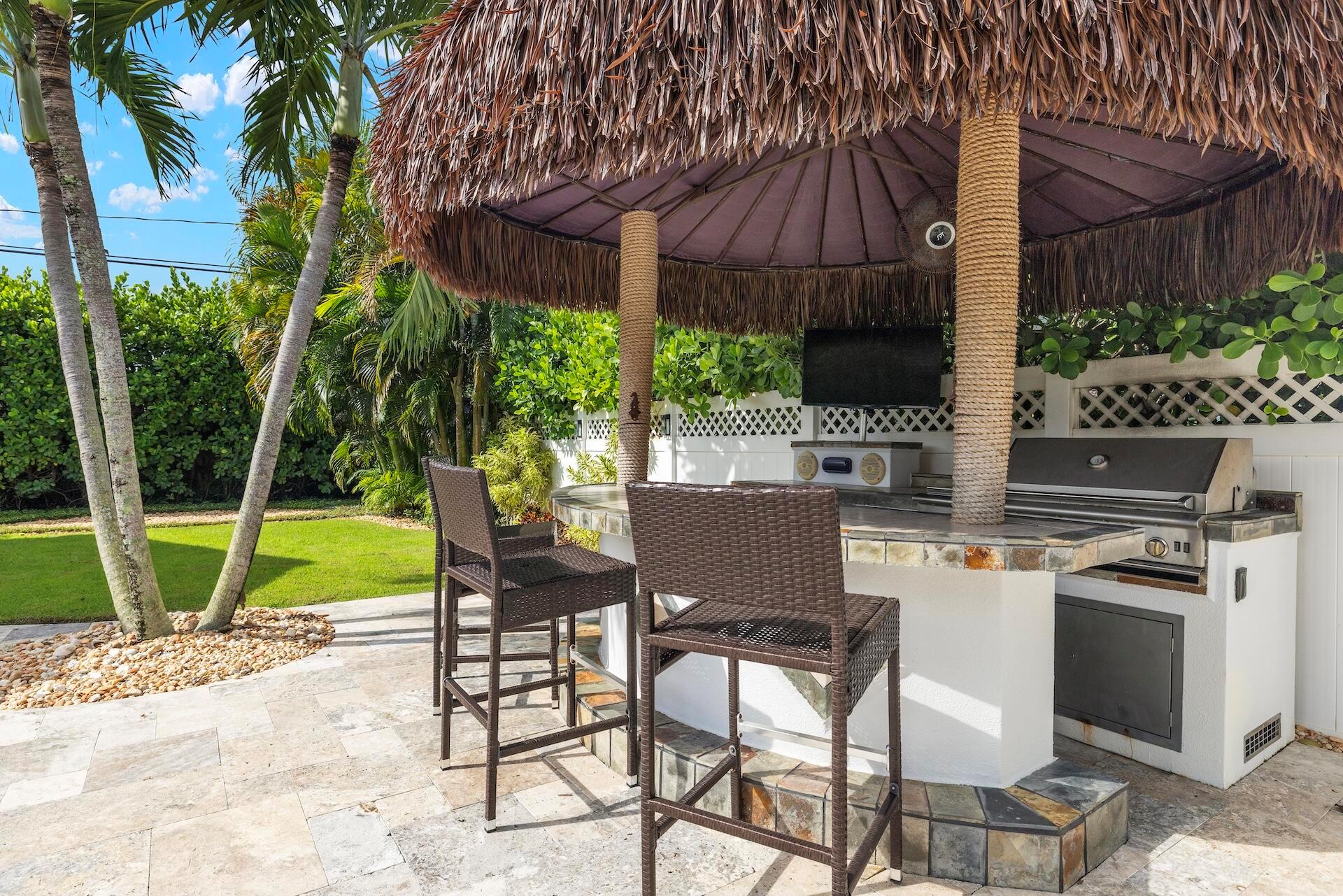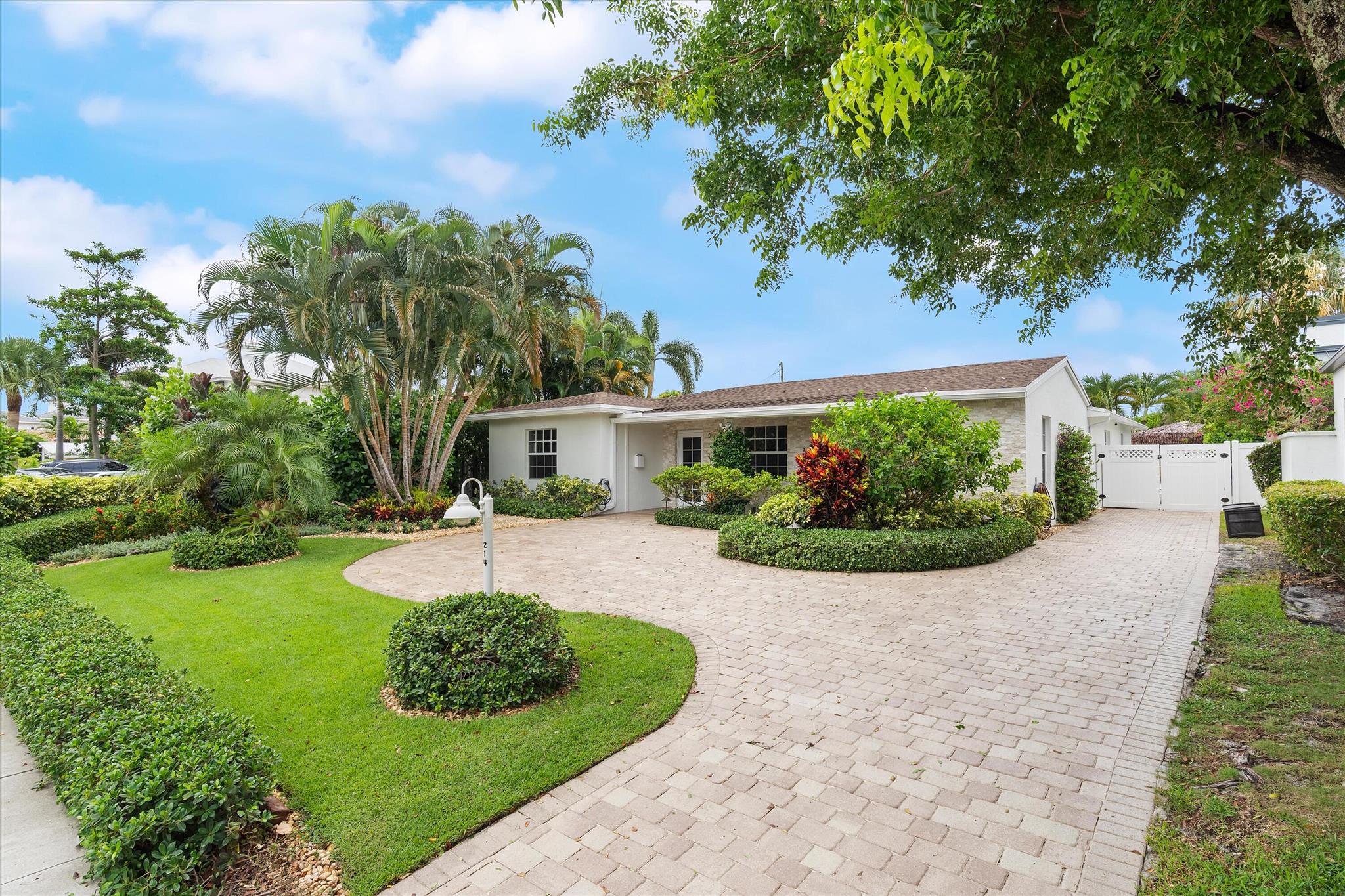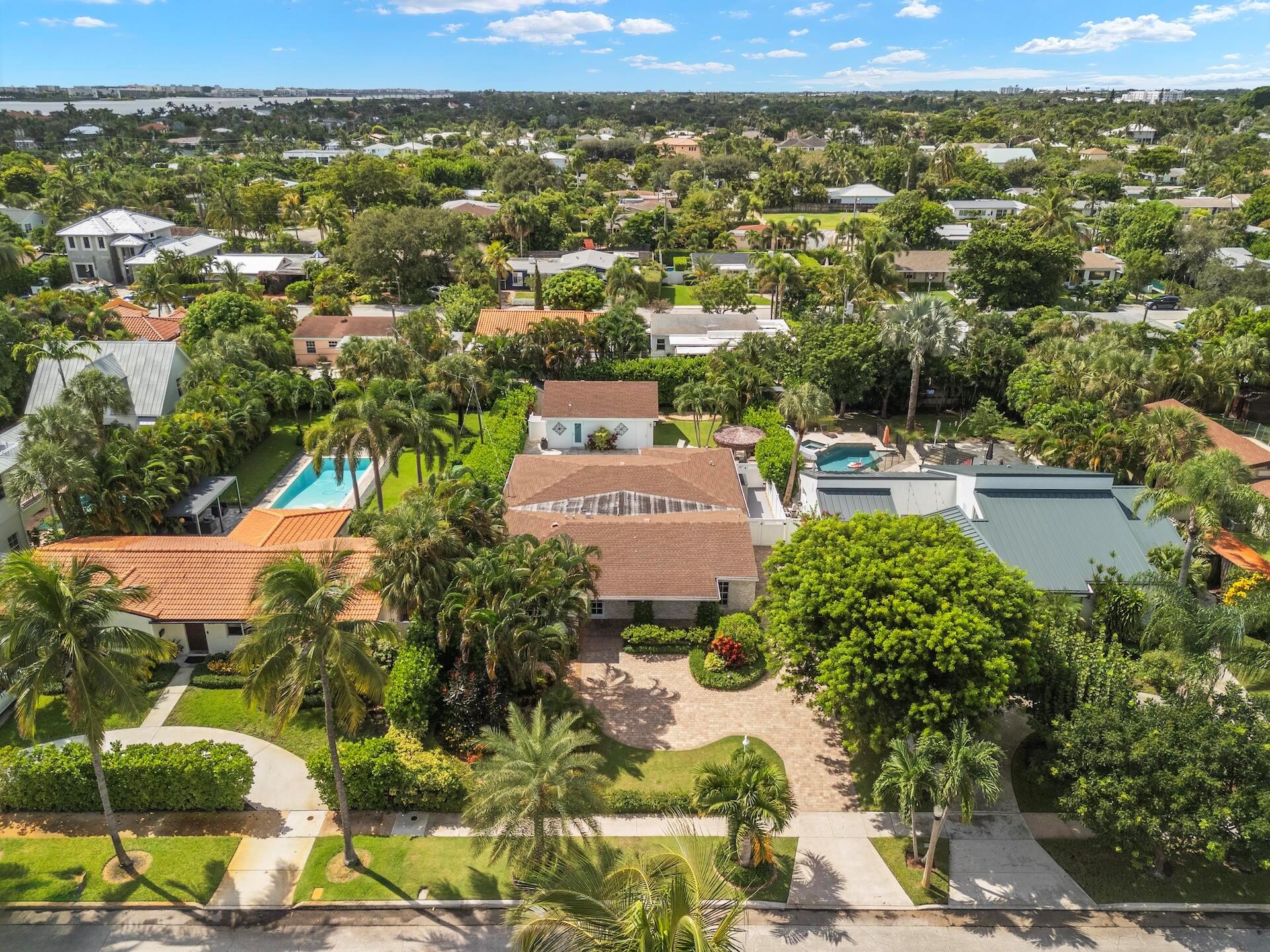 Newly renovated Summer of 2024, professionally orchestrated turn-key single-story CBS constructed home on elevated 10,000+SF lot, impact glass throughout in sought after location of Alhambra Park. 214 Alhambra Place is ideally located between S. Olive Avenue and Washington Road, a short walk to Intracoastal Waterway and Summa Beach Park and Trail. This home offers a well-thought-out floor plan that can be utilized by family, empty nesters or someone who loves to entertain. Main house offers 4 bedrooms, 3 baths and home office. You will be astonished by the clever use of space in the rear of the property. Covered patio space, redone pool, outdoor shower, entirely renovated guest house with full bath and kitchen, tiki bar, extra living space that can be home gym or artist studio.