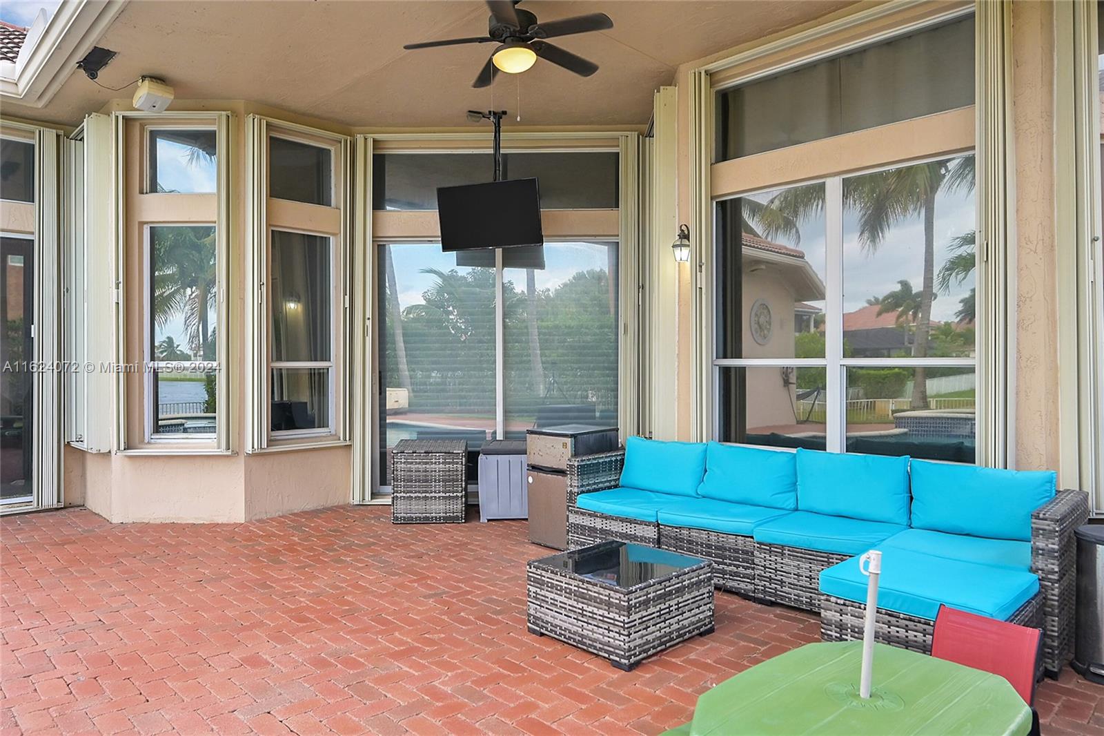 Stunning 5-bedroom, 3-bath lakefront home on a double lot. Features include a heated pool with jacuzzi, new pool heater and sprinkler system, mango and avocado trees, and a modern quartz kitchen with stainless steel appliances. Interior highlights are new tile flooring, hi-hat lighting, crown moldings, and walk-in closets in all rooms. The master suite offers dual walk-ins, dual sinks, and a soaking tub. Exterior includes lake views, accordion shutters, a covered patio, brick paver driveway, and patio TV and speakers. HOA amenities include cable and internet. Interior/exterior cameras stay.