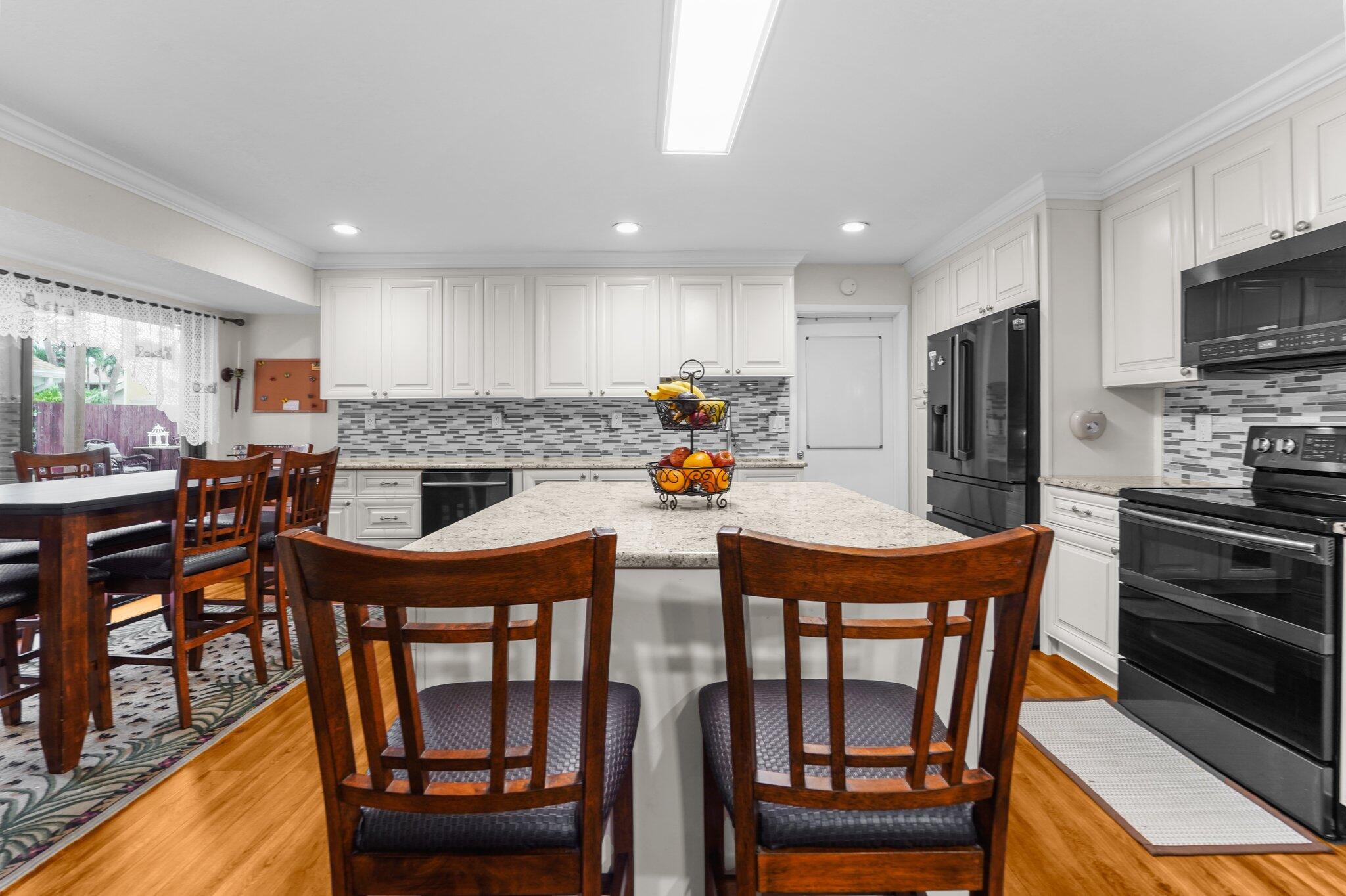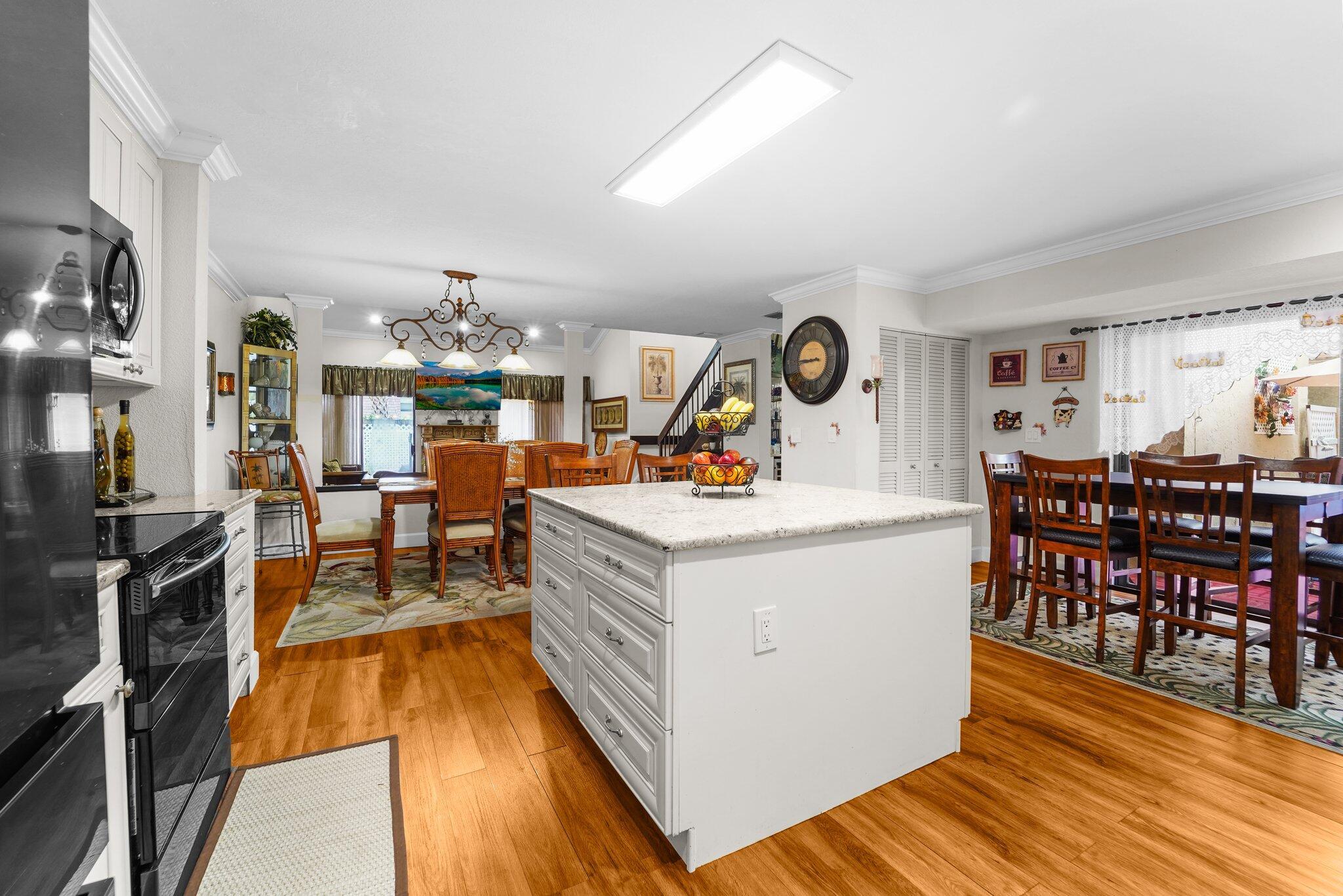 Welcome to your dream home in beautiful Boca Raton! This meticulously maintained property offers a blend of modern amenities and charming features, making it perfect for comfortable living and entertaining. With 3 spacious and bright bedrooms, 2.5 renovated bathrooms, and the potential to easily convert the loft into a 4th bedroom, this home provides ample space for your family. The extended kitchen boasts a stylish island, granite countertops, and sleek black stainless steel appliances, all set against high-quality luxury vinyl flooring that spans the entire house. The primary bedroom features dual closets, offering generous storage.