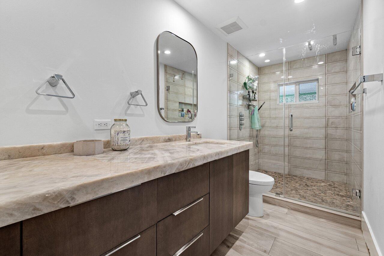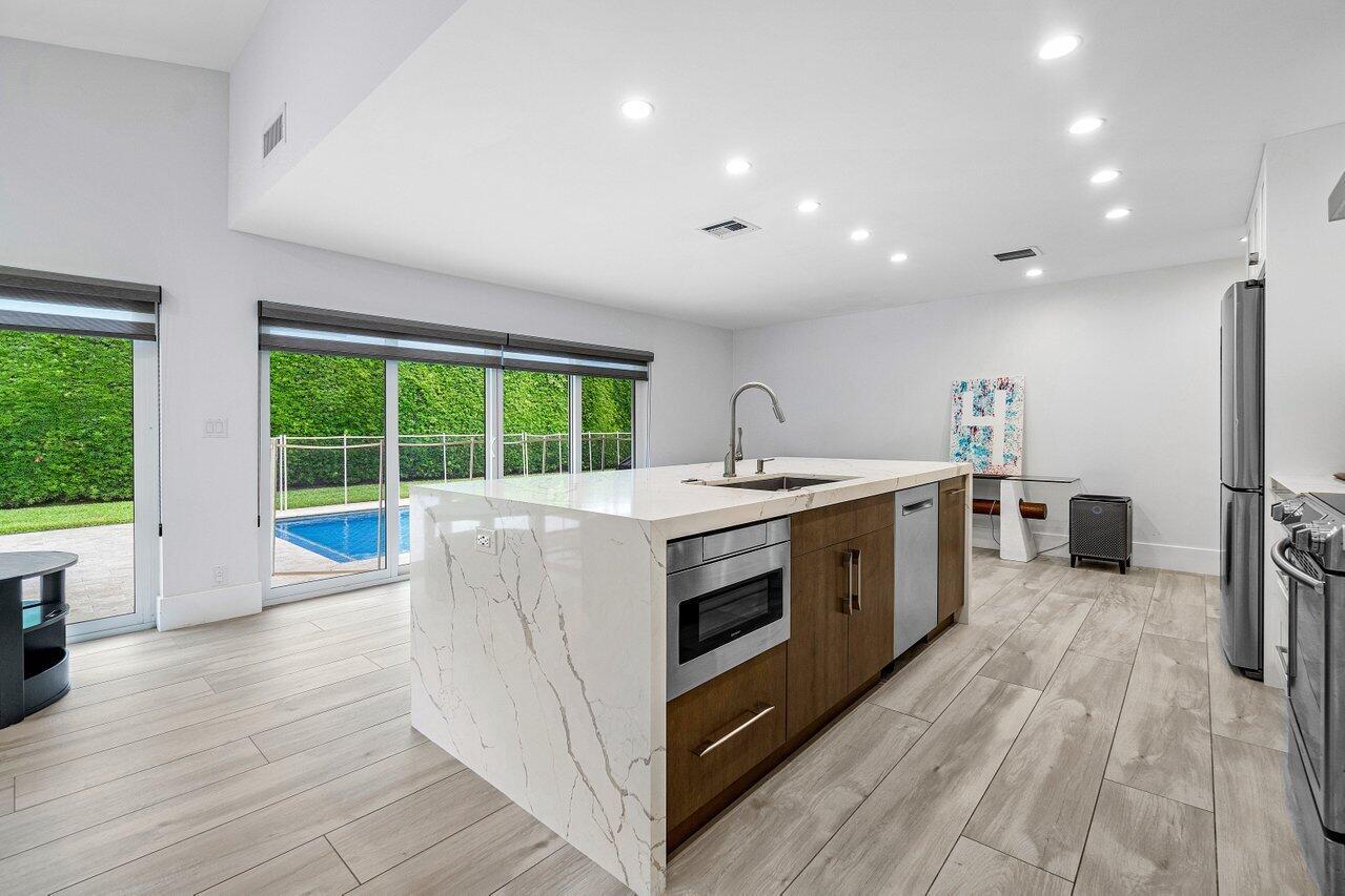 Welcome to 2351 NW 30th Rd in Timbercreek, a completely updated pool home in the heart of Boca Raton. Move right into this gorgeous remodeled pool home that went through an extensive update starting in 2017-2018. Interior highlights include all new interior wood look porcelain tile floors throughout, newer chefs kitchen with quartz countertops and waterfall edge, stainless appliances, new bathrooms, hurricane impact windows and doors, neutral paint and custom closets. Exterior updates were completed in 2017 with a new pool surface, travertine deck and an updated salt water pool system. Additional updates are 2022 new 200 amp circuit breaker, impact garage door, 2021 hot water heater, 2020 washer and dryer and 2018 new Trane AC system. The back yard is completely secluded with a tall
